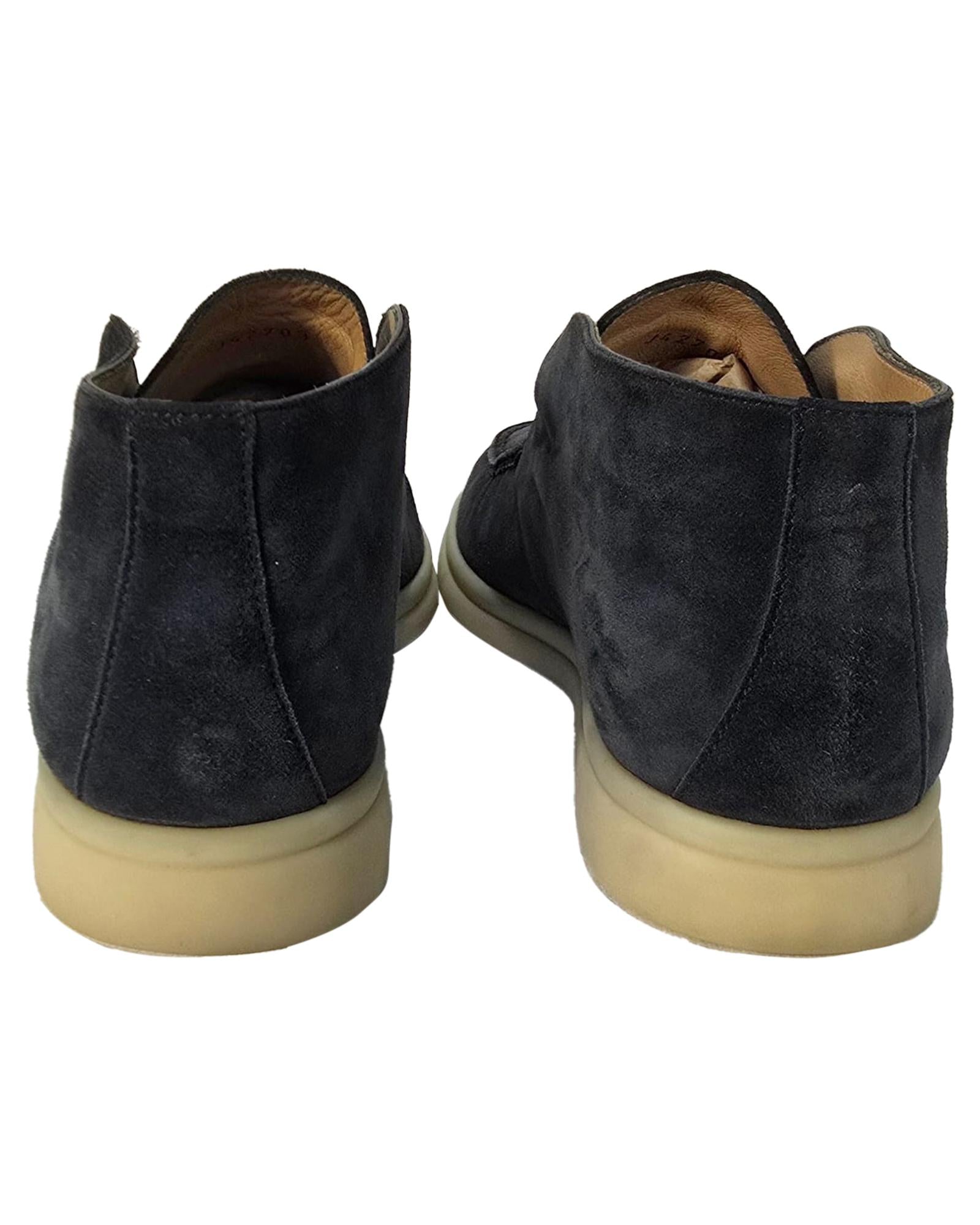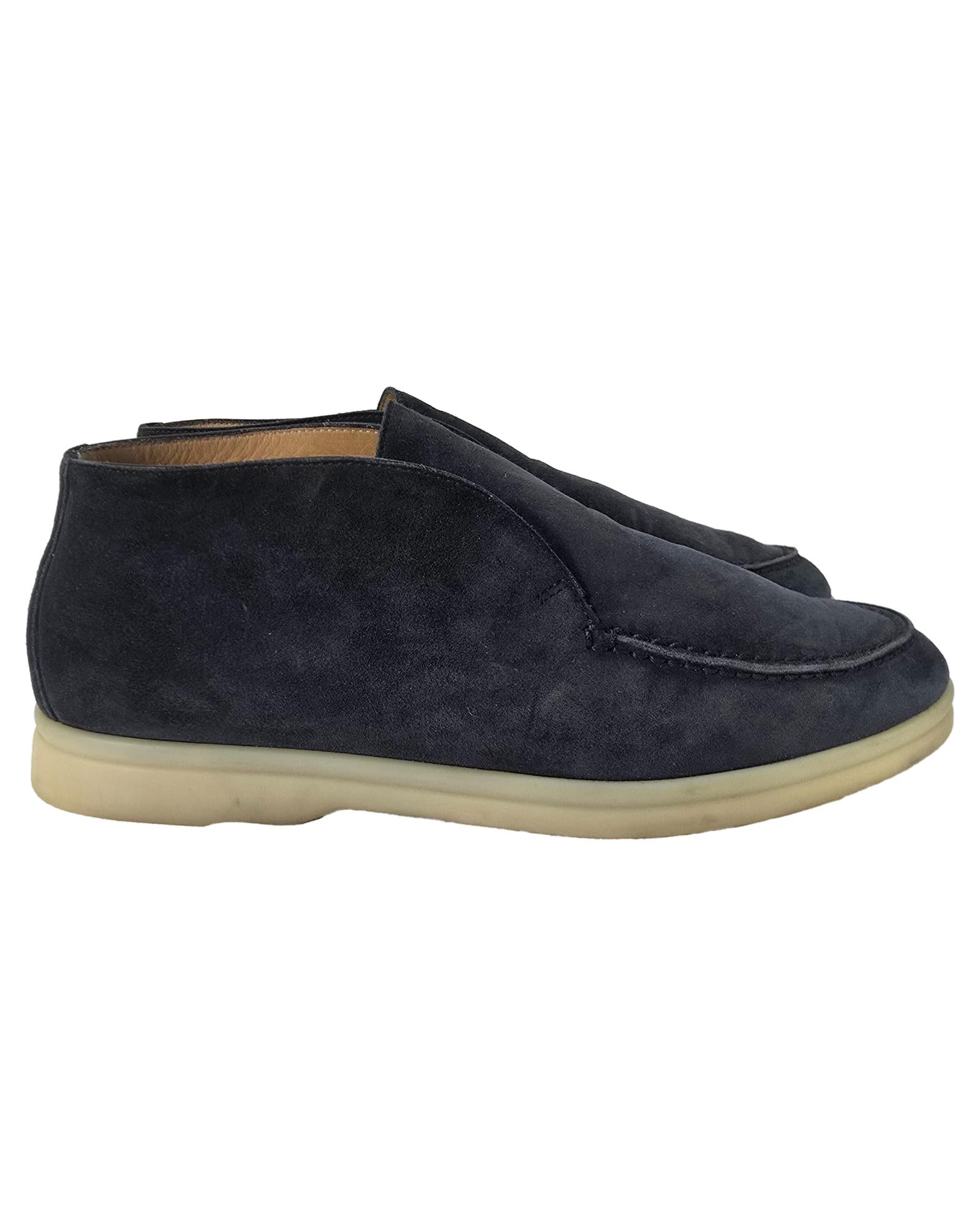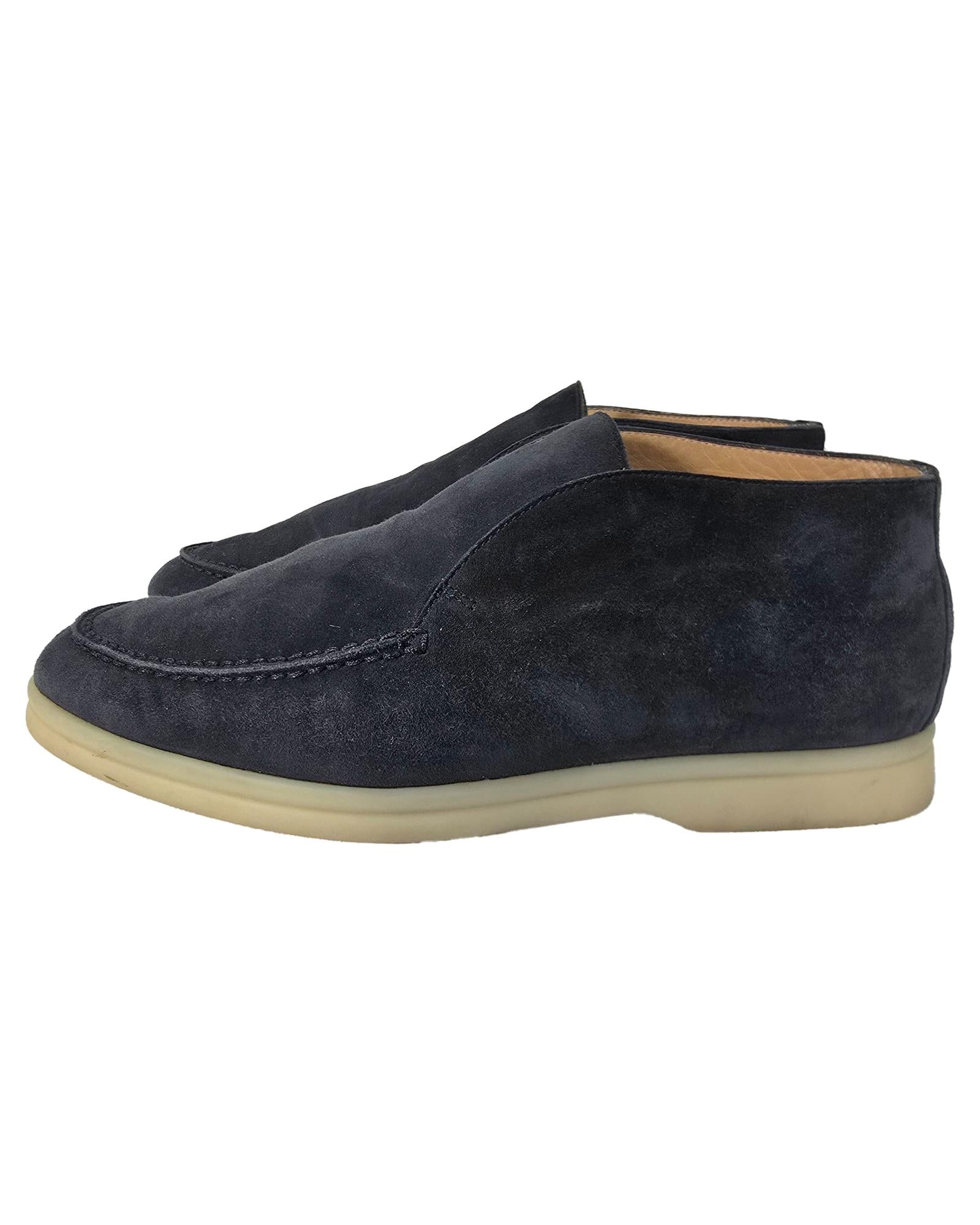 • Loro Piana Open Walk Ankle Boots in Navy Blue Suede