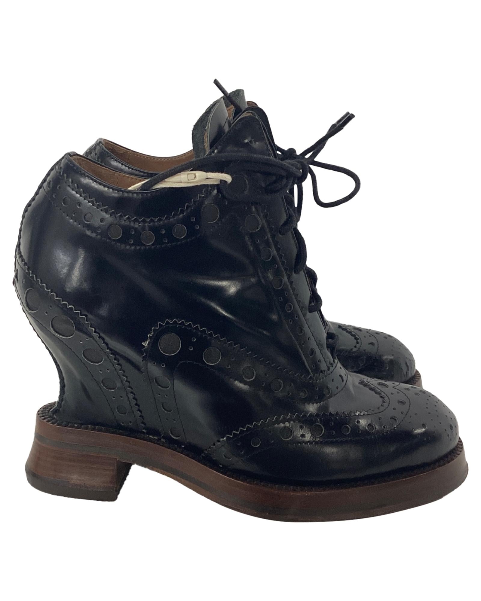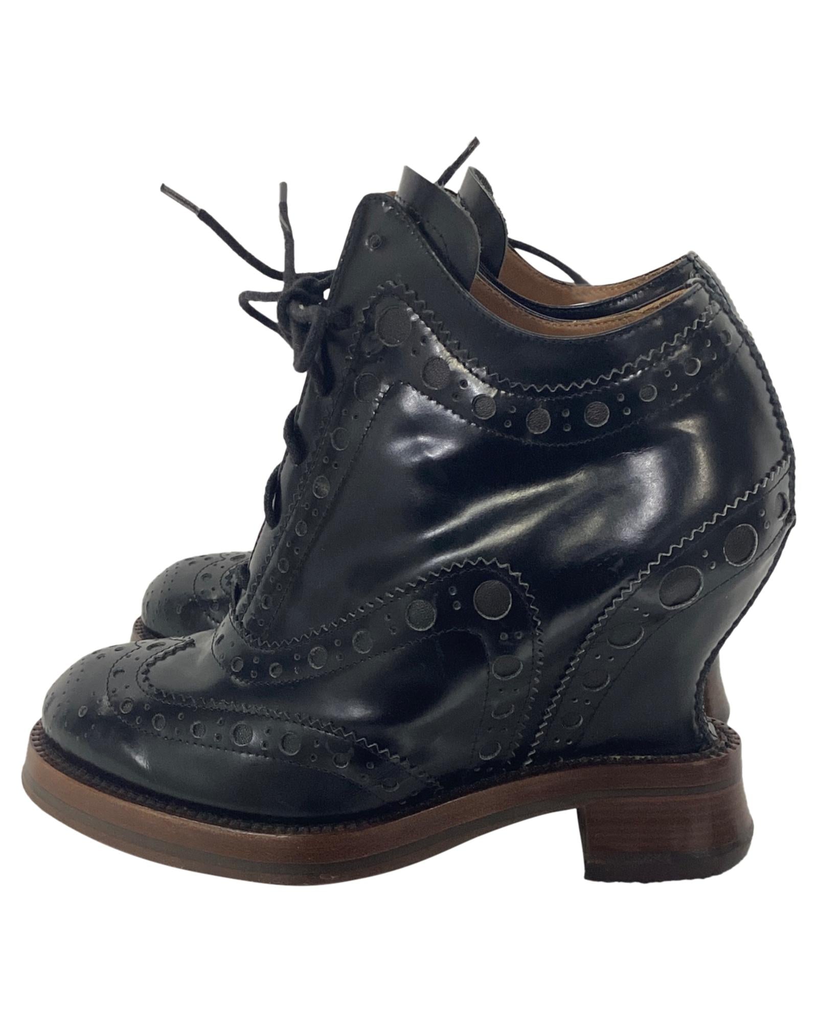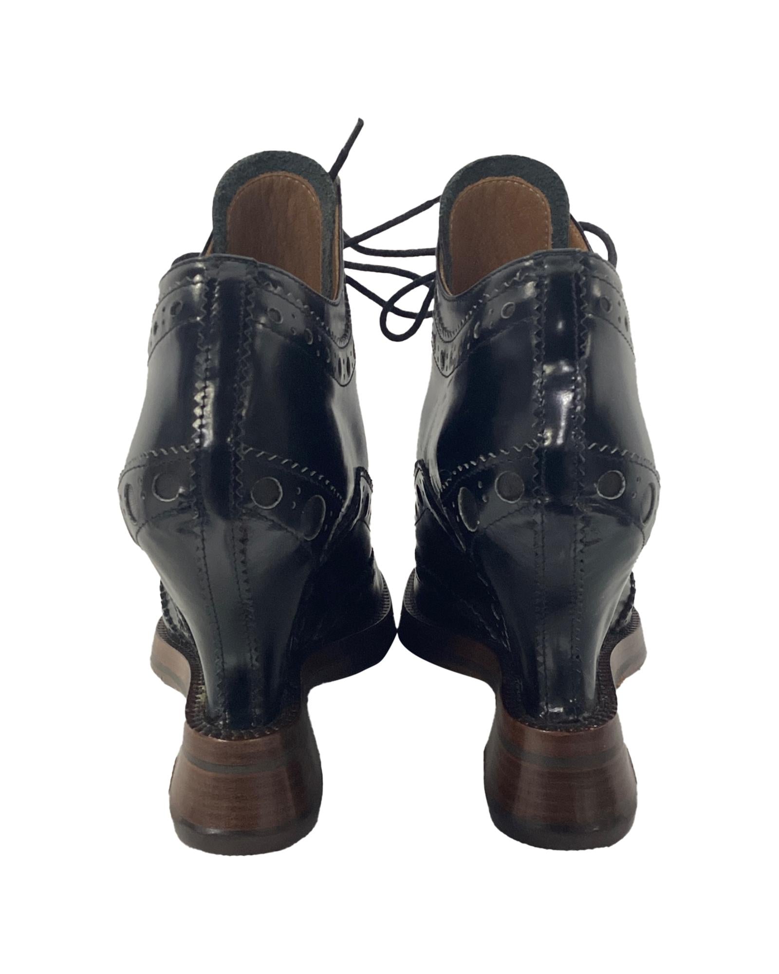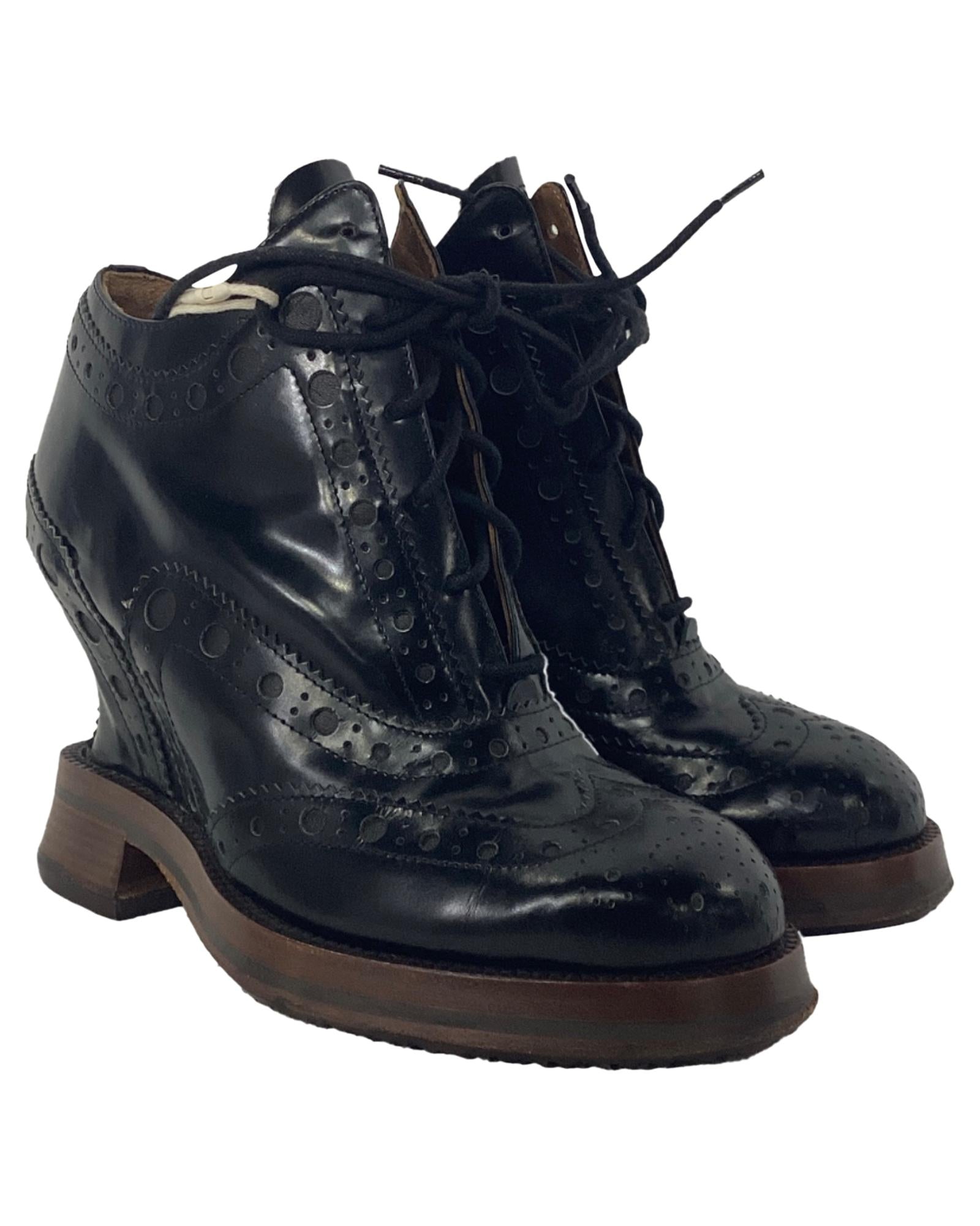 - Acne Studios Spin Brogue Wedge Boots in Black Leather
