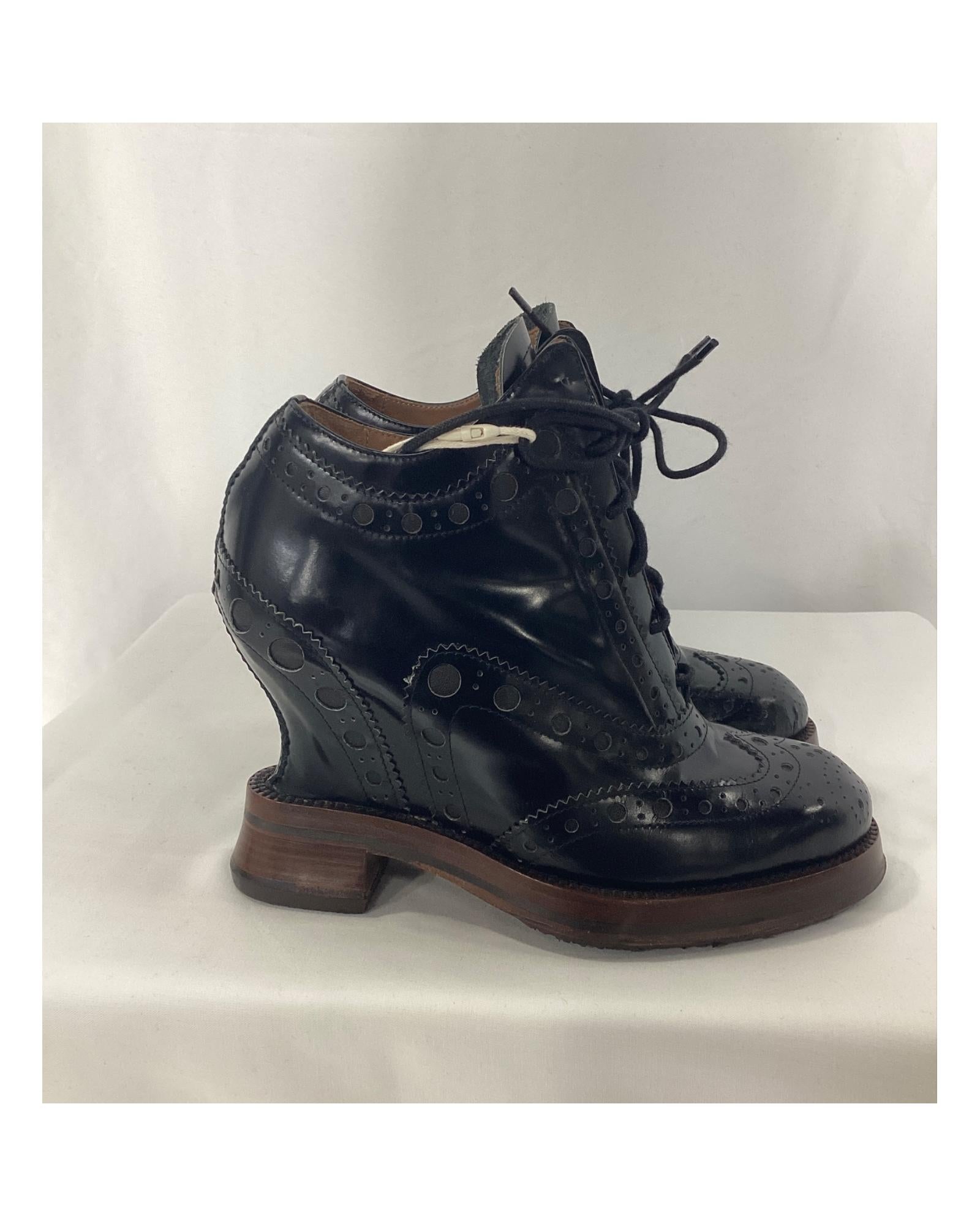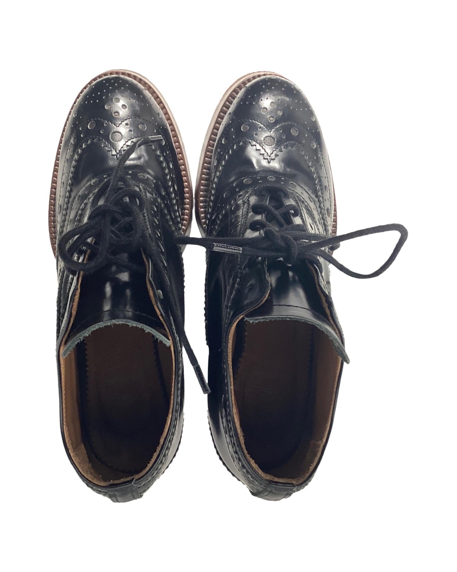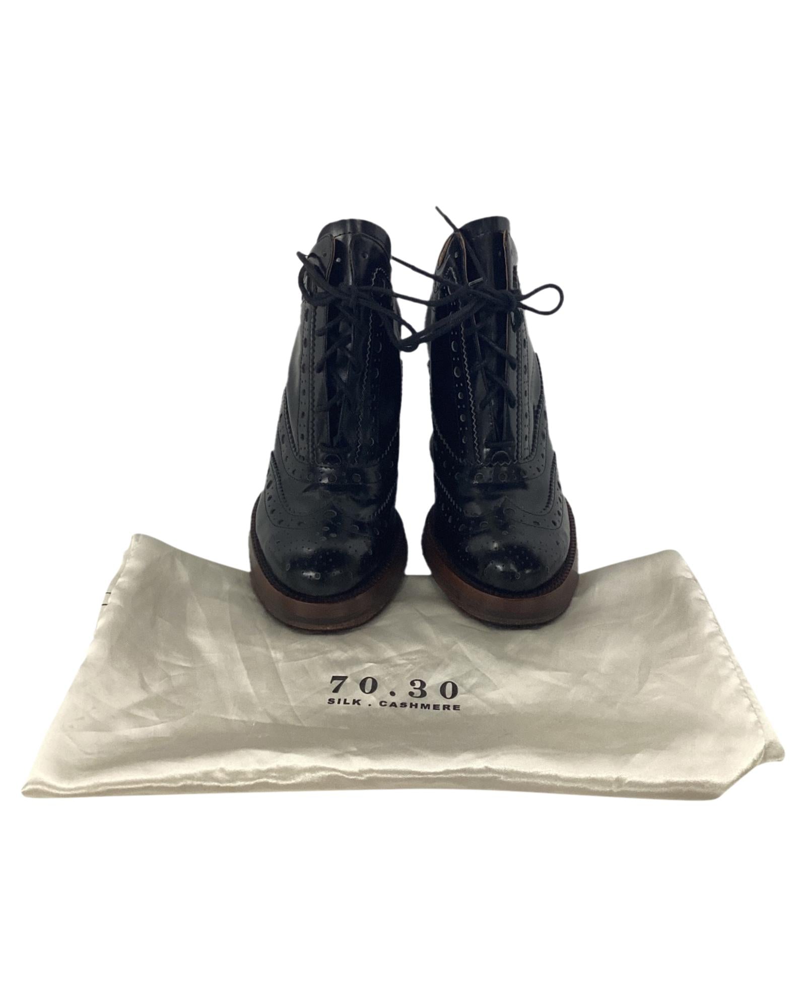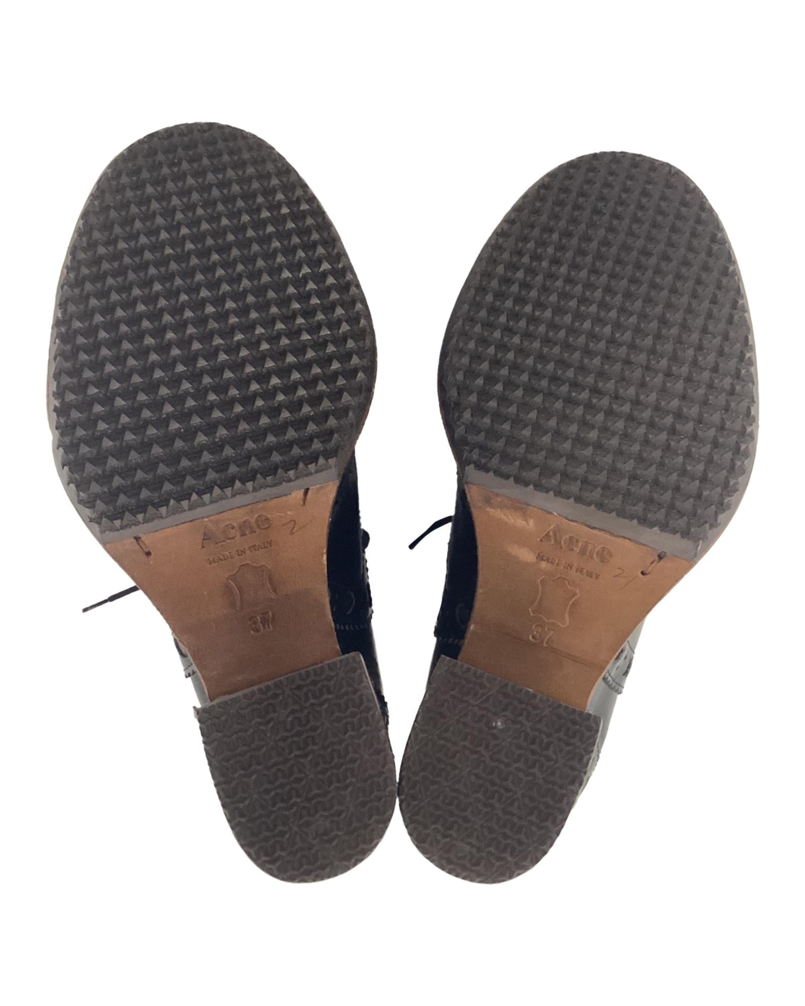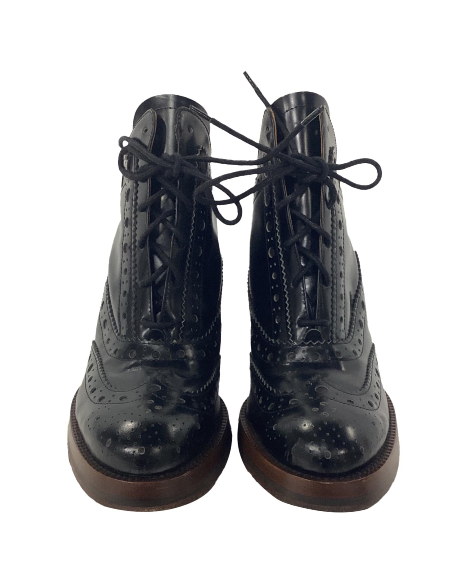 - Acne Studios Spin Brogue Wedge Boots in Black Leather