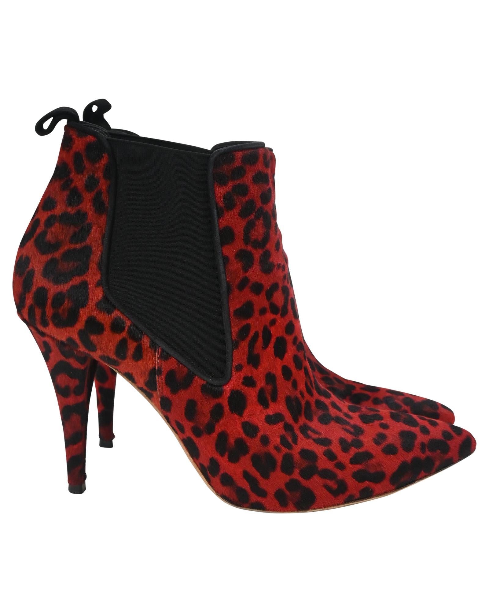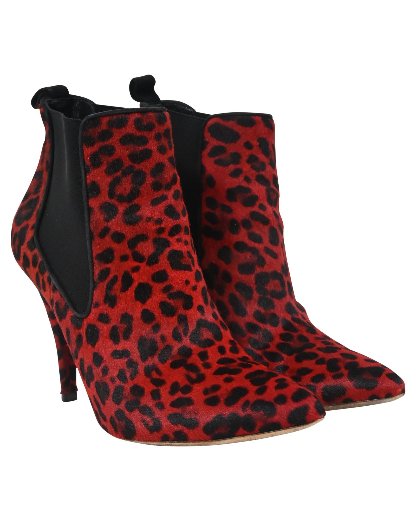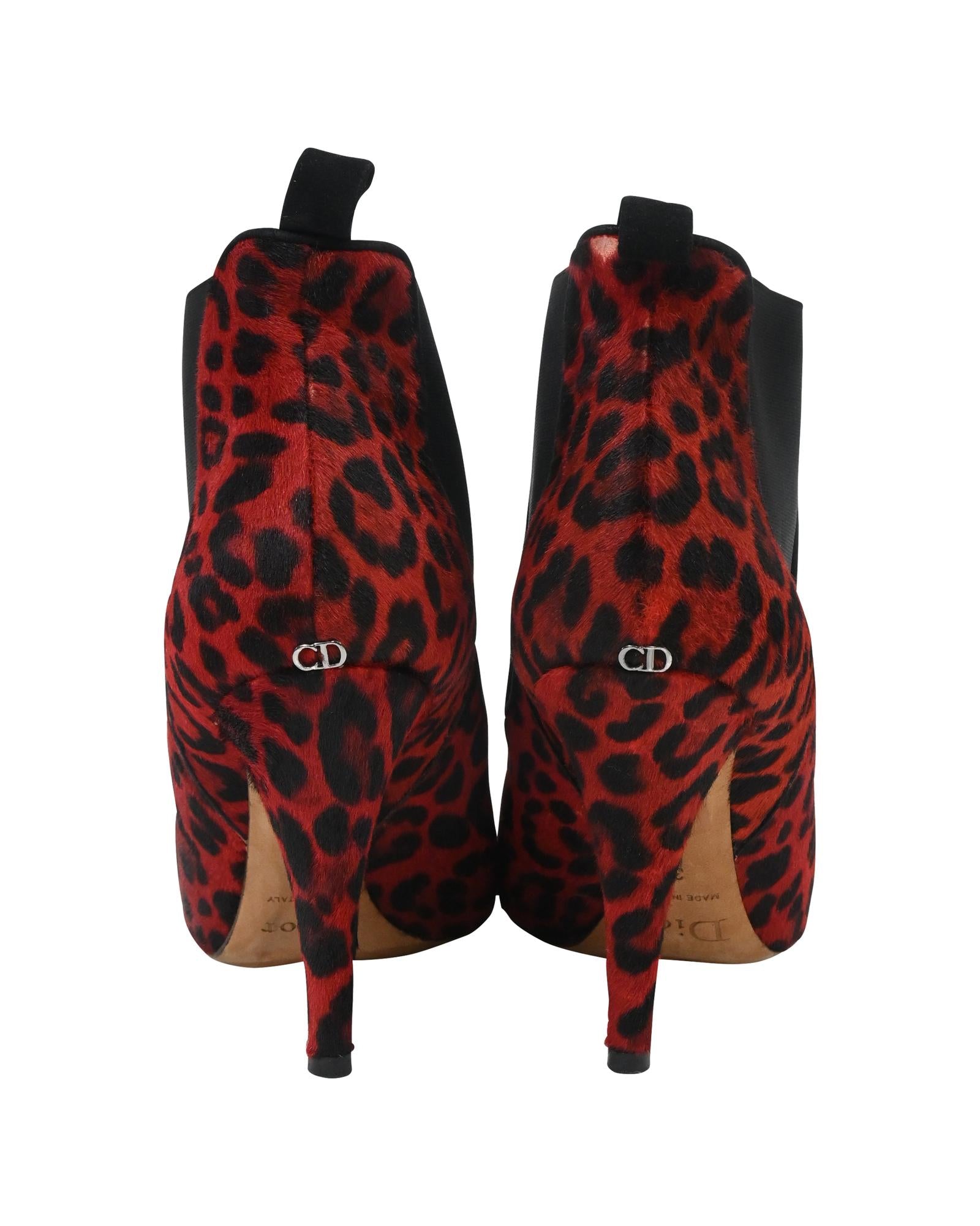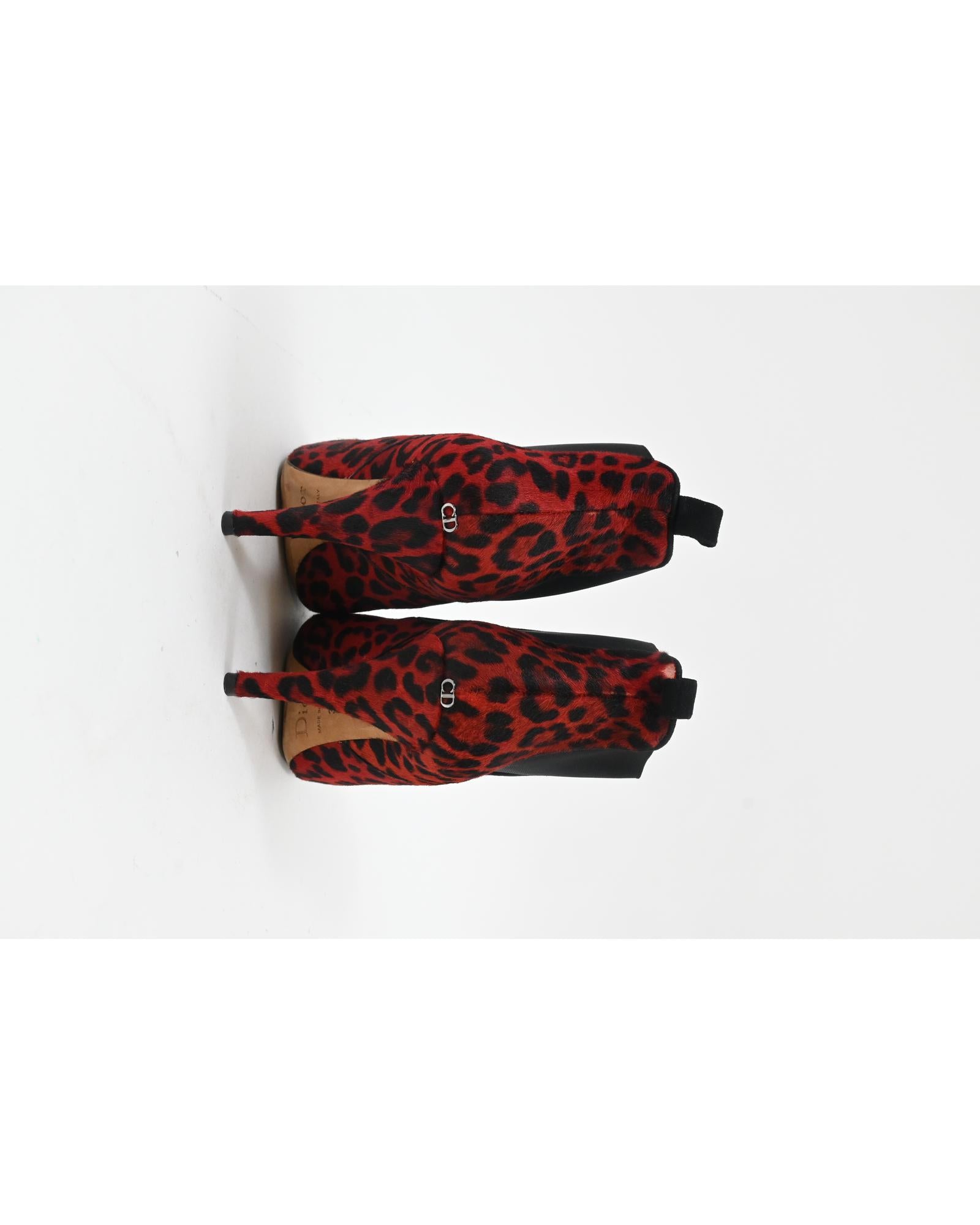 - Dior Leopard Print Ankle Boots in Red Pony Hair