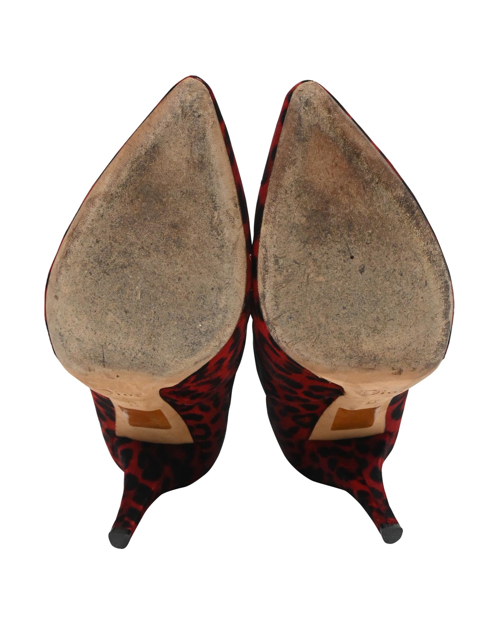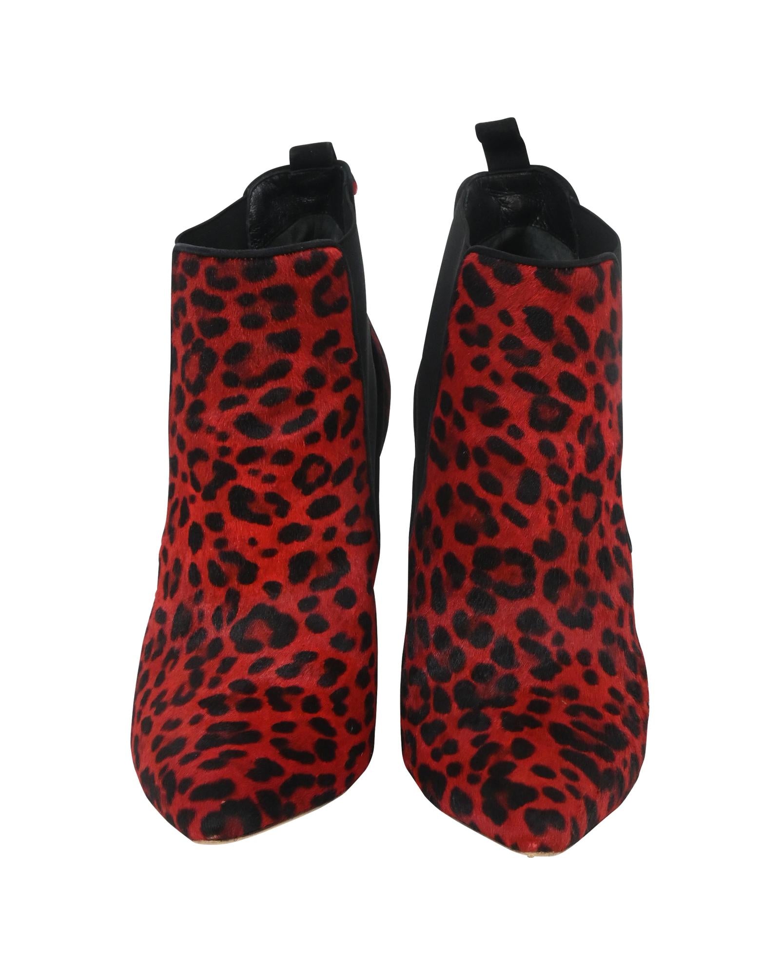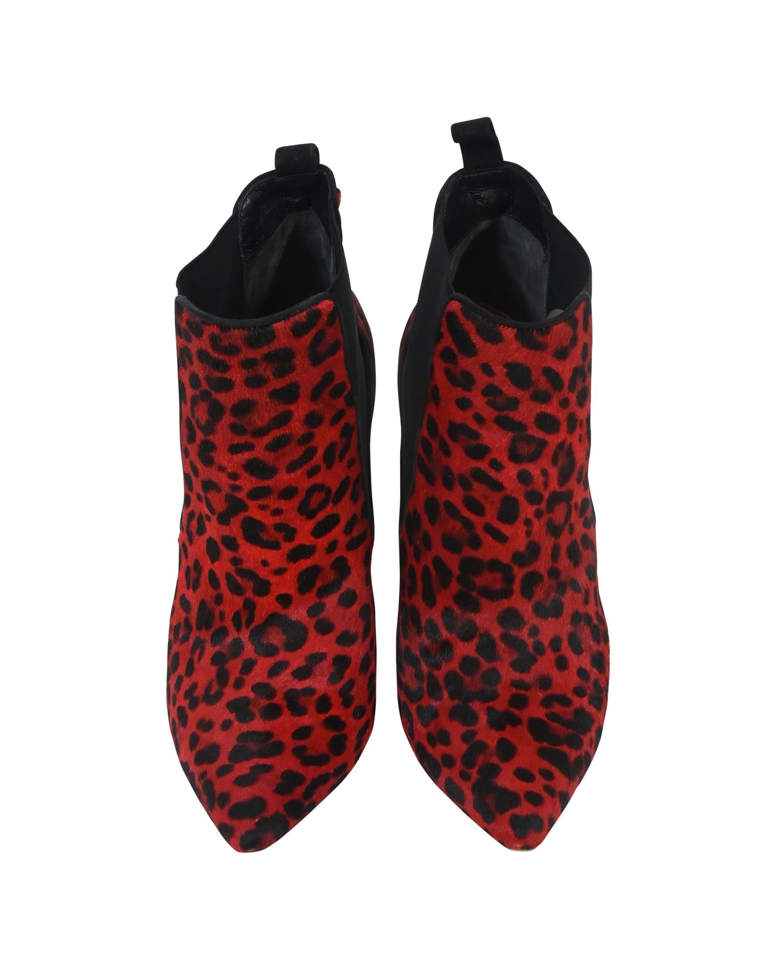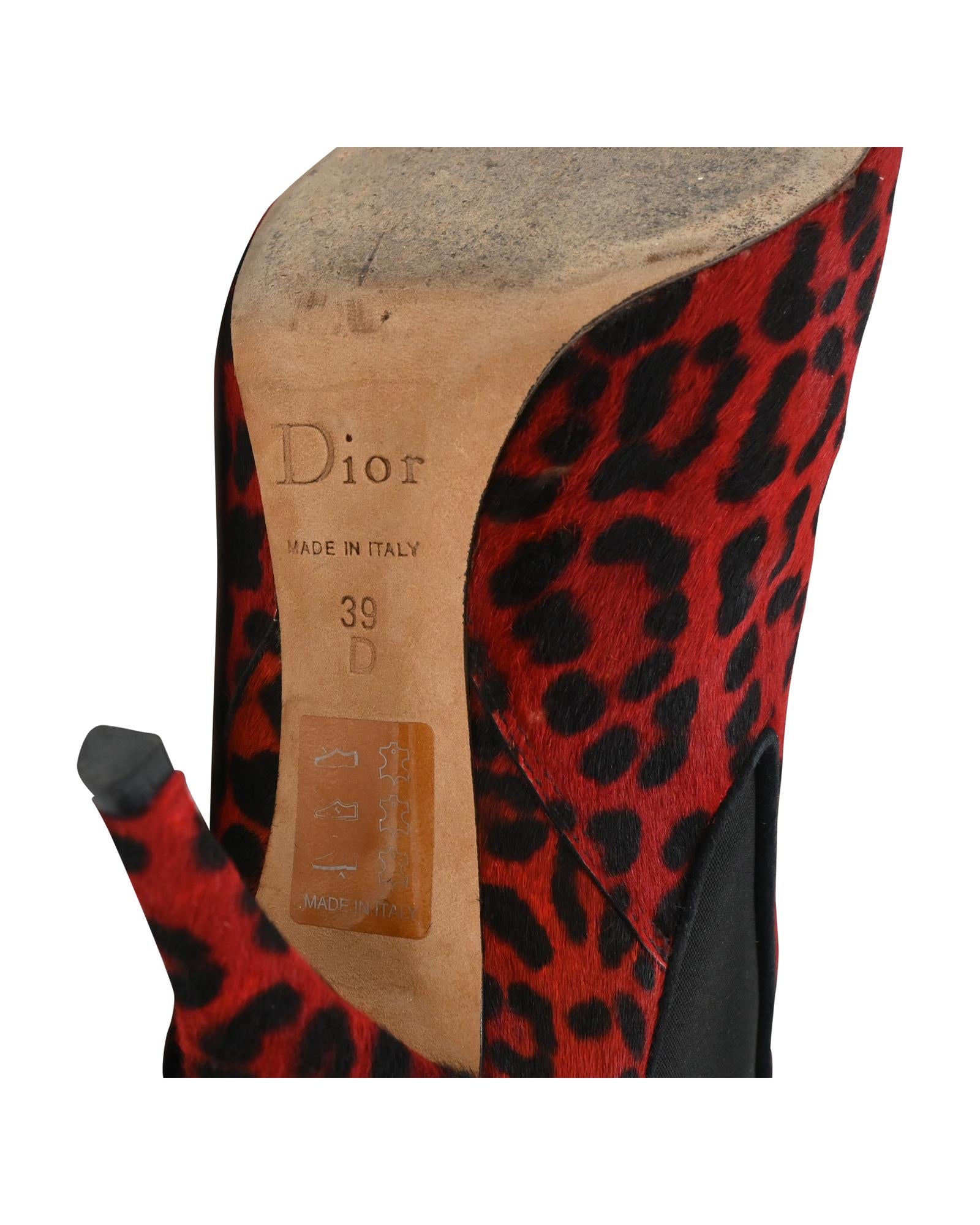 - Dior Leopard Print Ankle Boots in Red Pony Hair