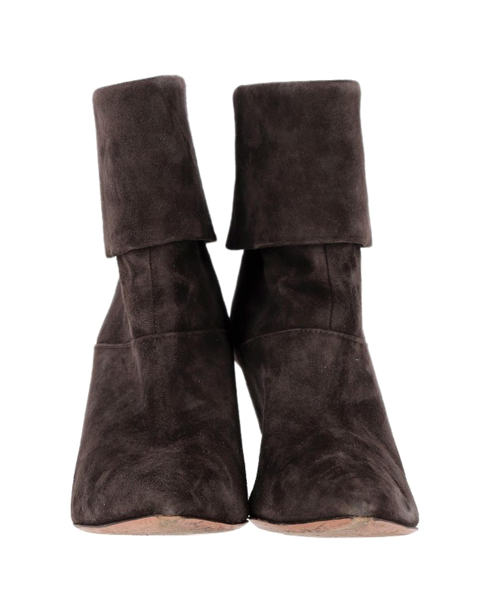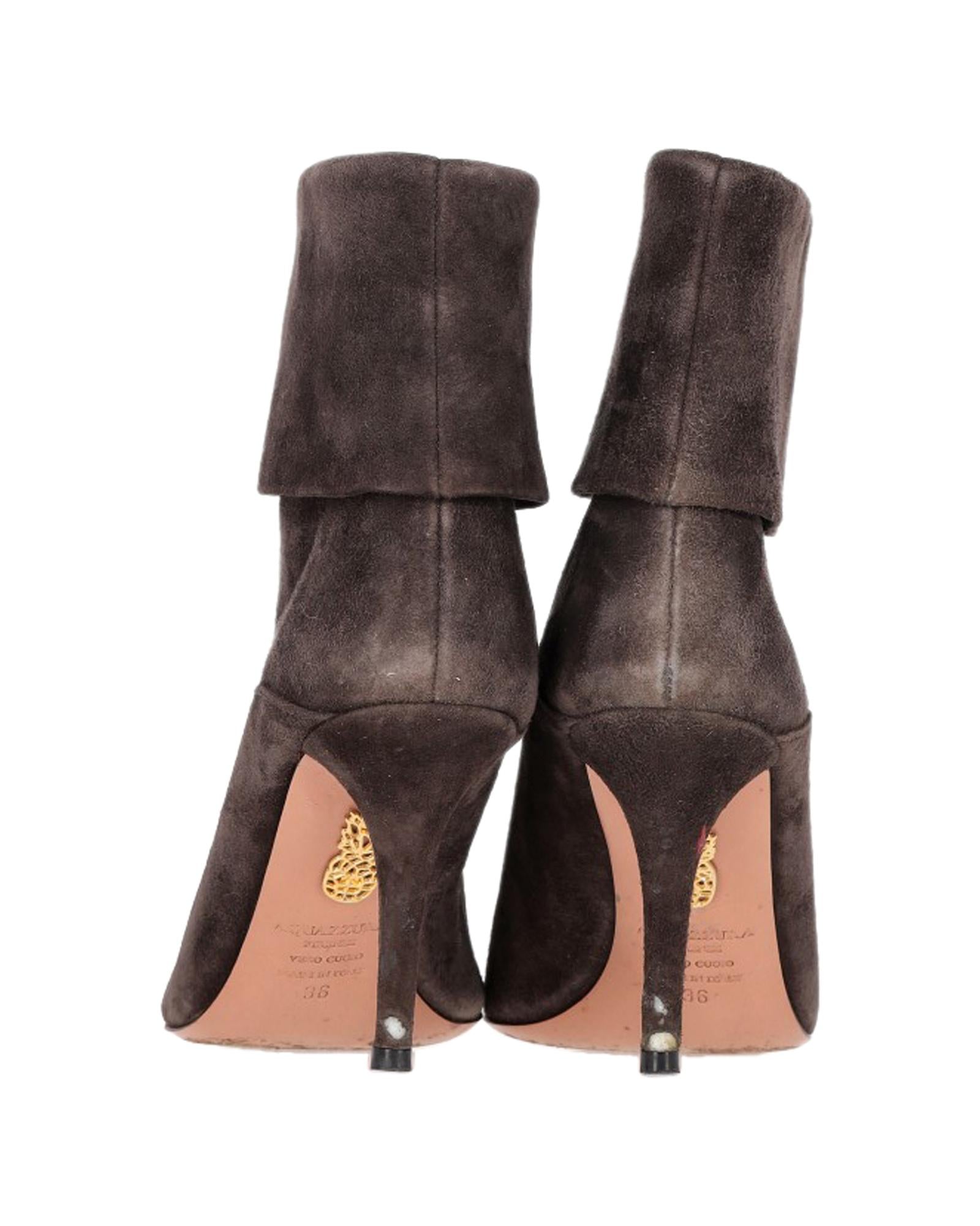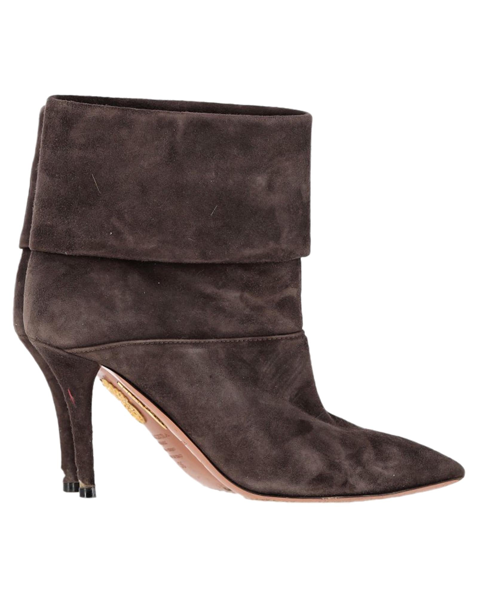 • Aquazzura Folded Ankle Heeled Boots in Brown Suede
