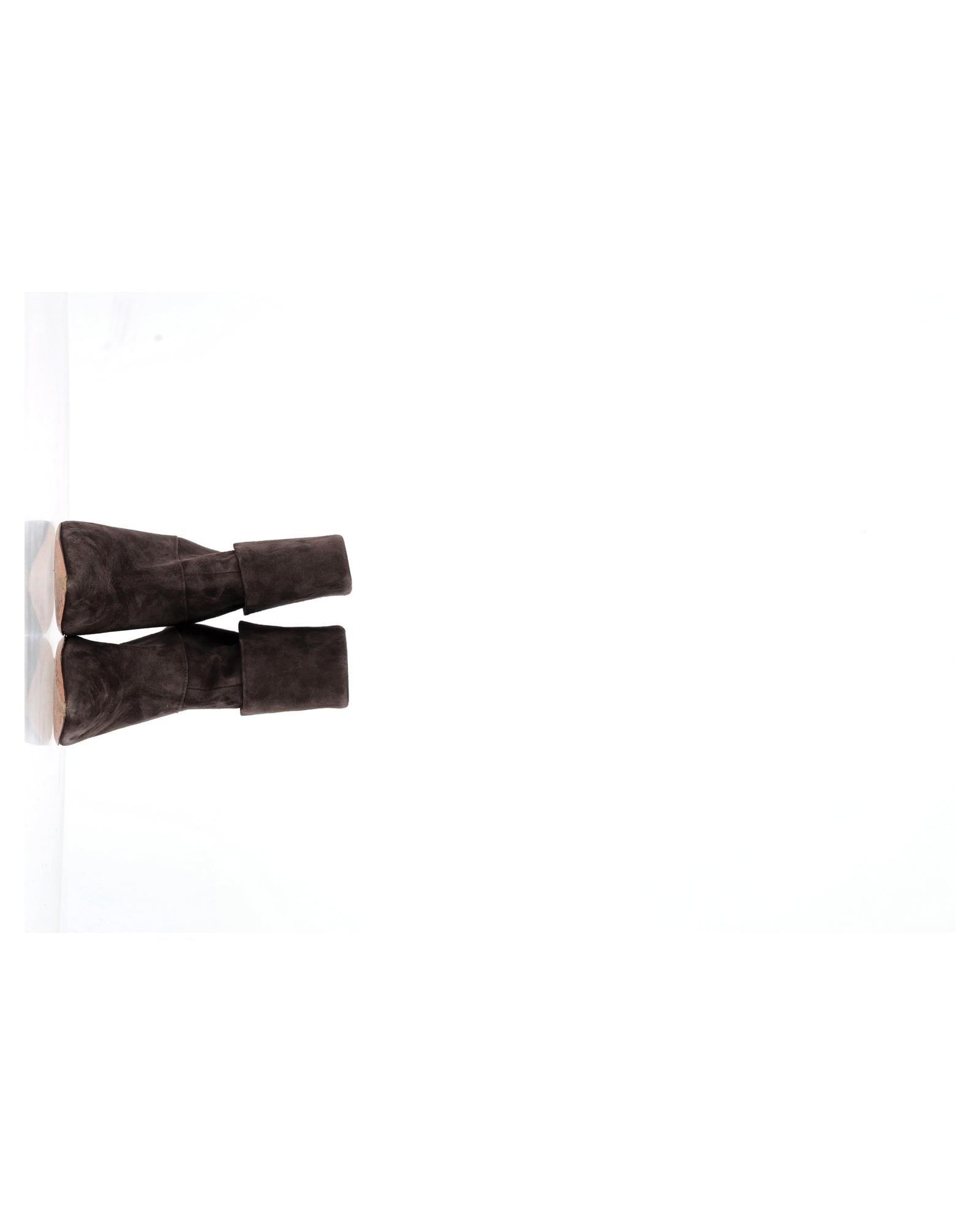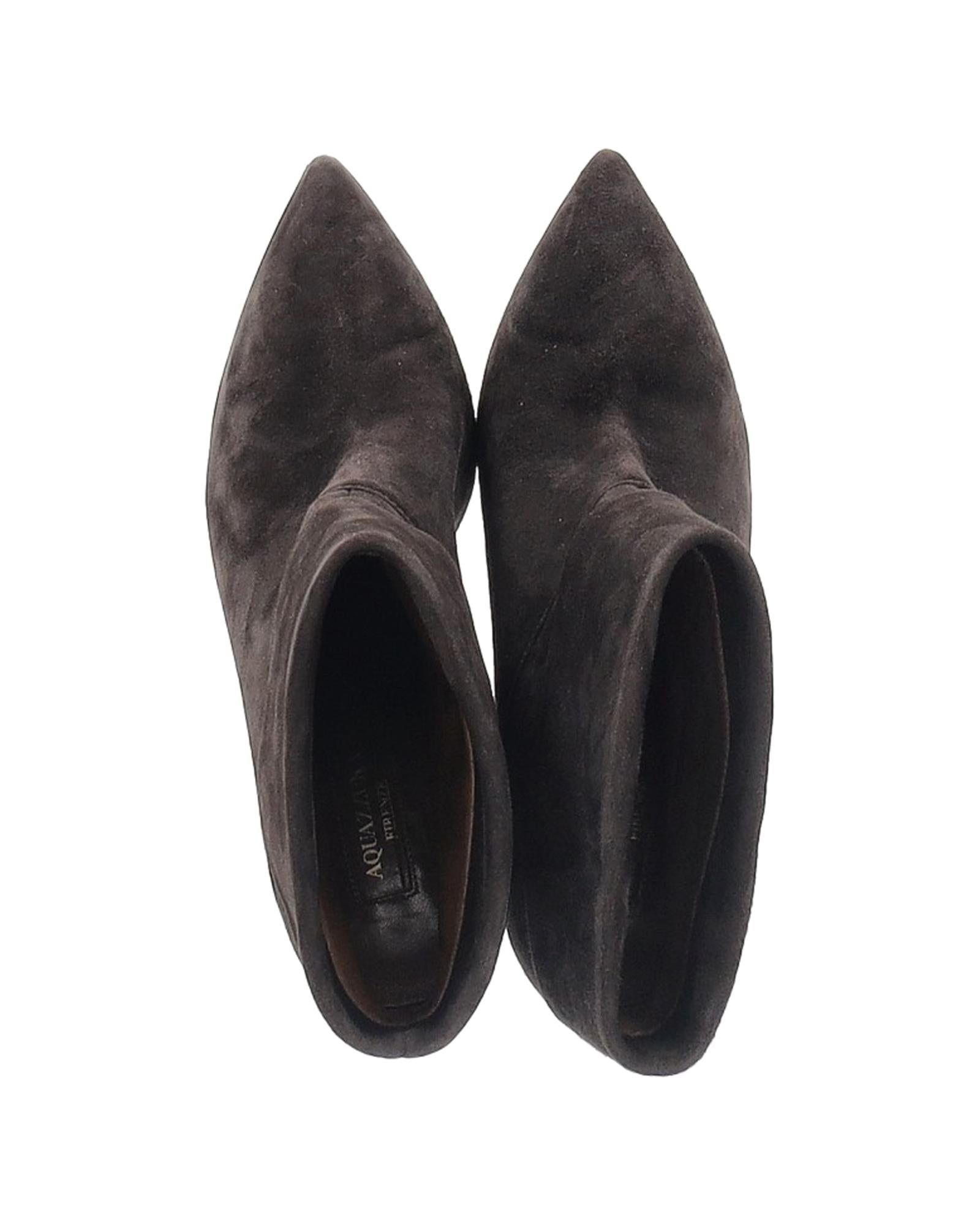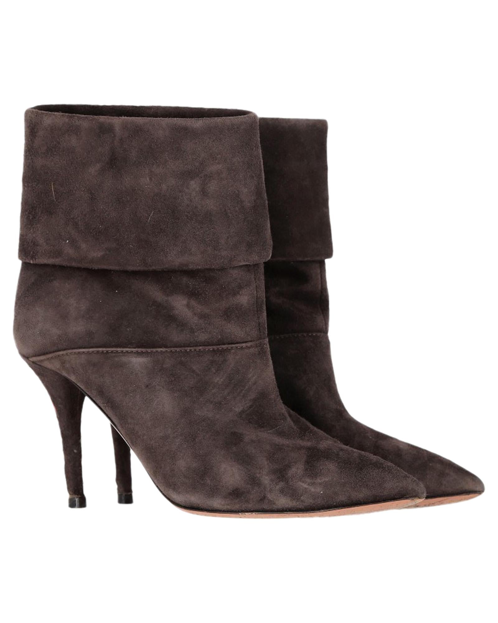 • Aquazzura Folded Ankle Heeled Boots in Brown Suede