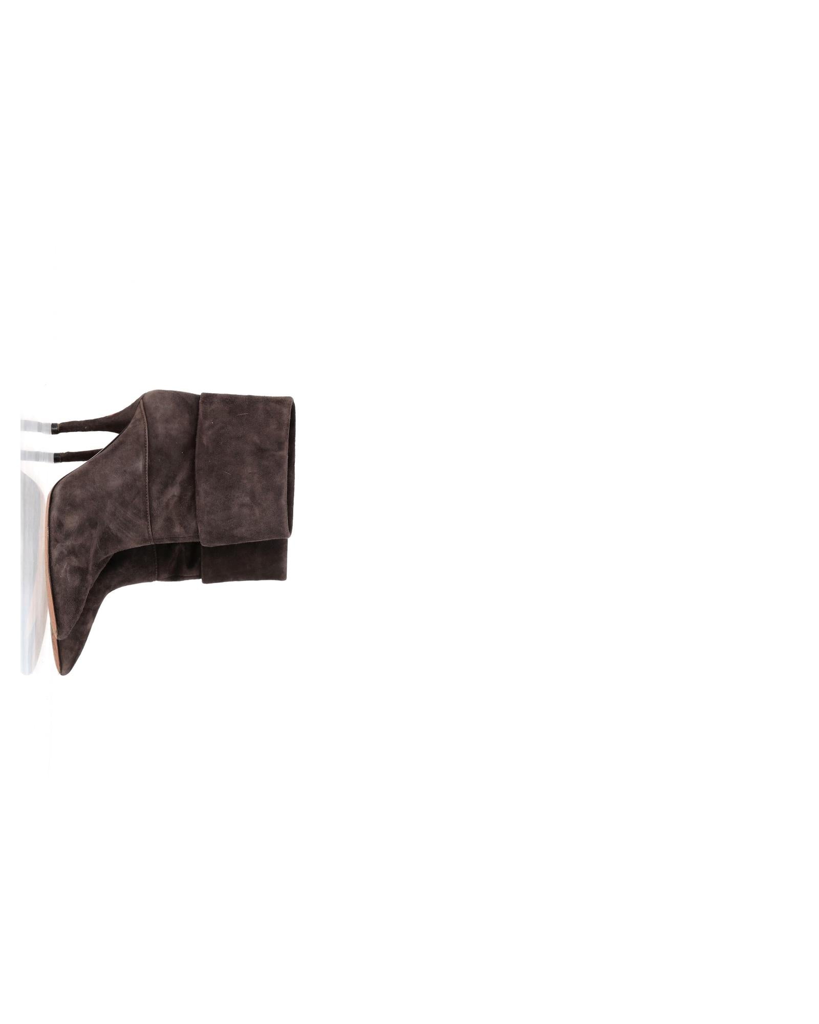 Folded Ankle Heeled Suede Boots with Sculptural Cuff Detail
