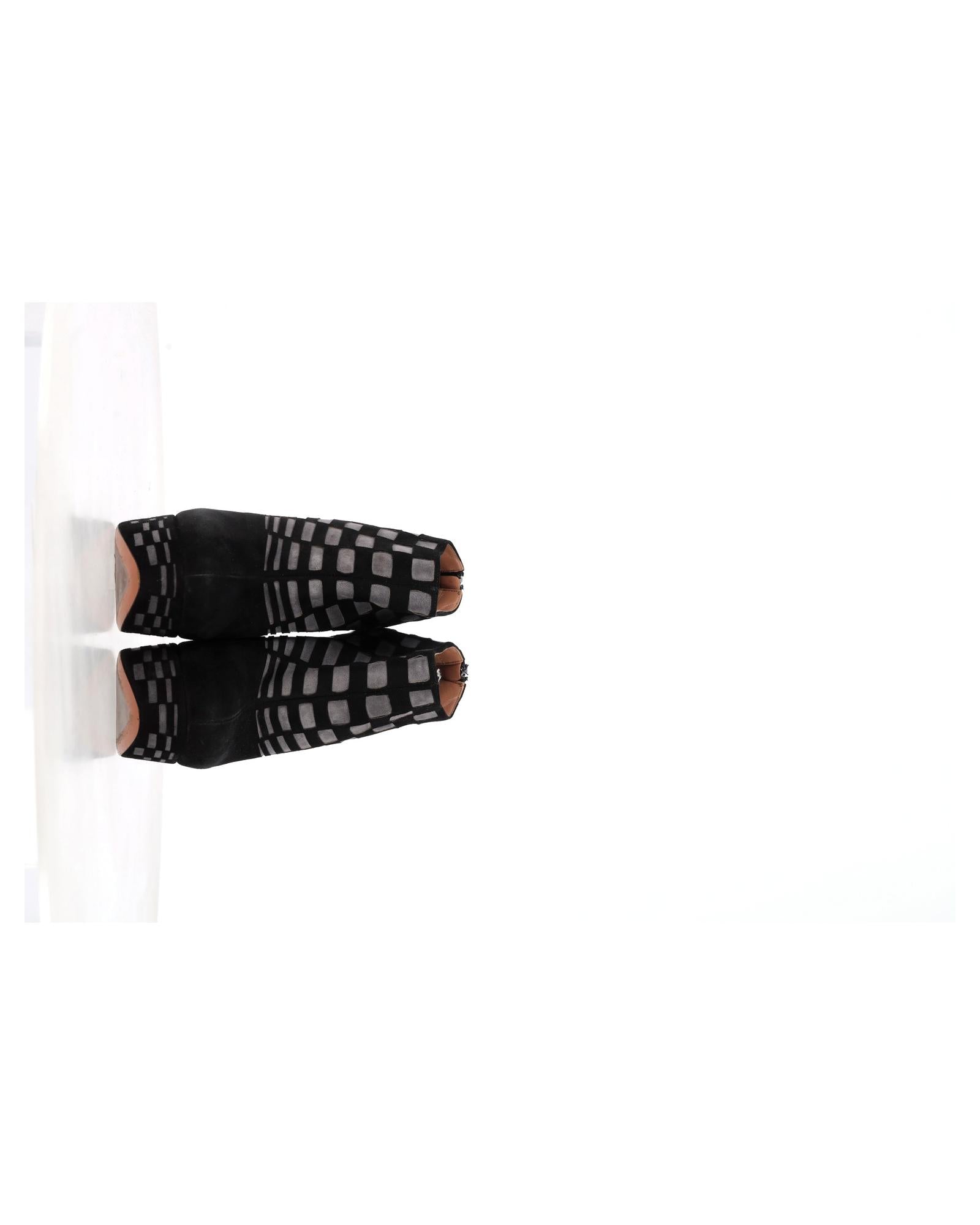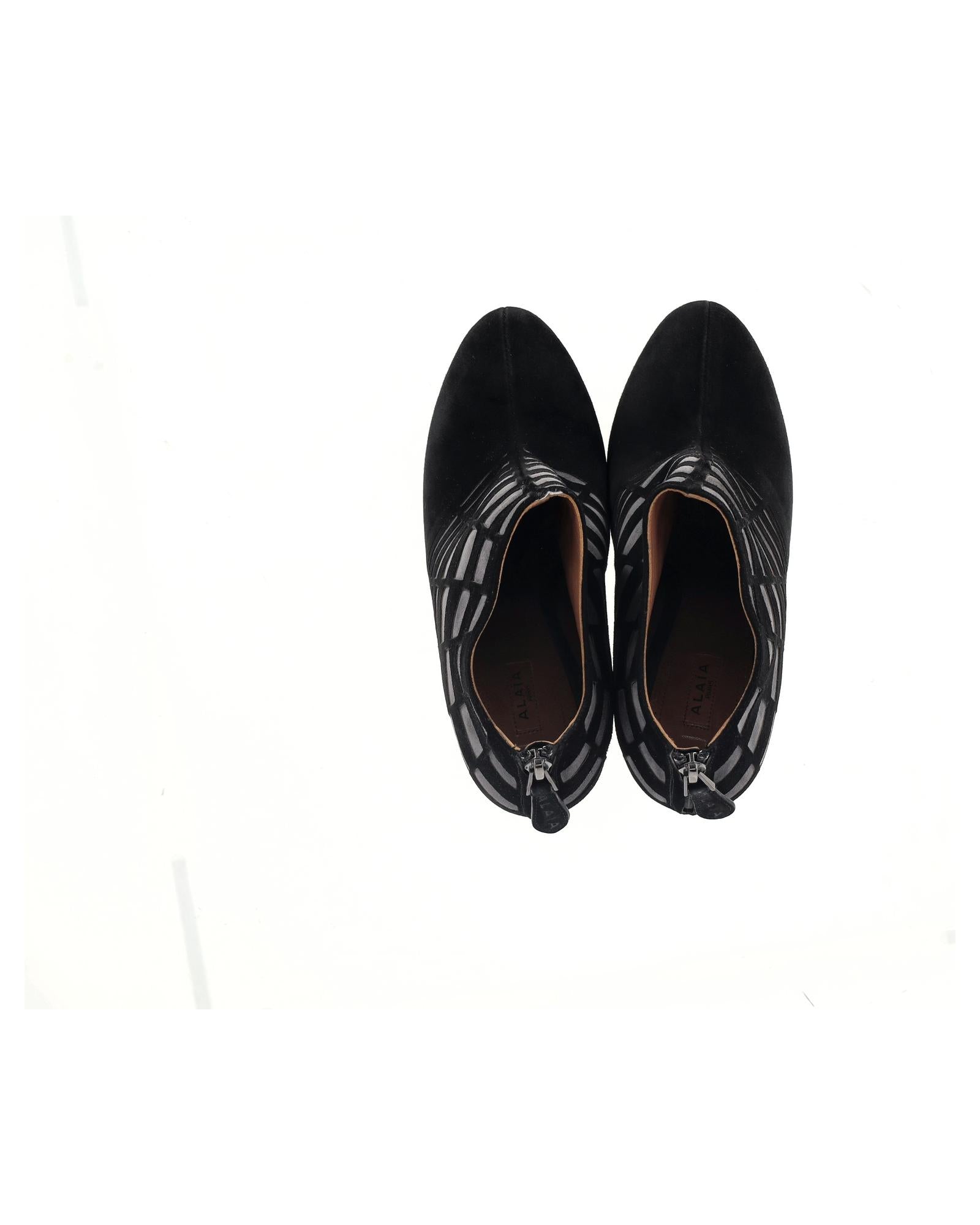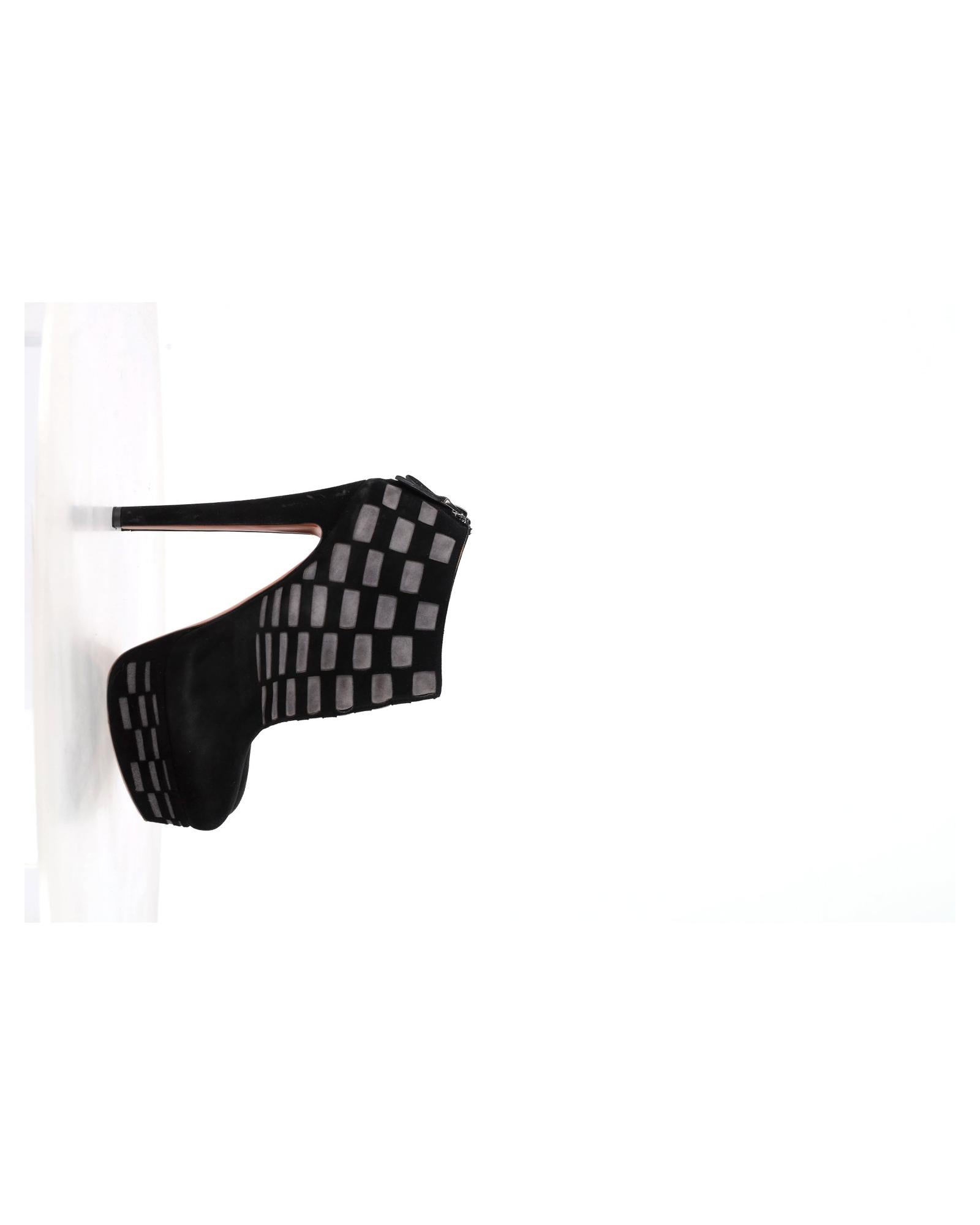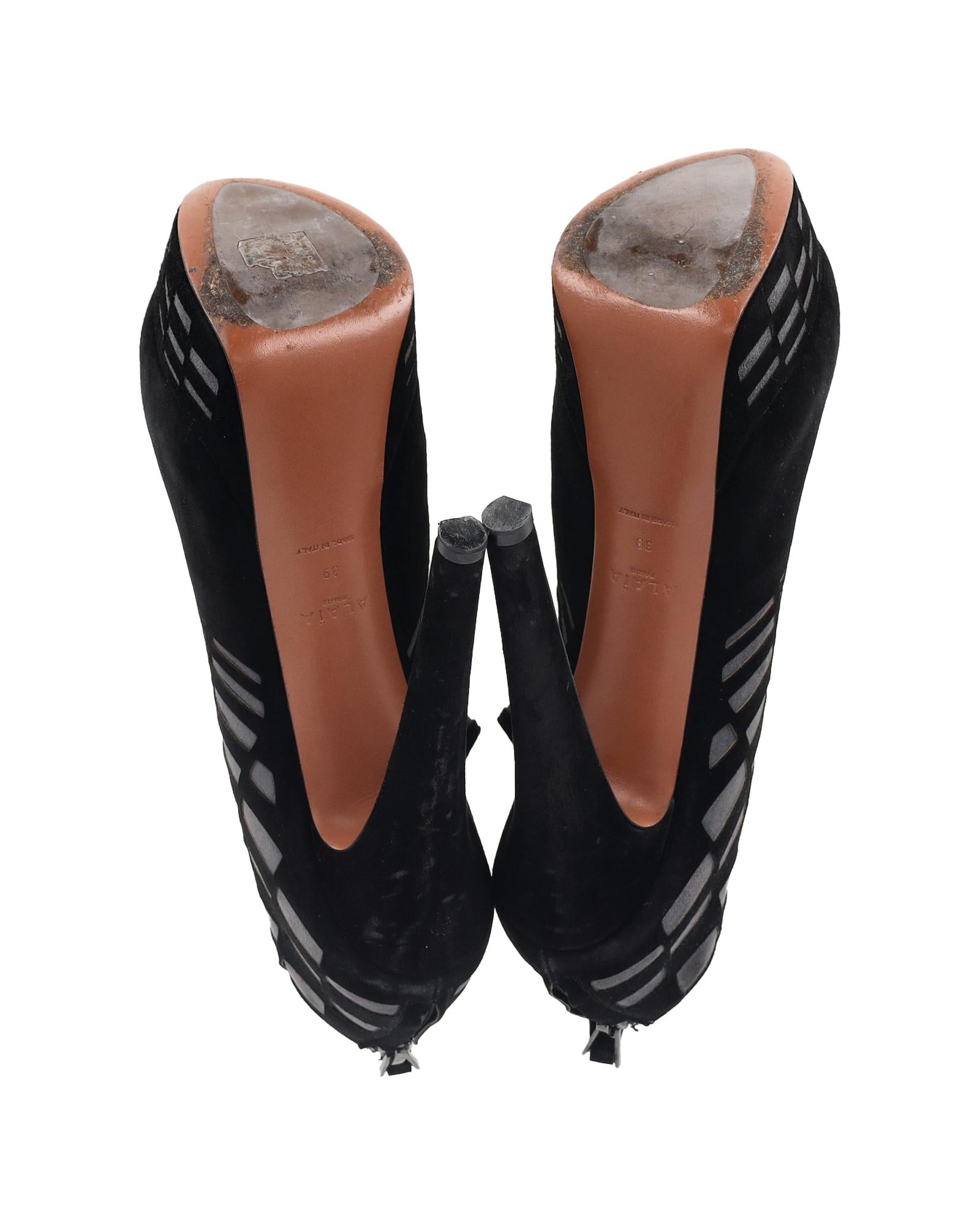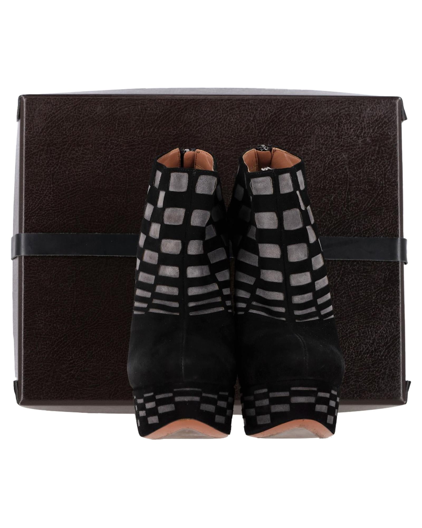 - Alaia Laser Cut Platform Ankle Boots in Black Suede
