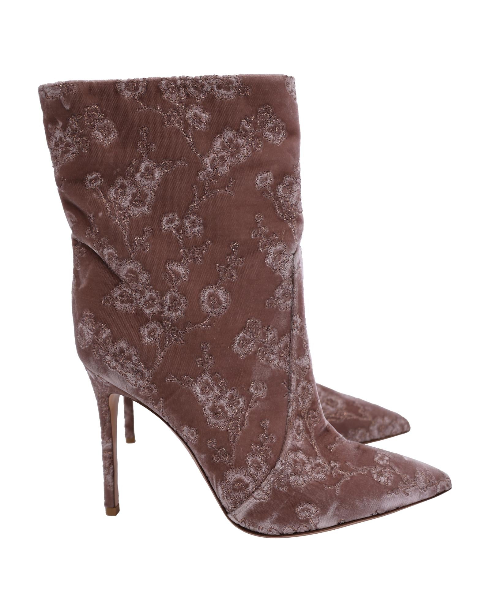 - Gianvito Rossi Embroidered Ankle Boots in Pink Velvet