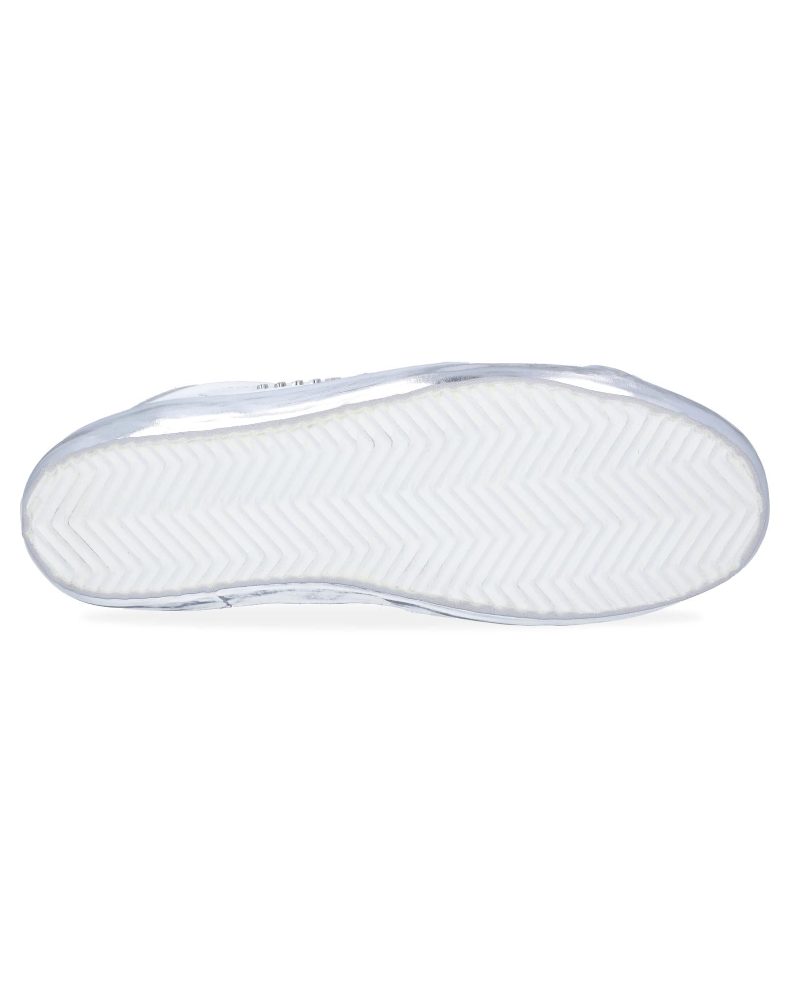 Distressed Leather Low-Top Sneakers with Silver Star Applique