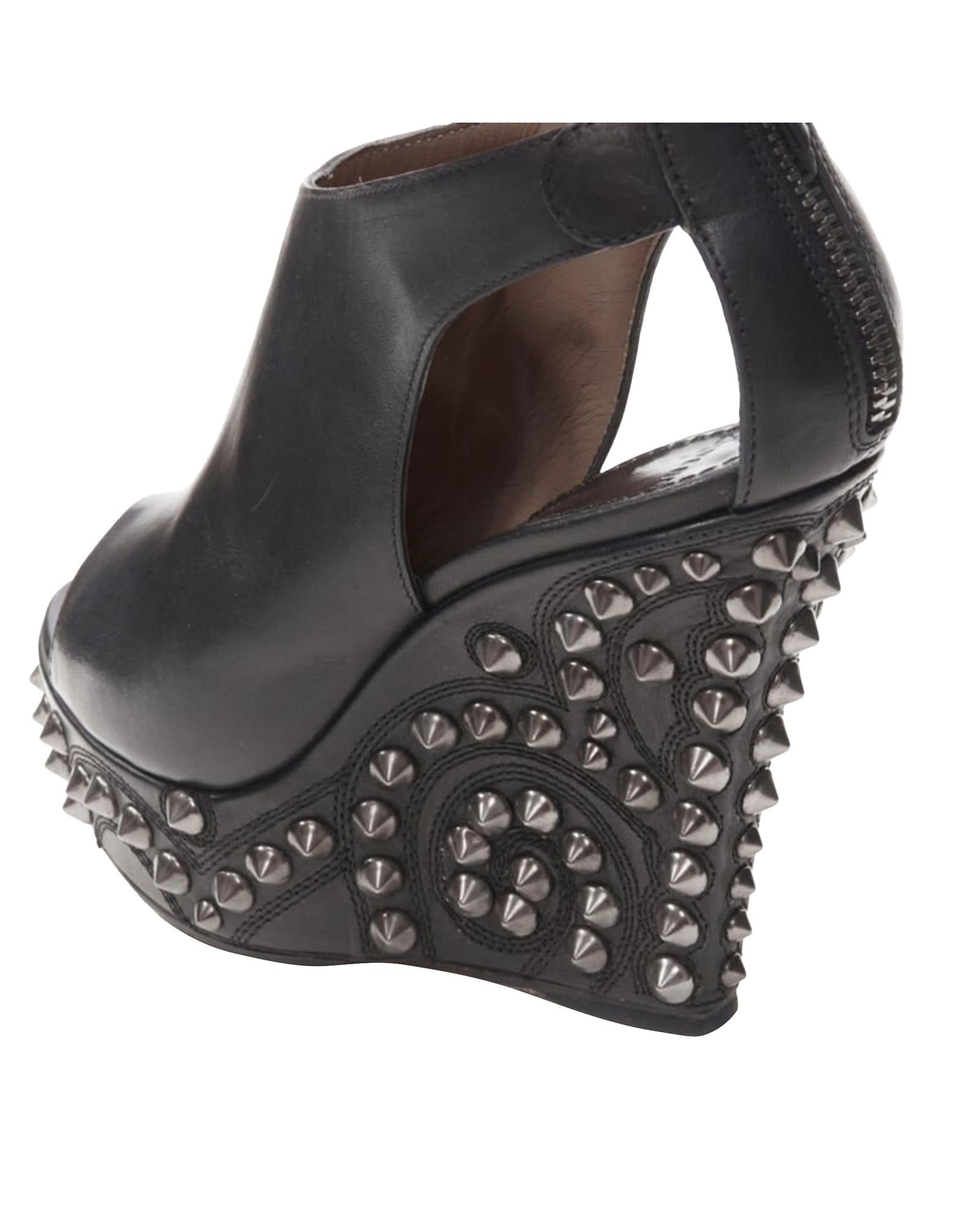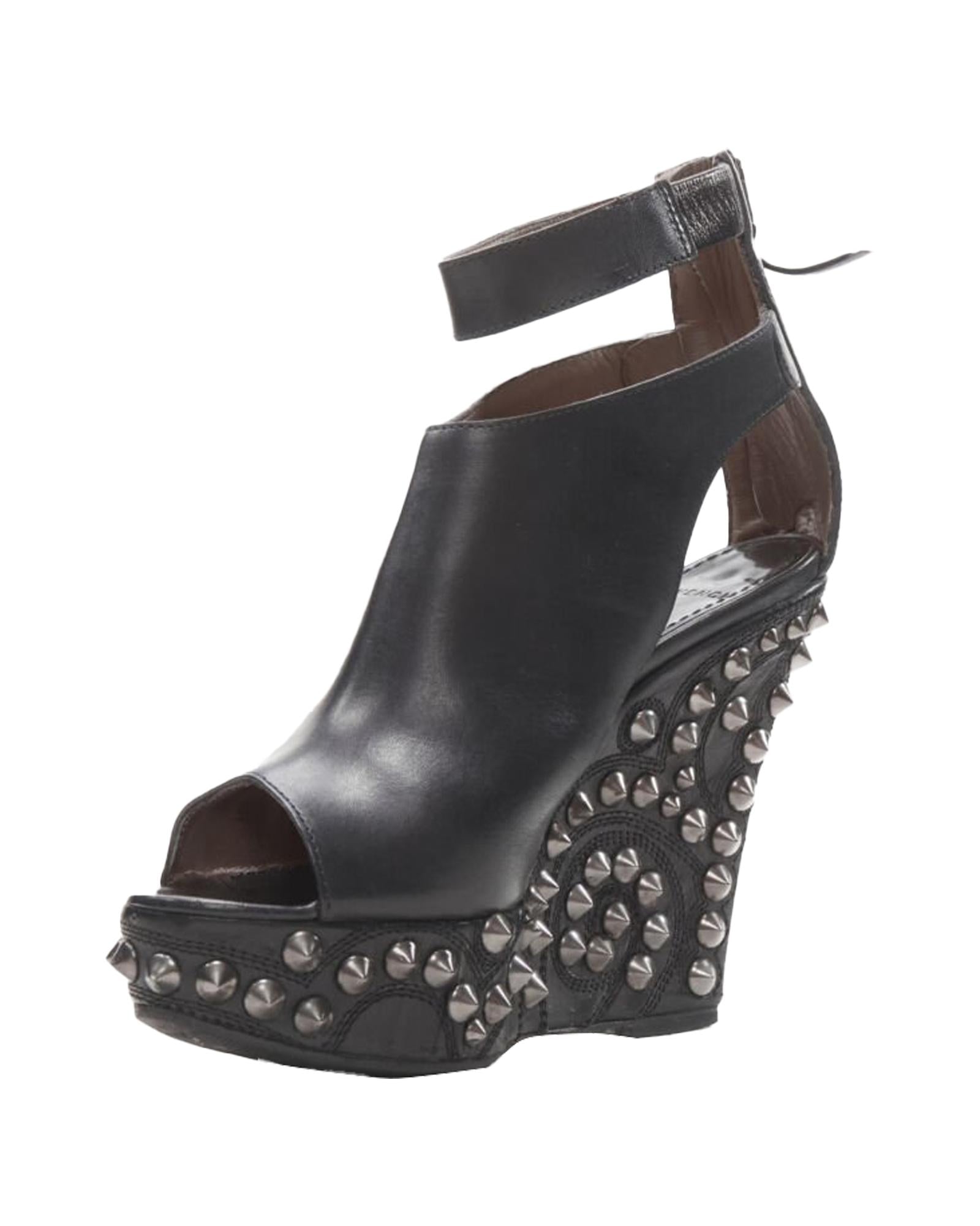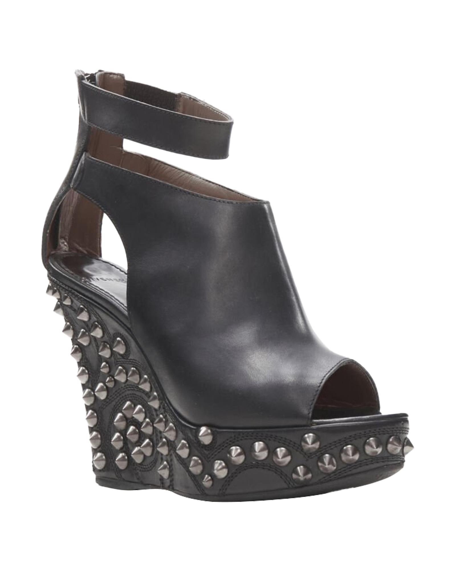 Pre-owned Wedge Heel Ankle Strap Peep Toe Shoes with Studded Details
