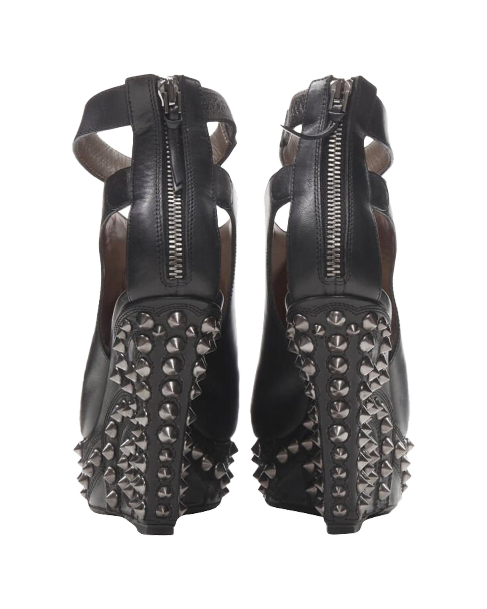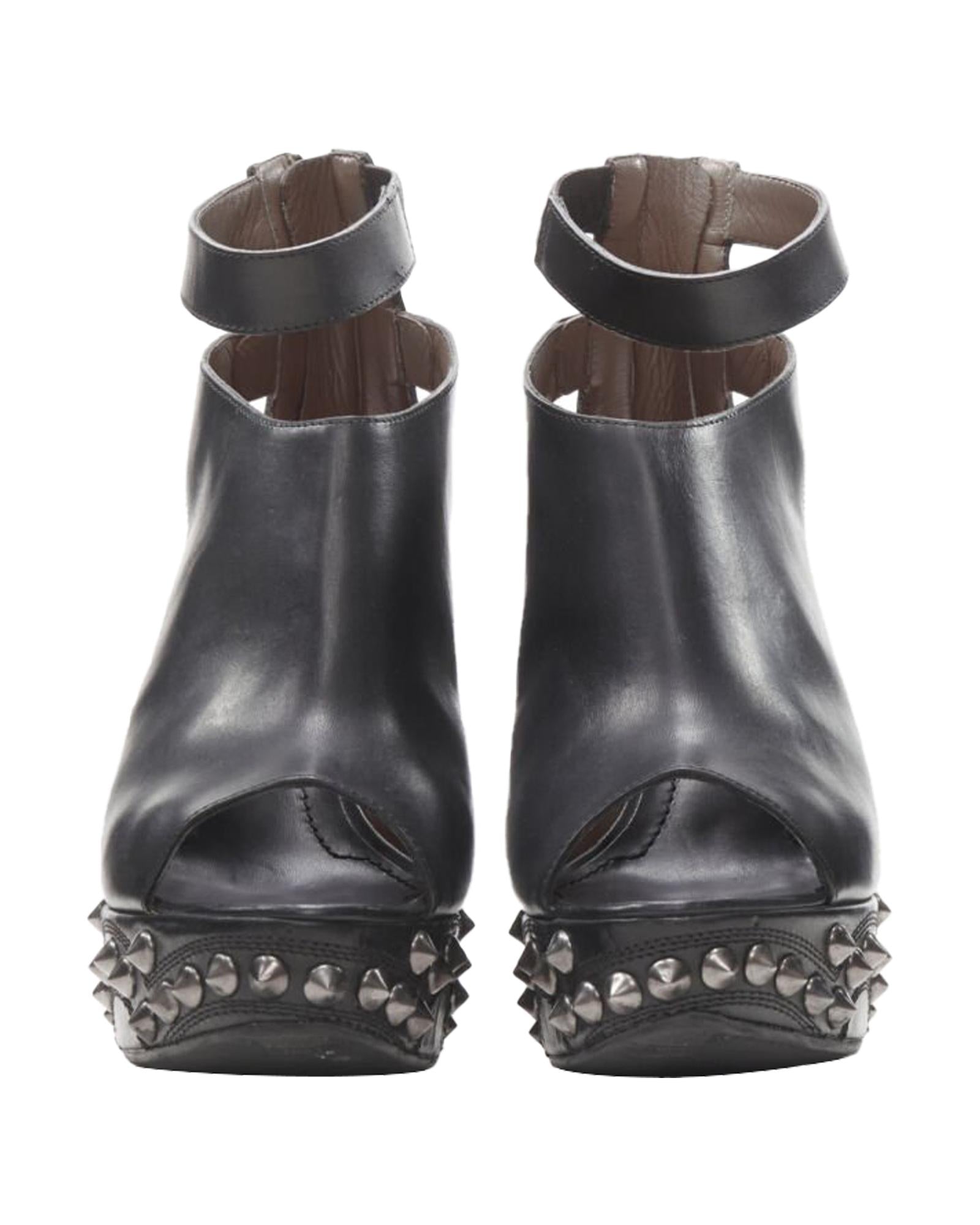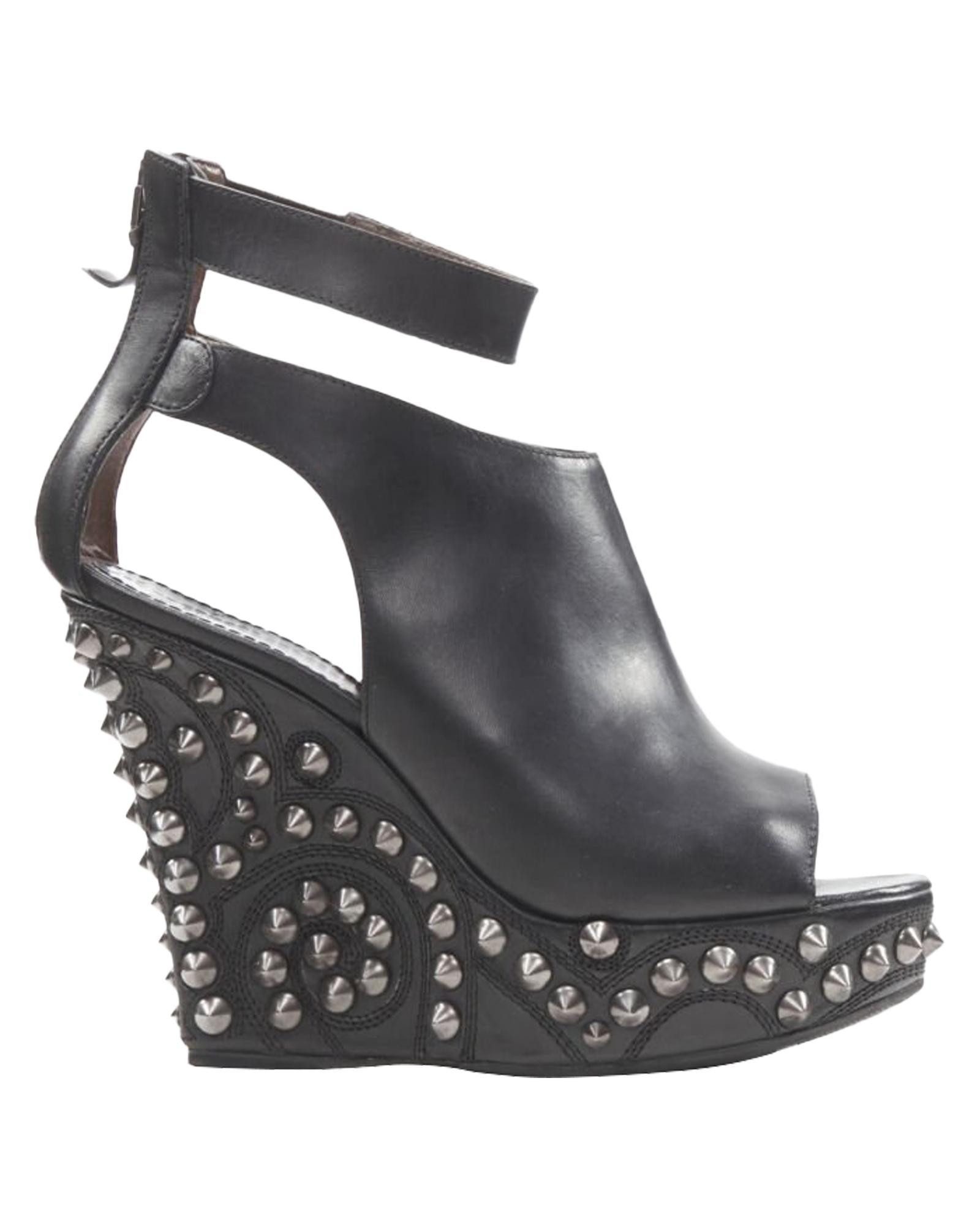 Pre-owned Wedge Heel Ankle Strap Peep Toe Shoes with Studded Details
