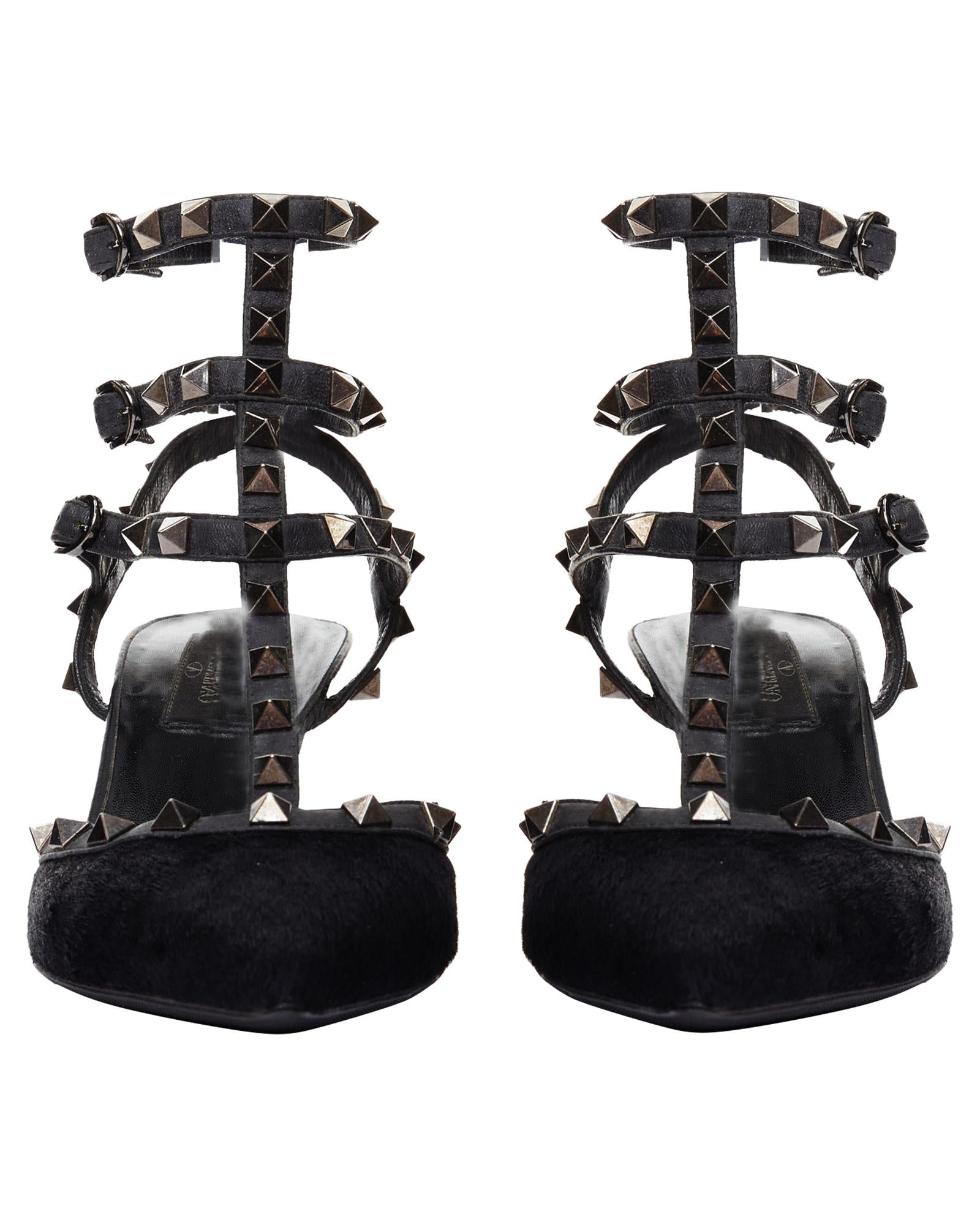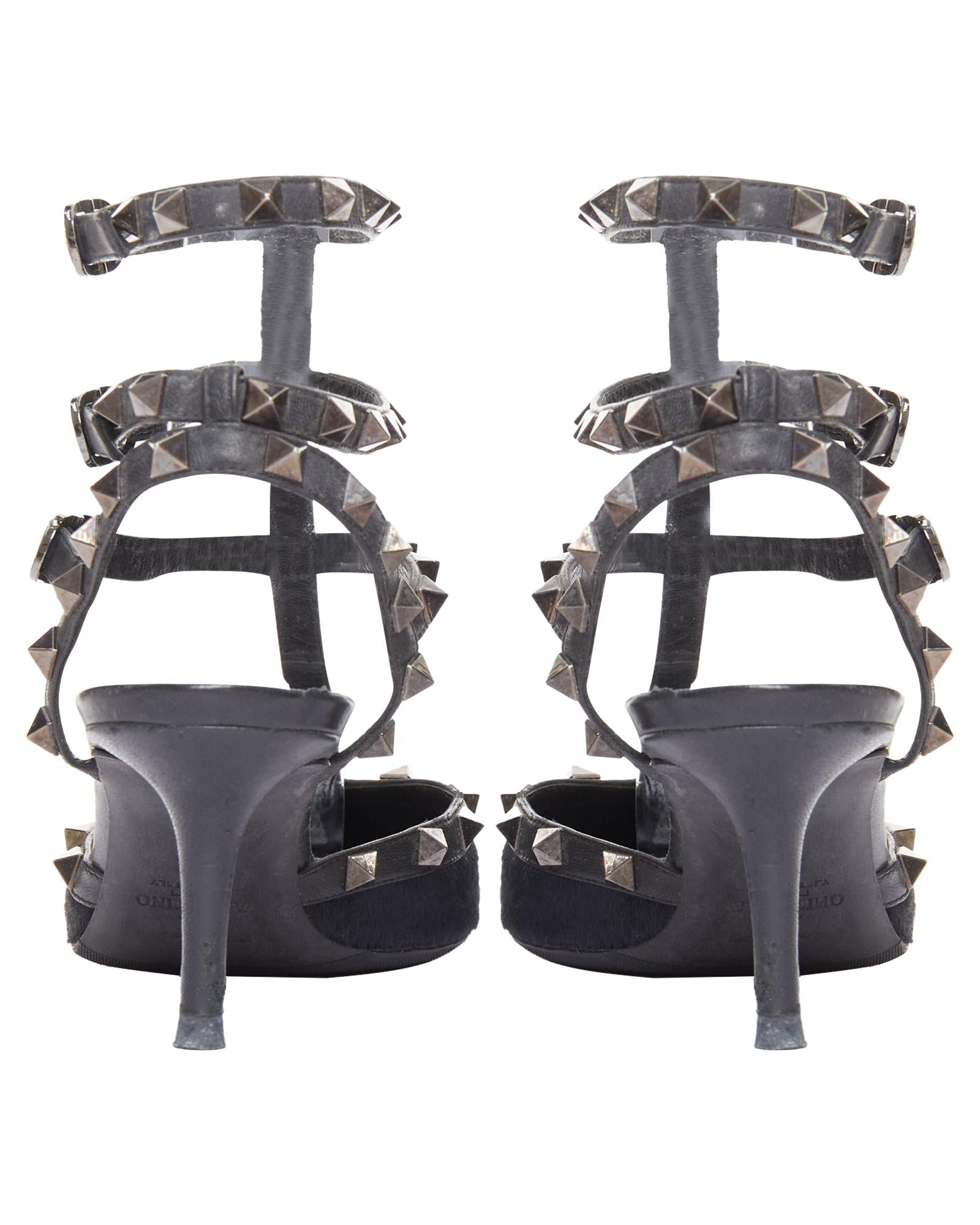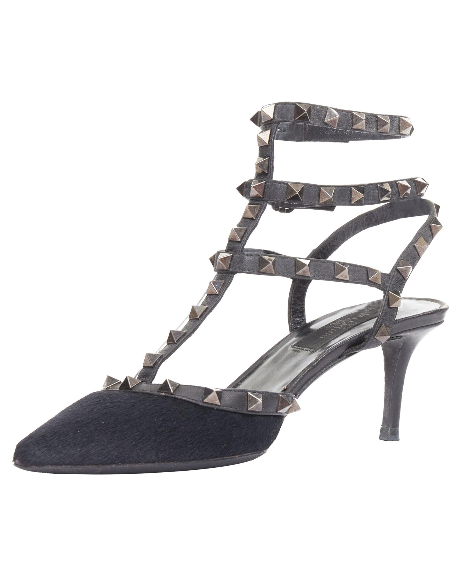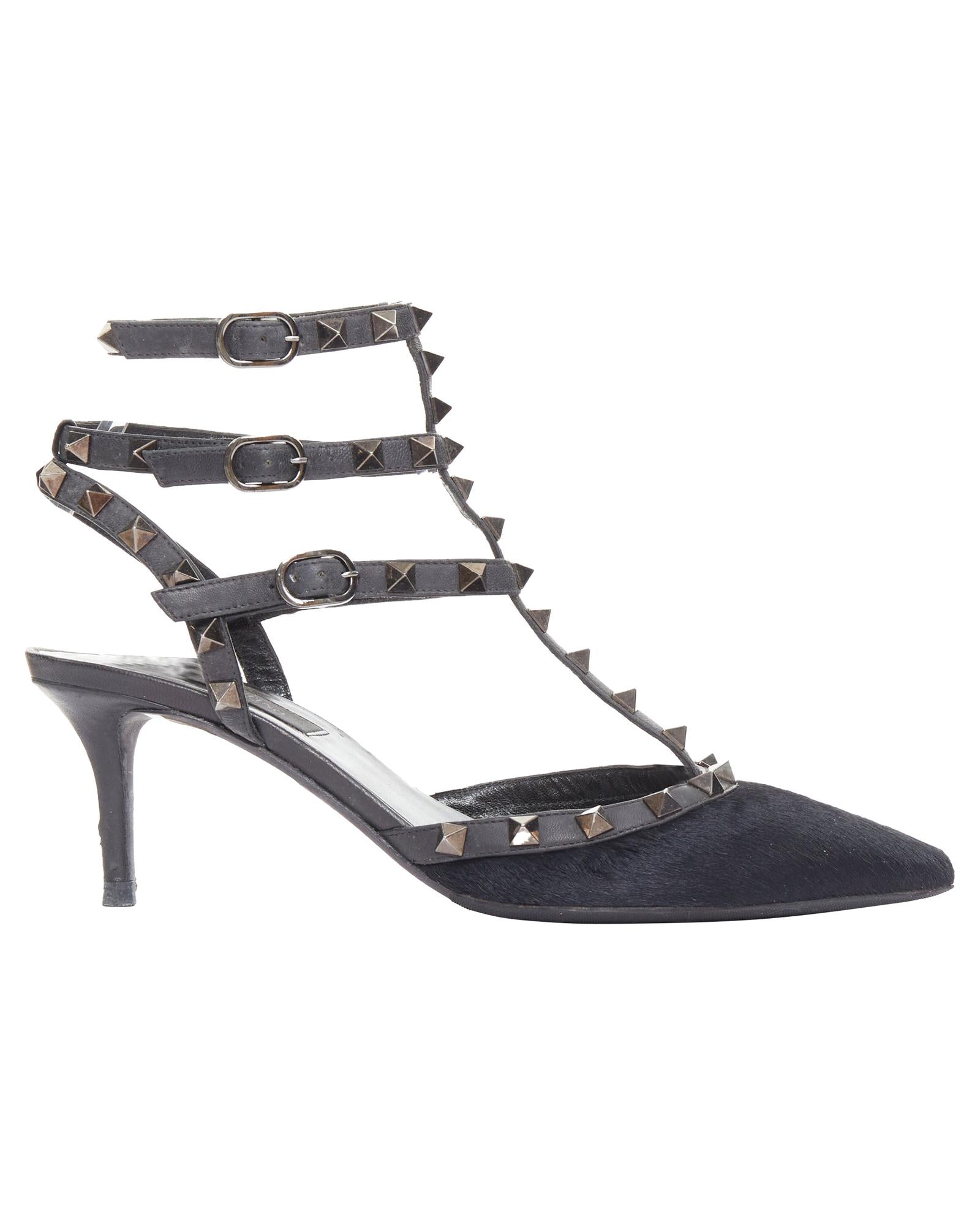 Pre-owned Elegant Pointed Toe Heeled Shoes with Straps and Pyramid Studs