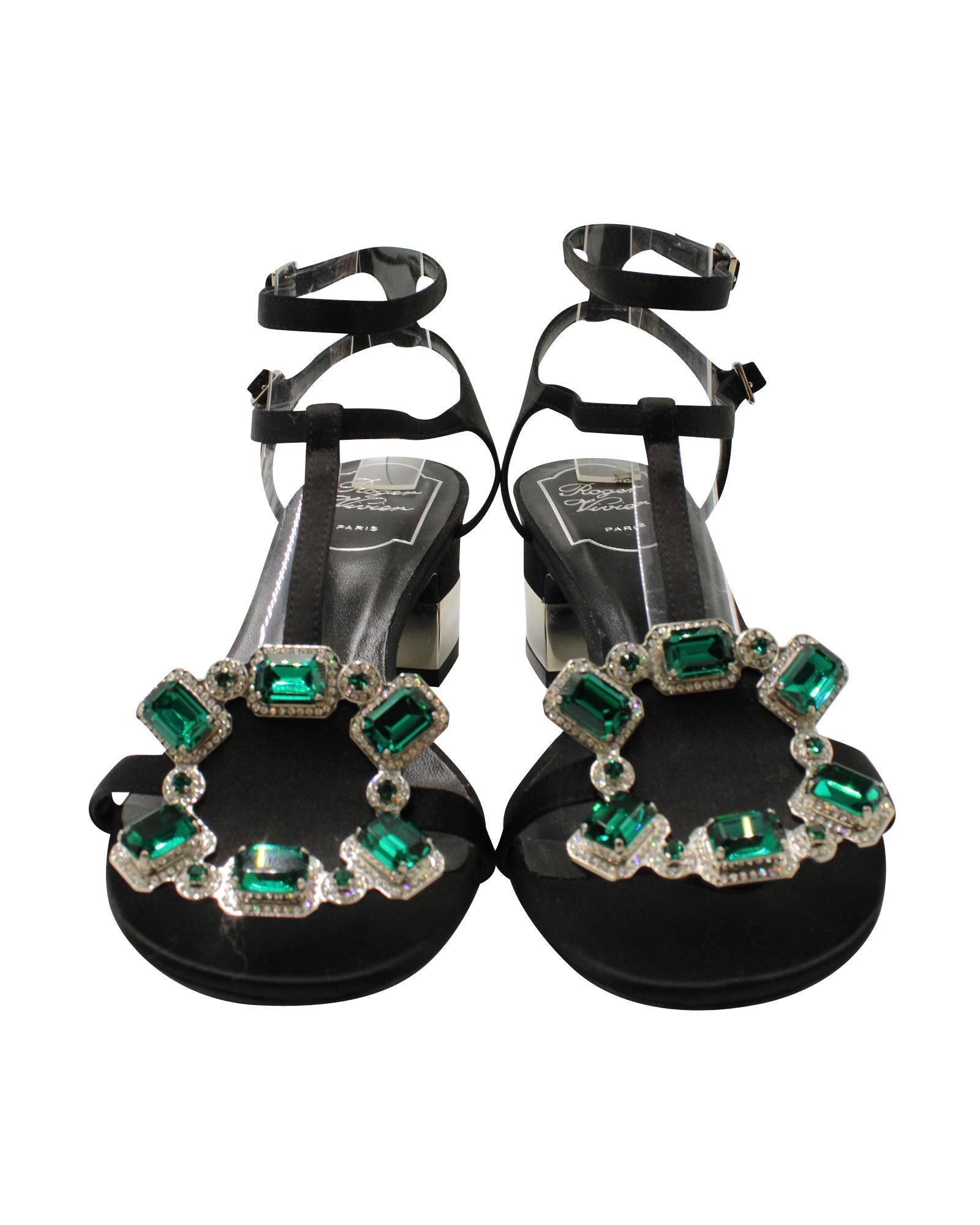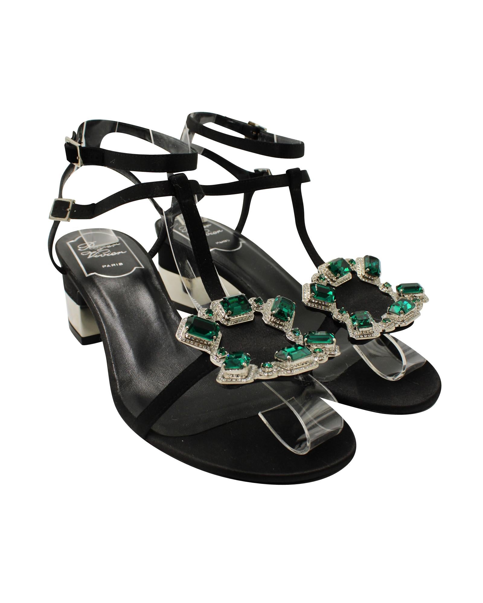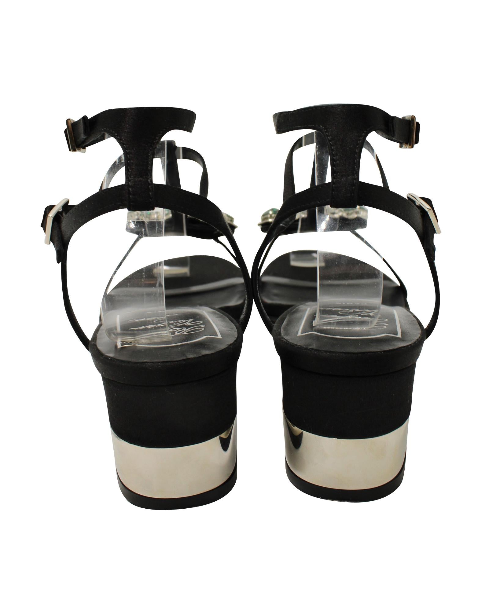 - Roger Vivier Jewels Crown High Heel Sandals in Black Satin
