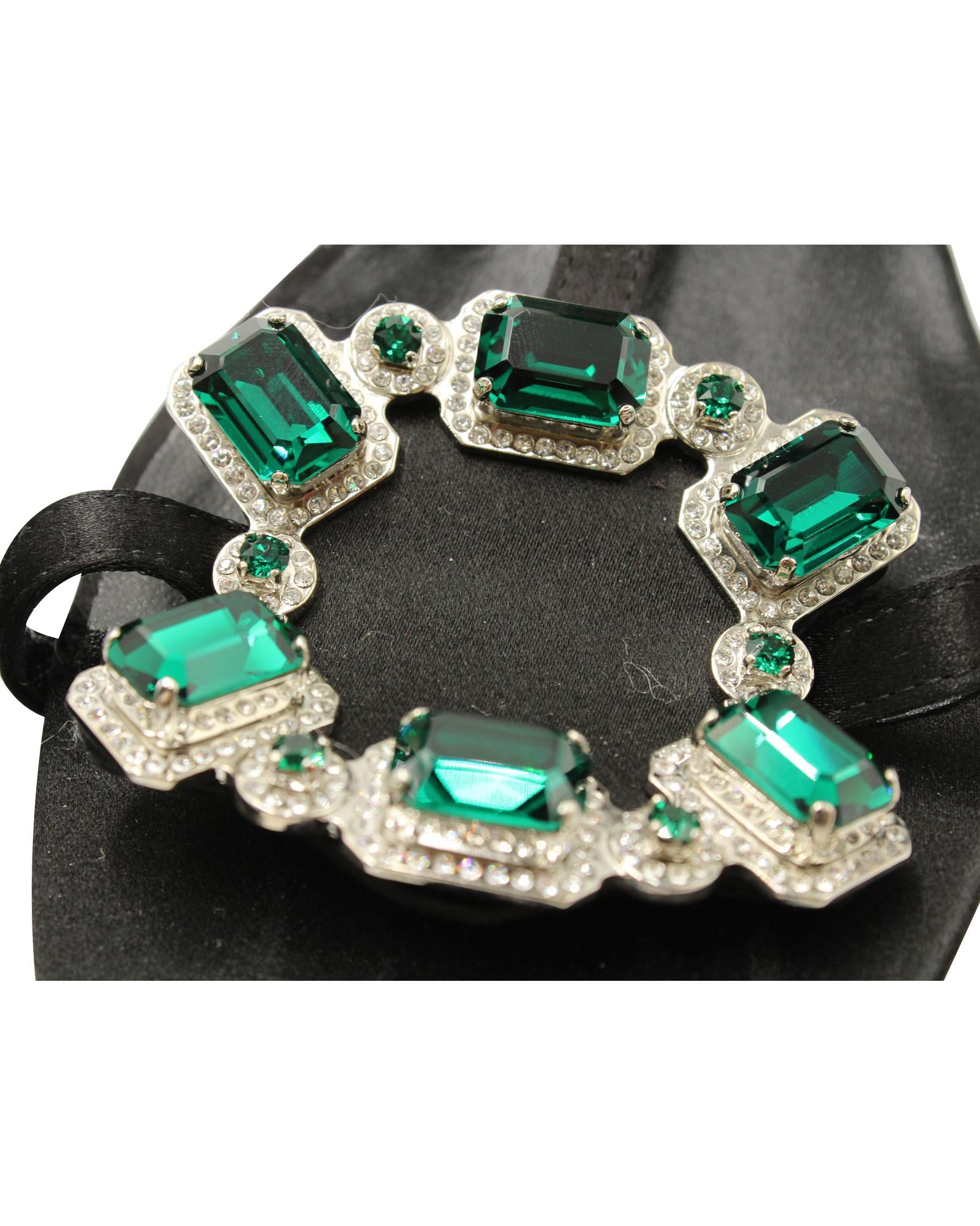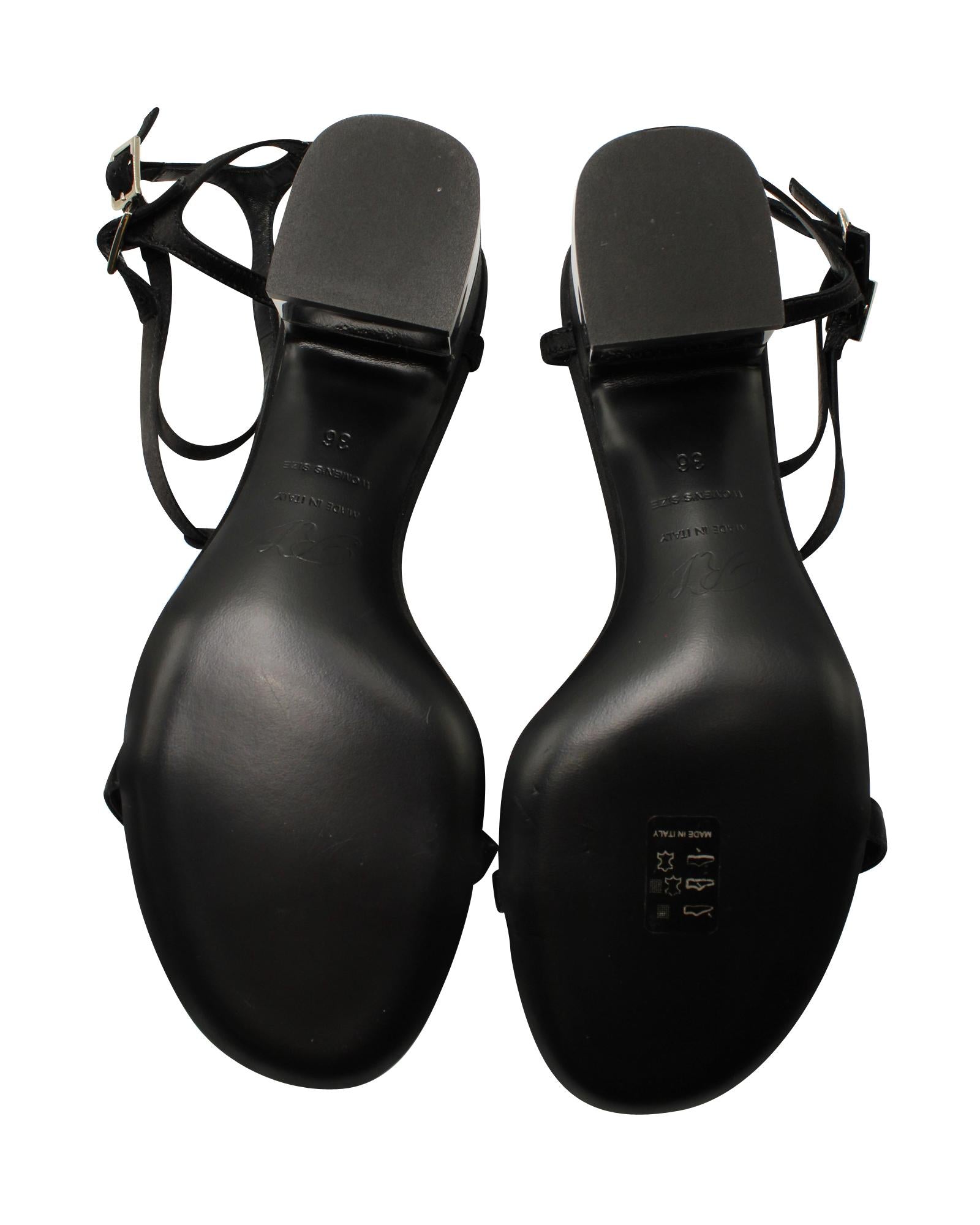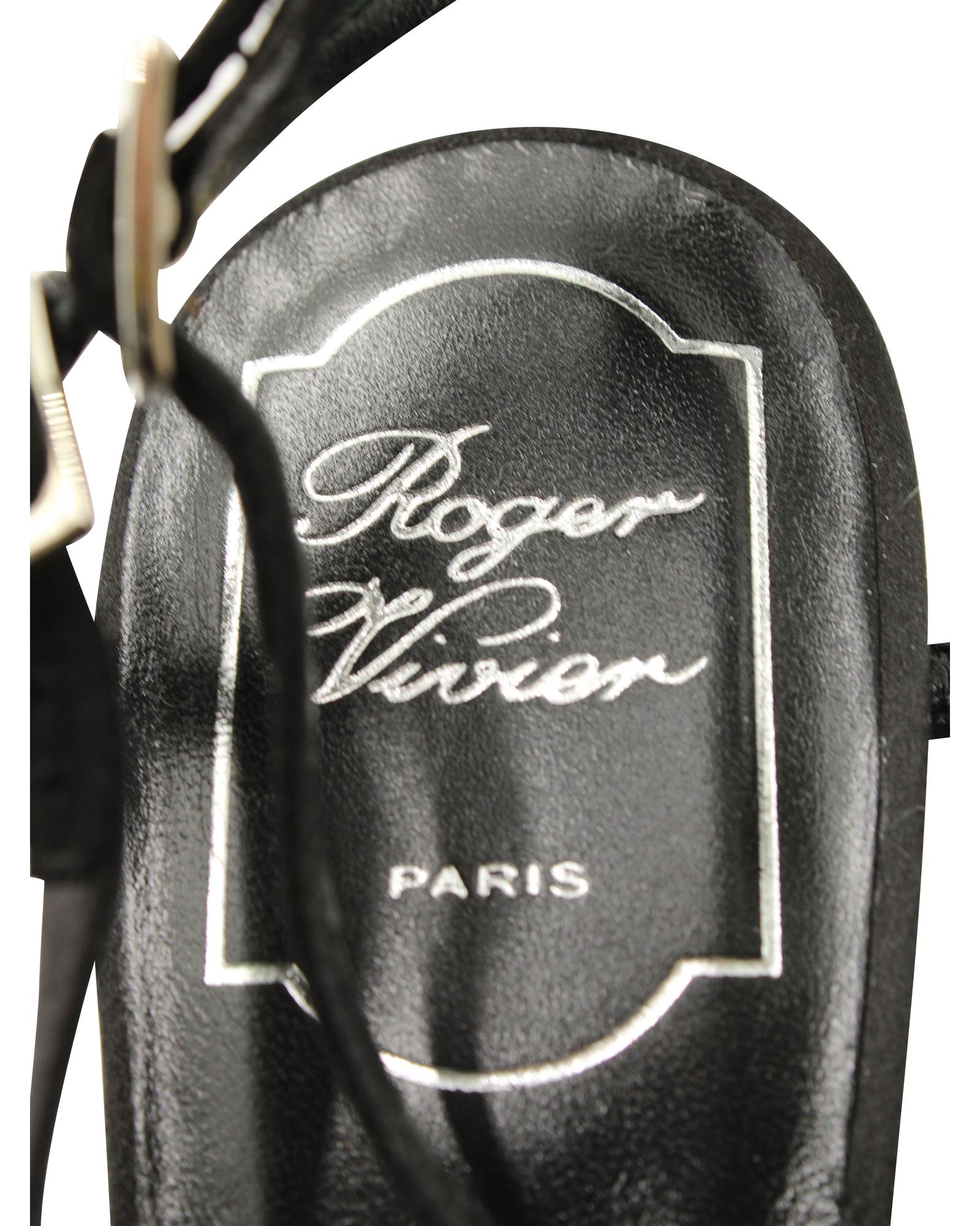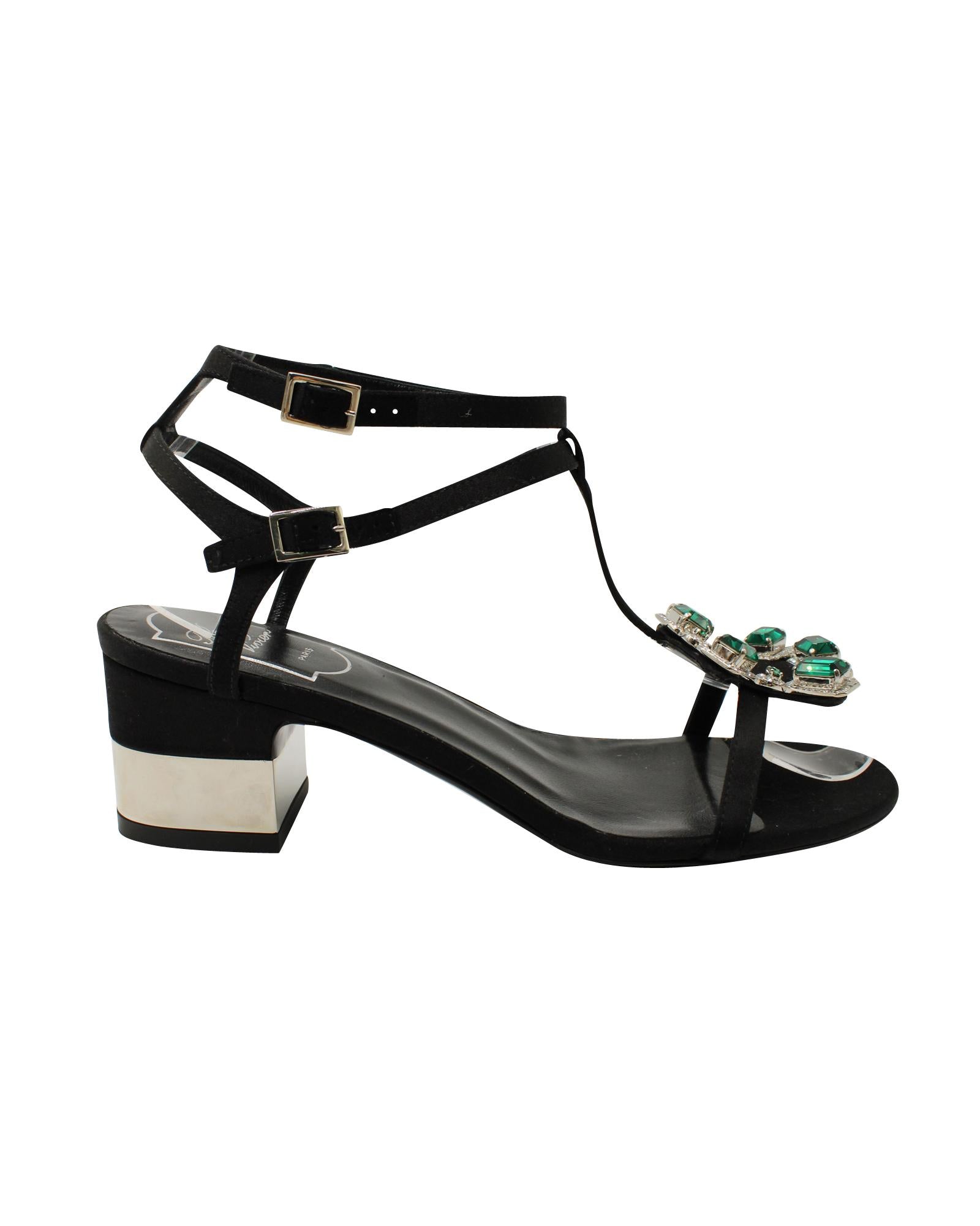 - Roger Vivier Jewels Crown High Heel Sandals in Black Satin