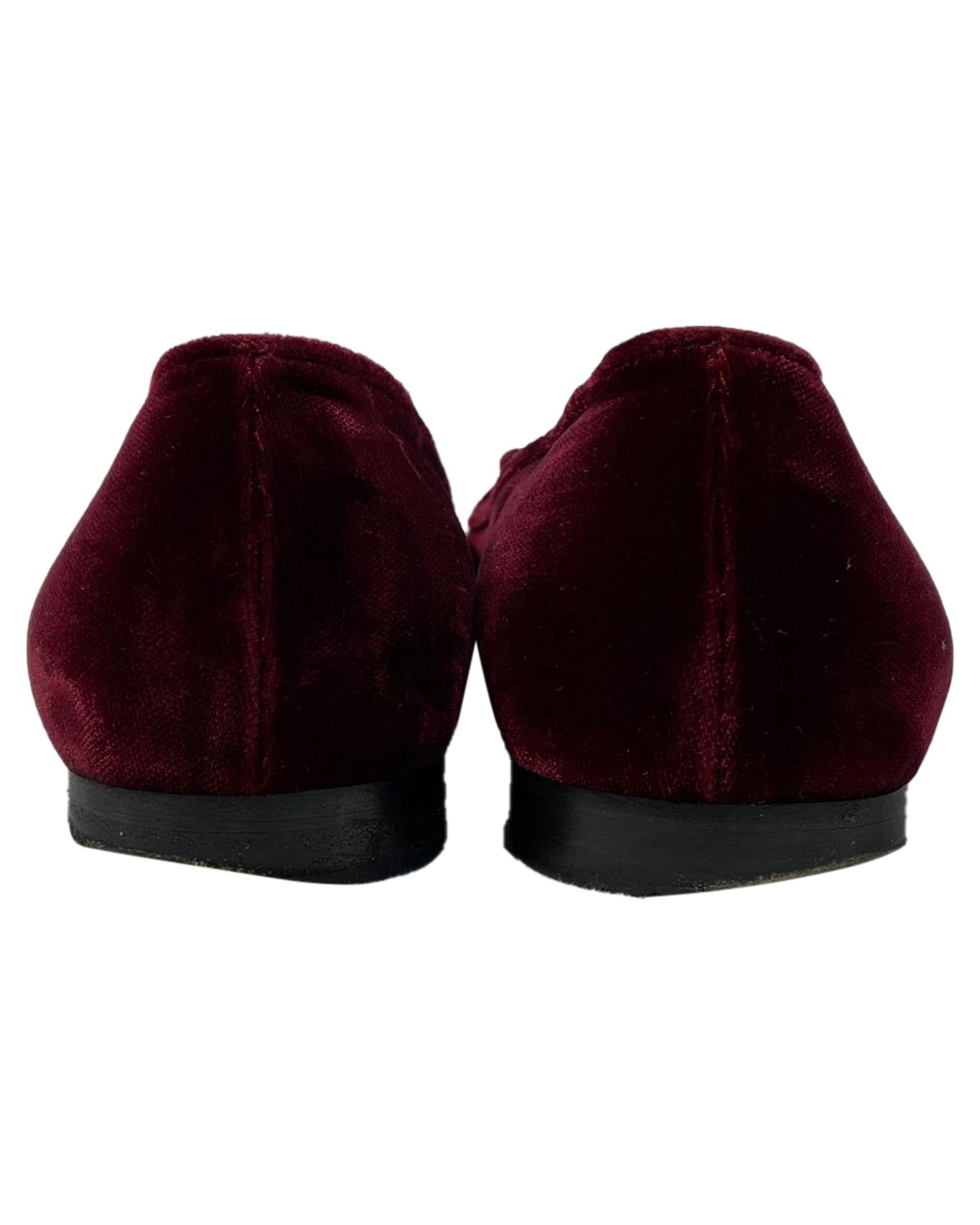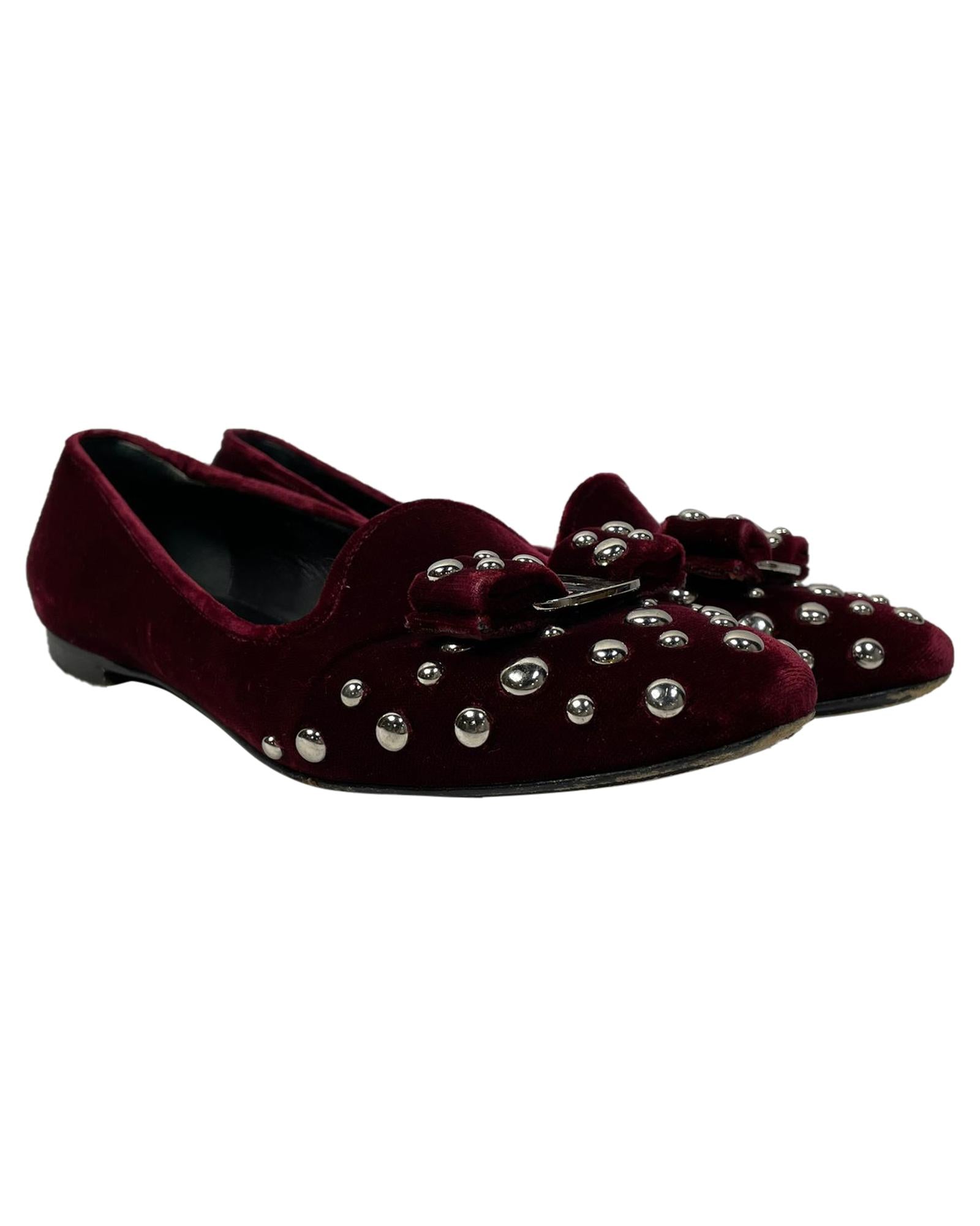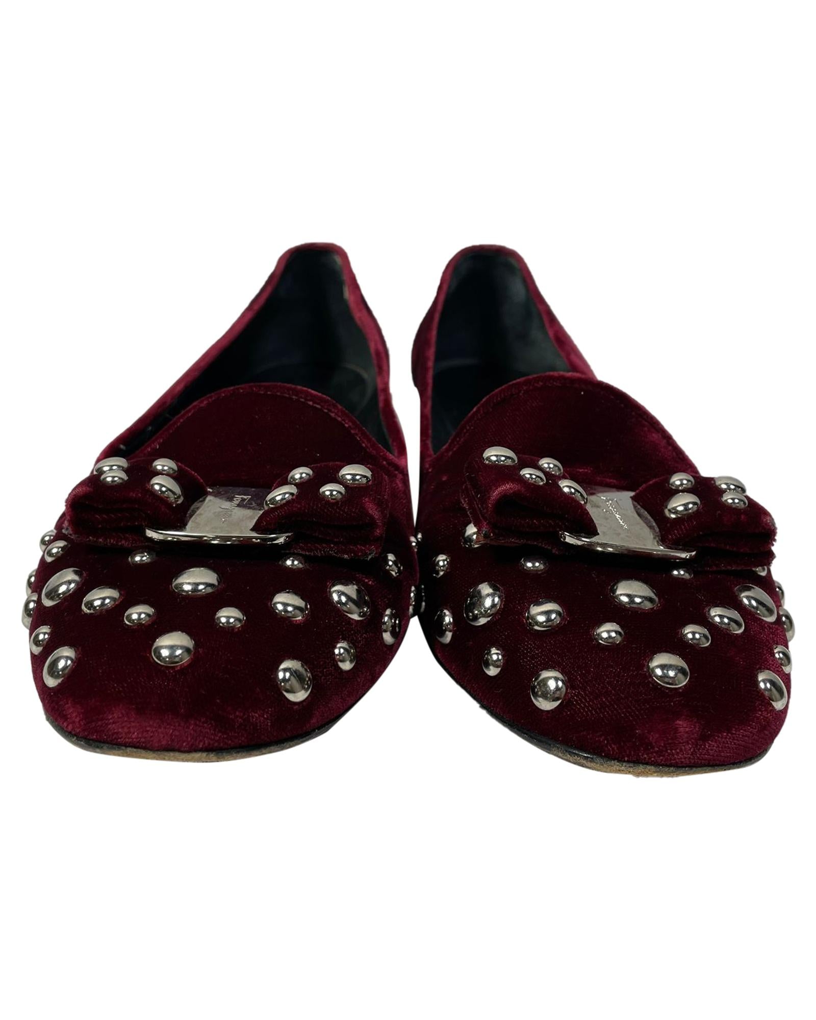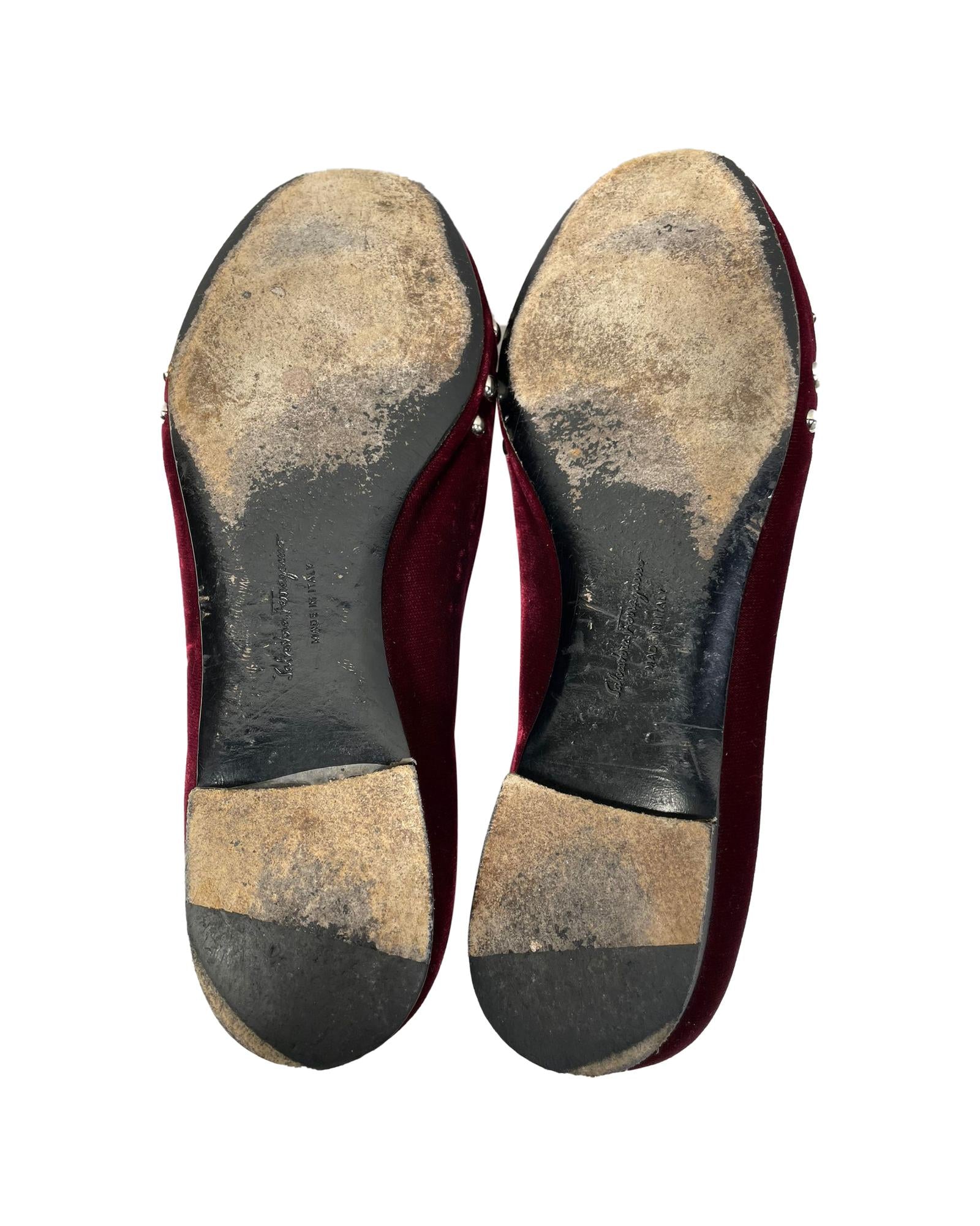 - Salvatore Ferragamo Studded Bow Detail Ballet Flats in Burgundy Velvet