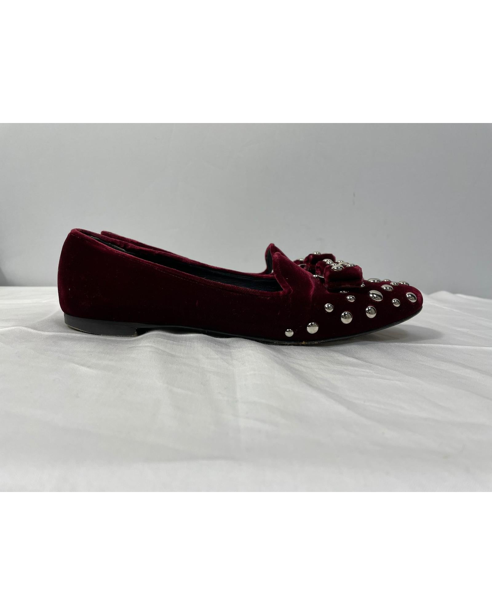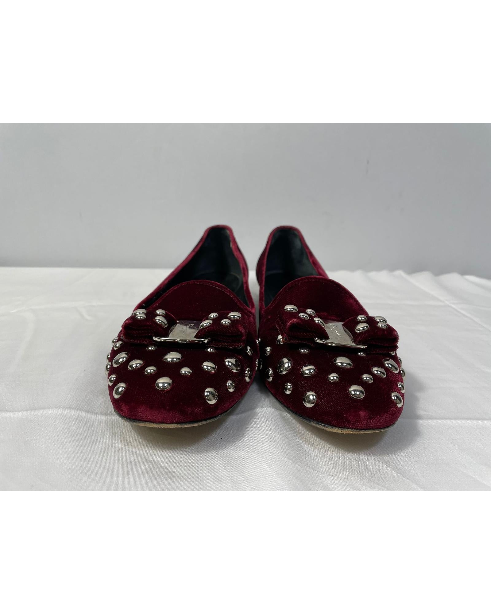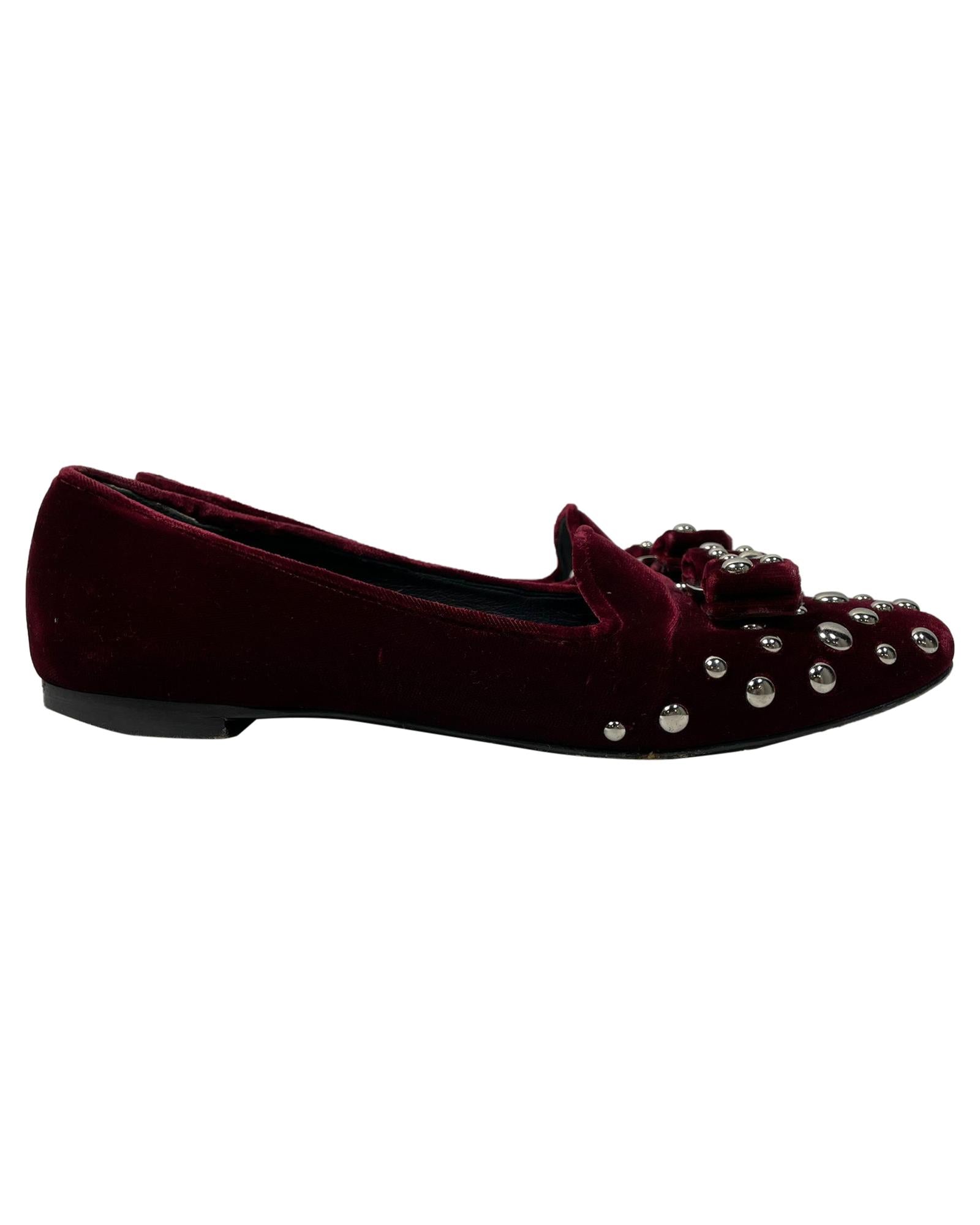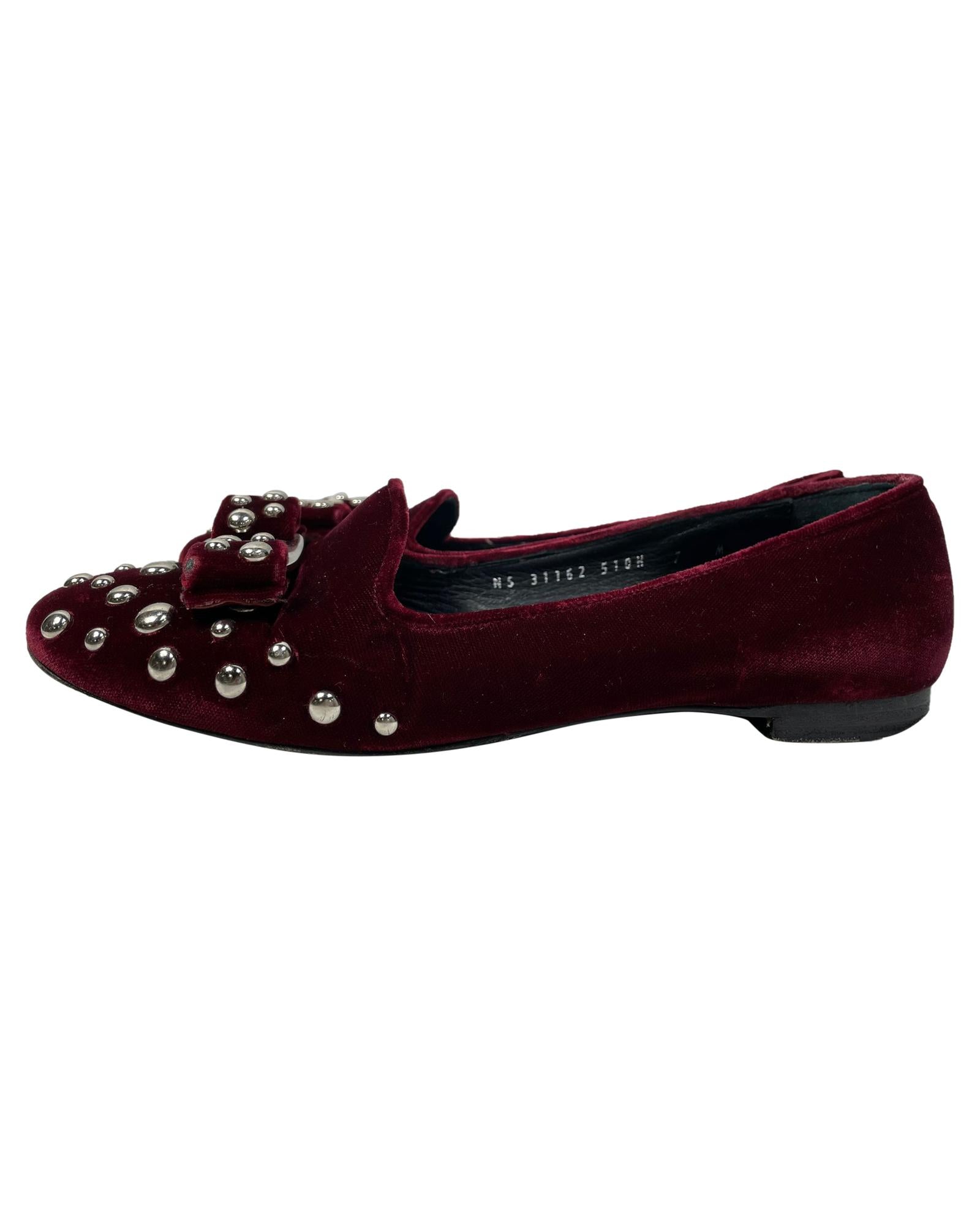 - Salvatore Ferragamo Studded Bow Detail Ballet Flats in Burgundy Velvet