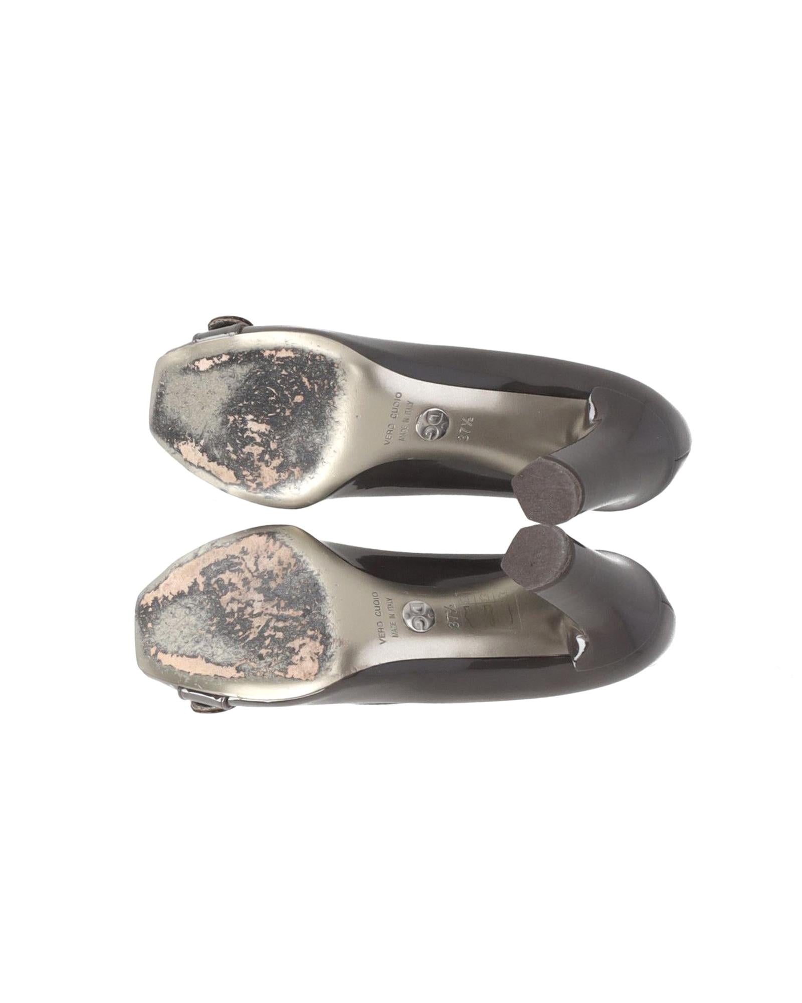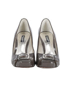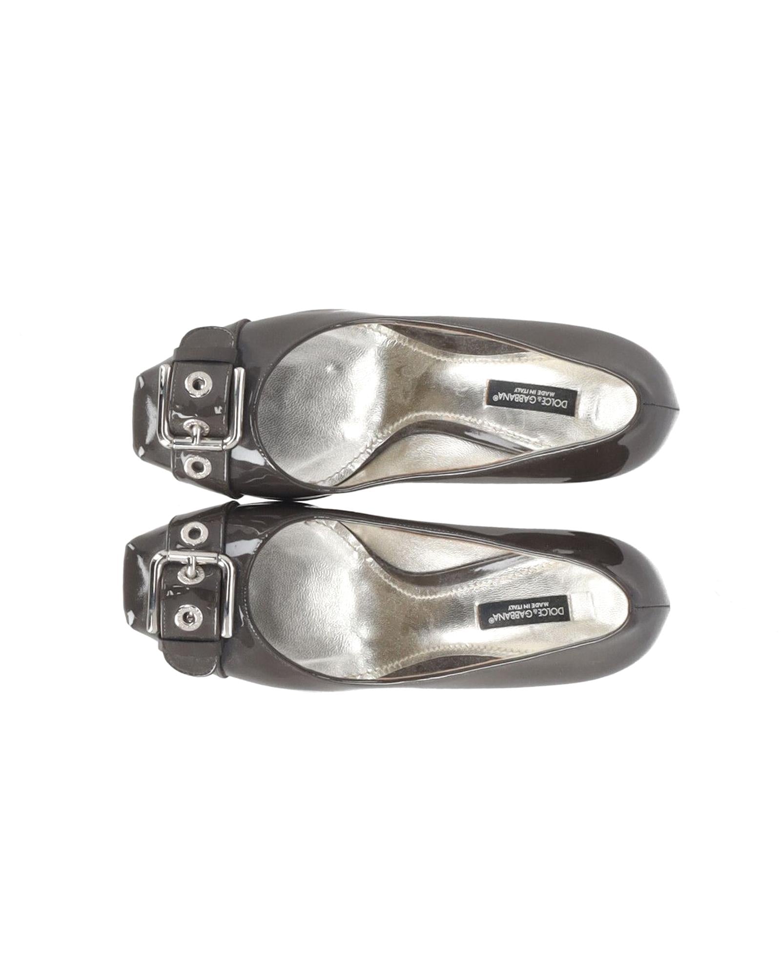 Grey Patent Leather High Heel Pumps with Buckle Detail