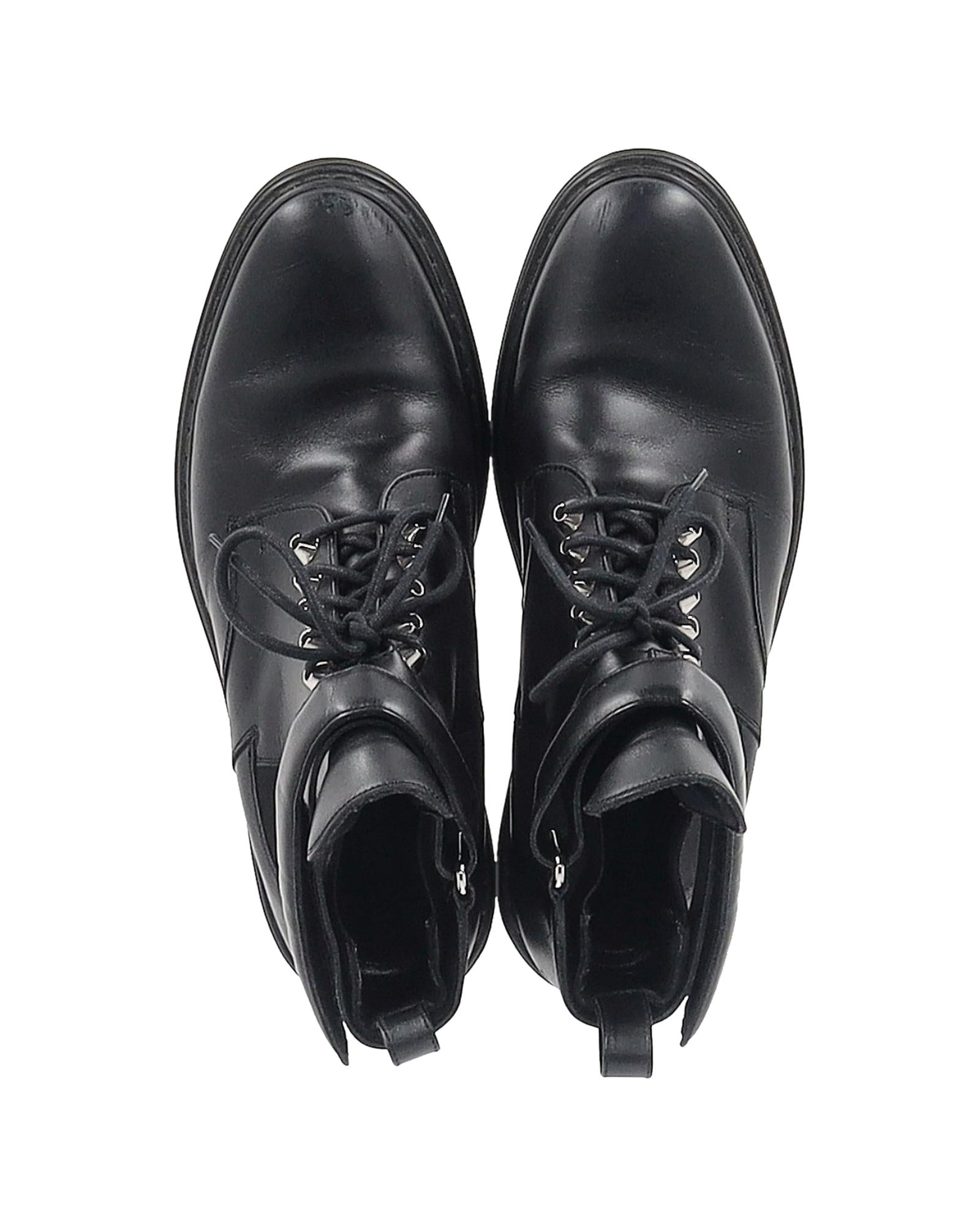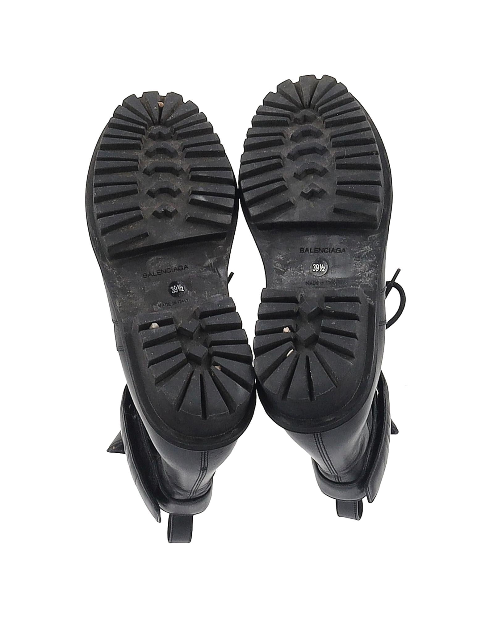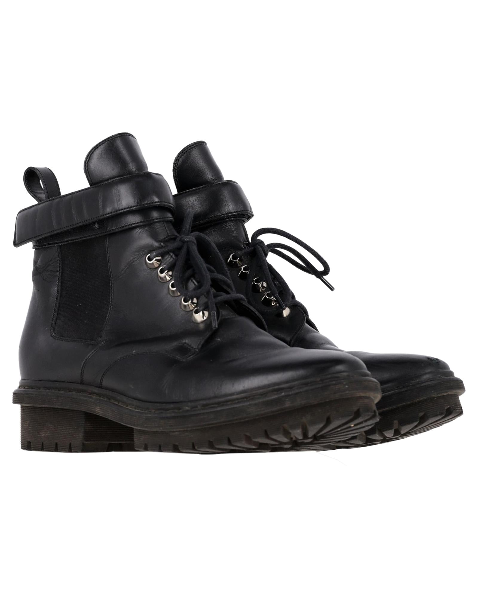 - Step into bold sophistication with the Balenciaga Lace Up Combat Boots in Black Calfskin Leather