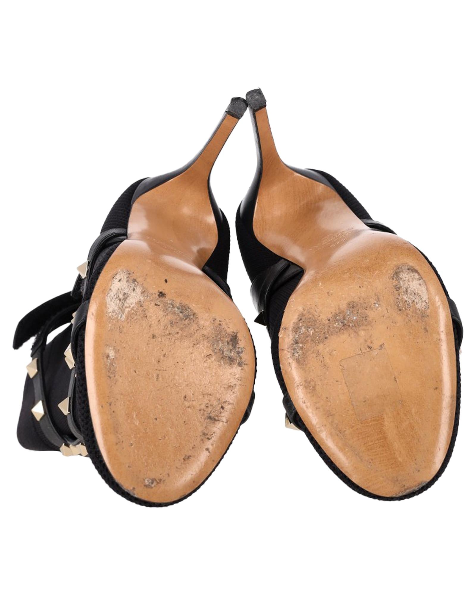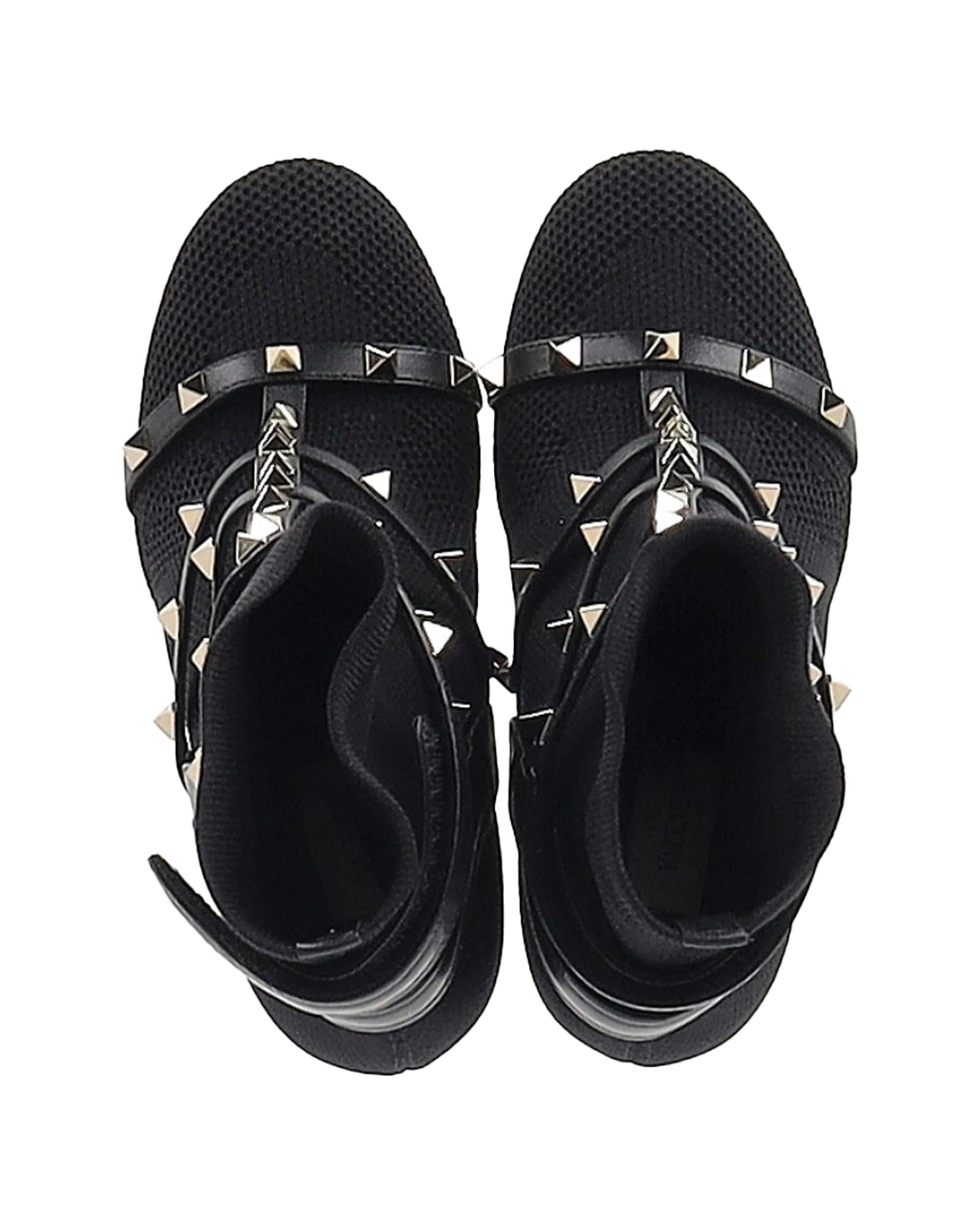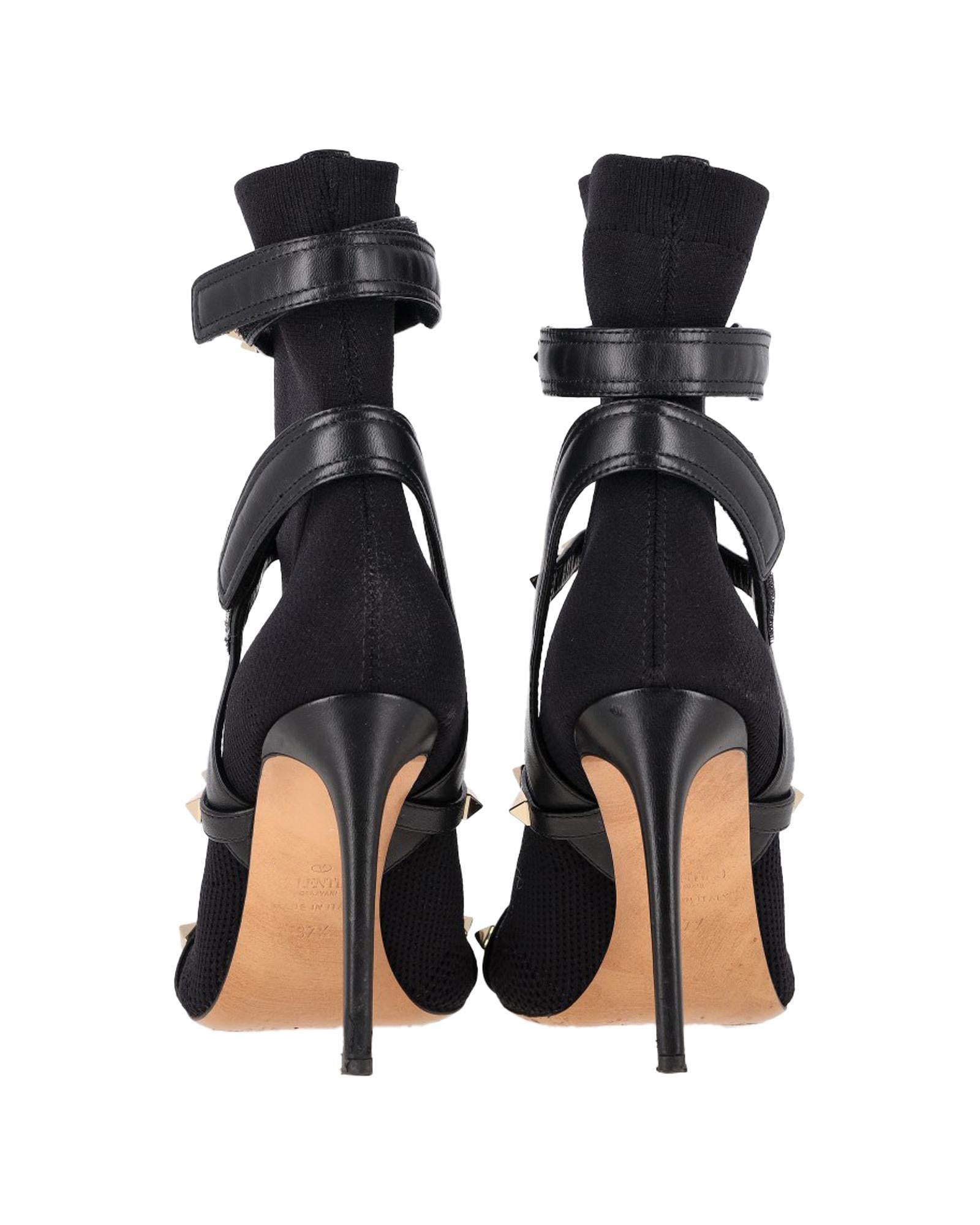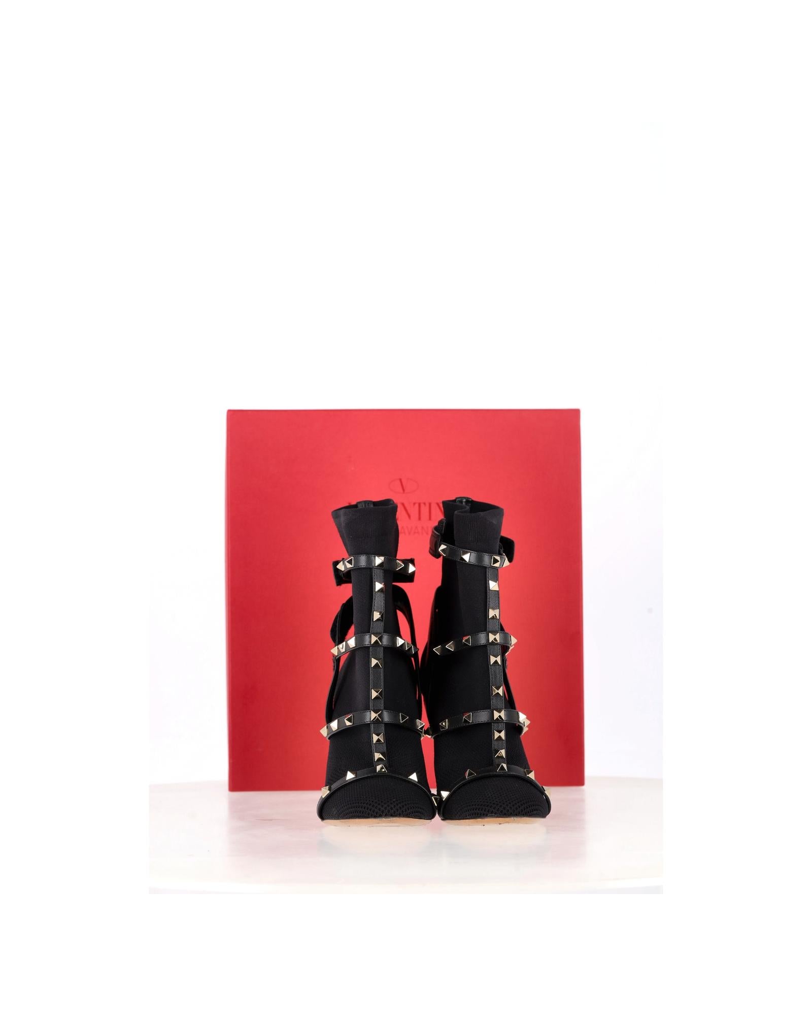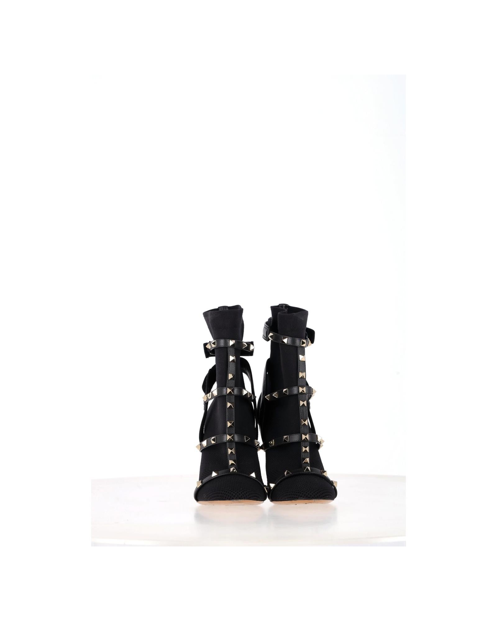 - Valentino Knit Rockstud Caged Boots in Black Leather