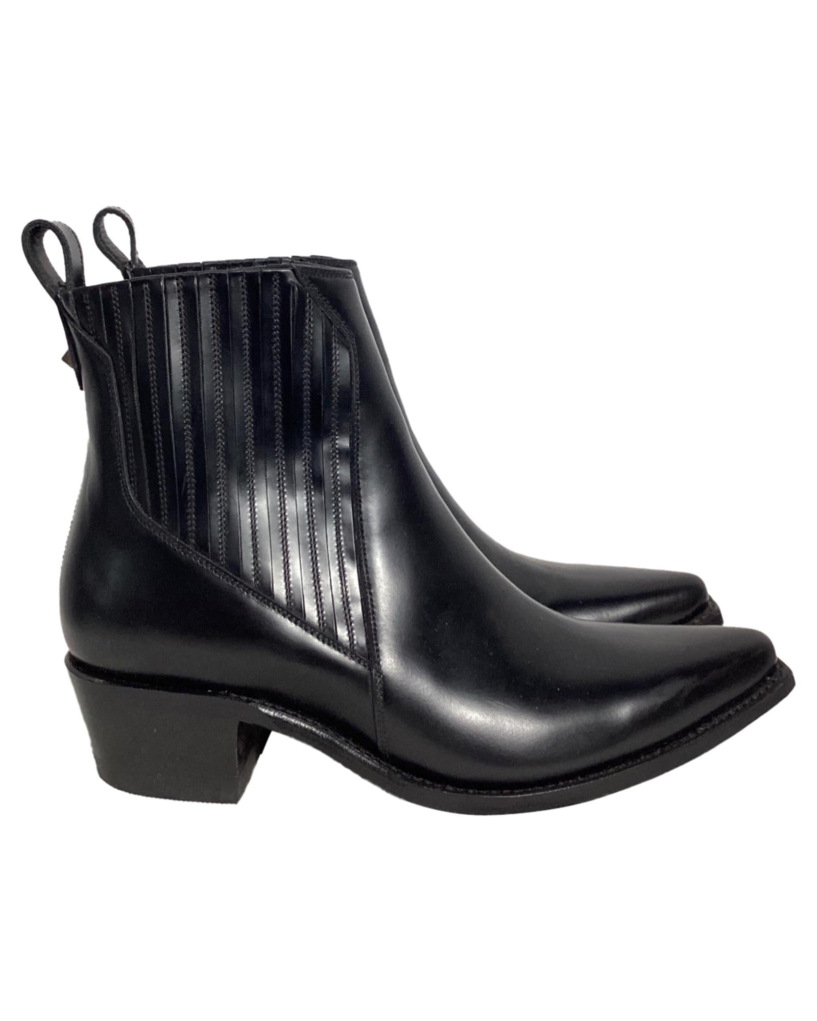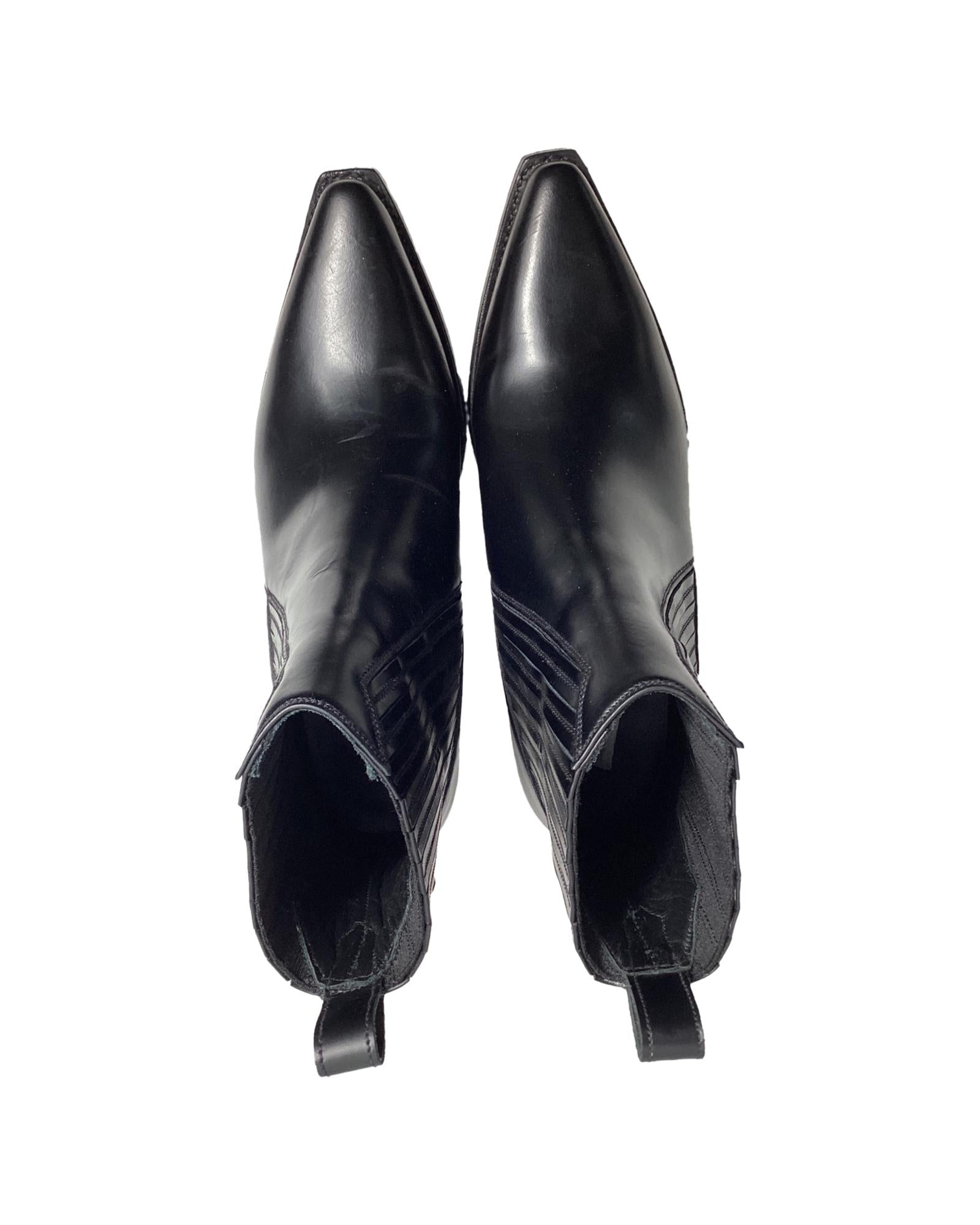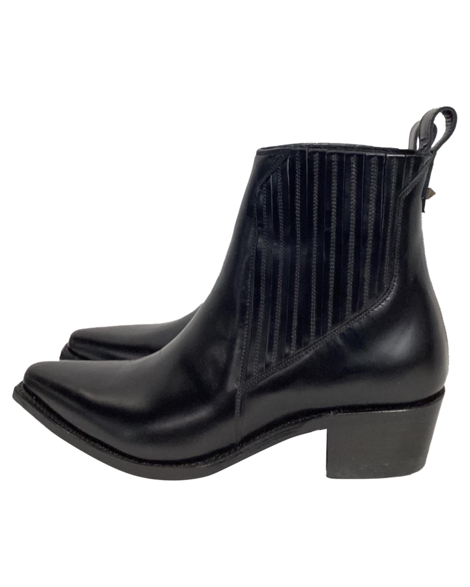 - Valentino Garavani Ranch Ankle Cowboy Boots in Black Calf Leather