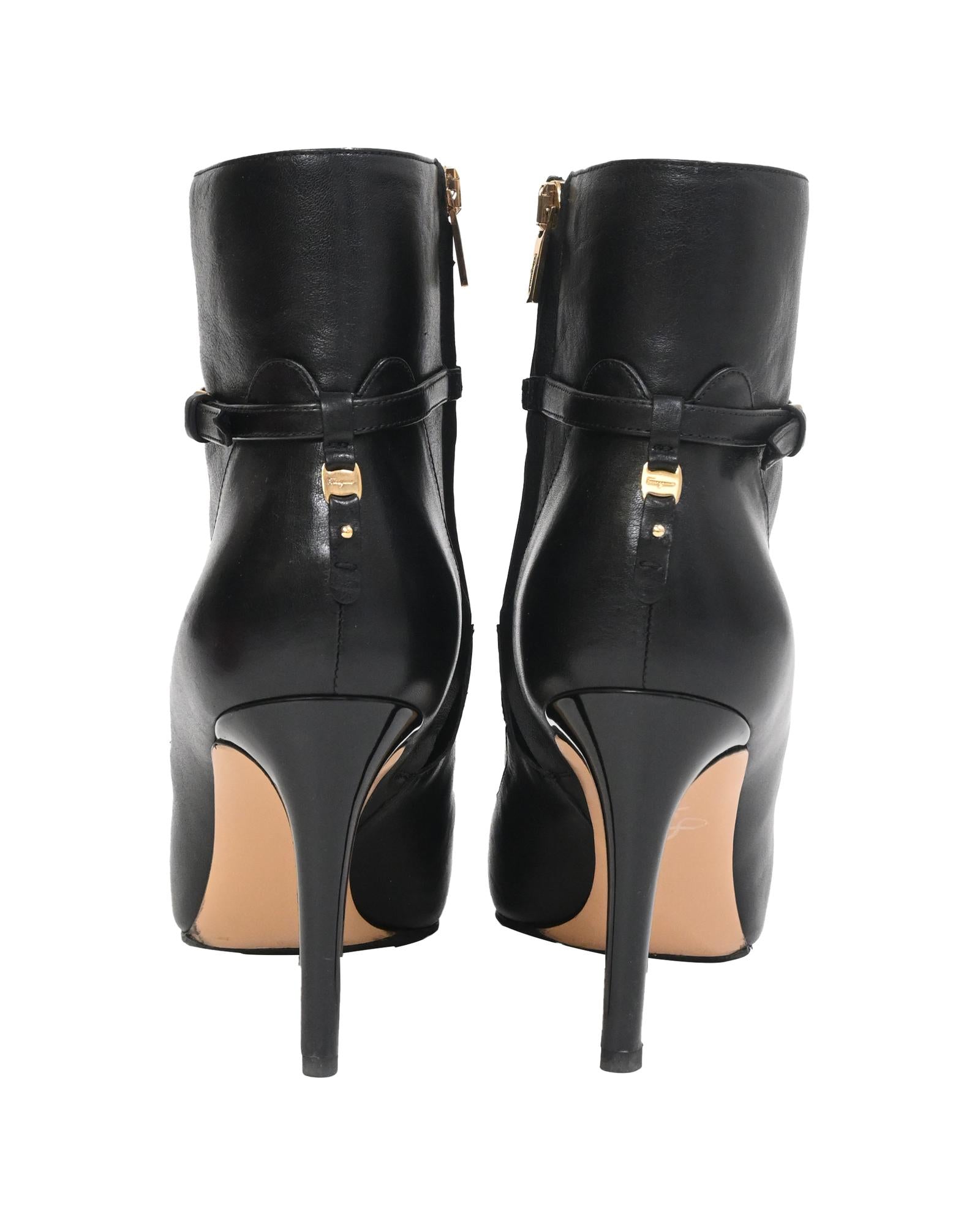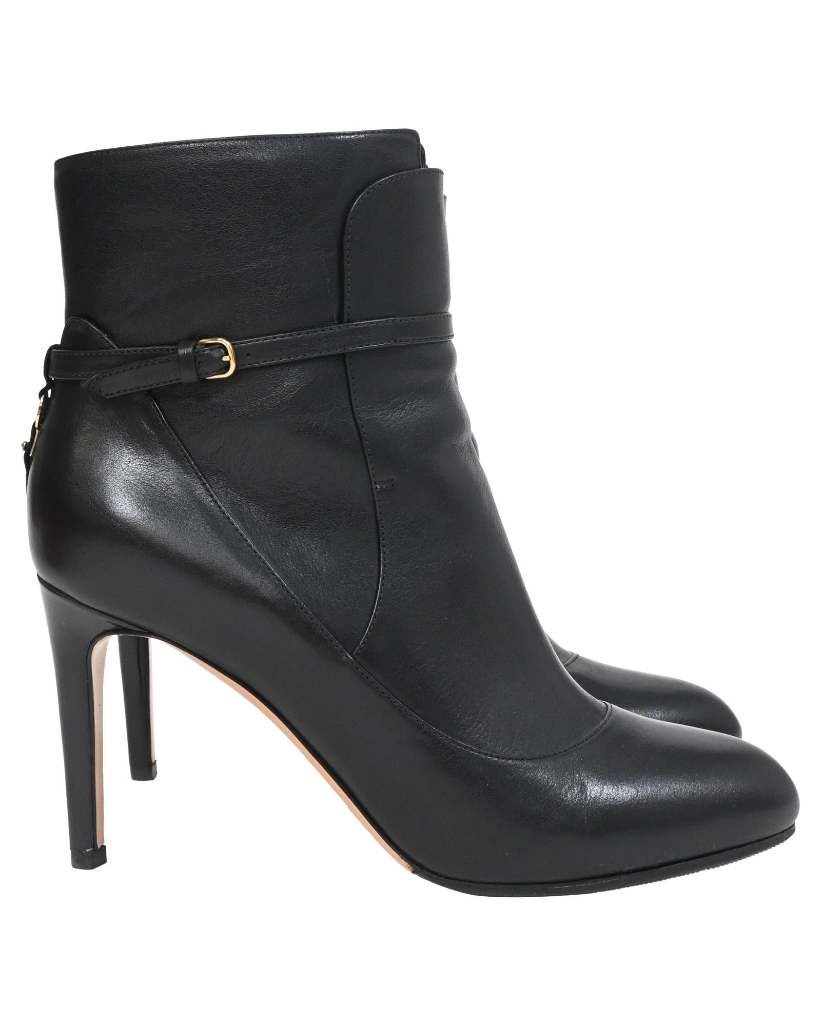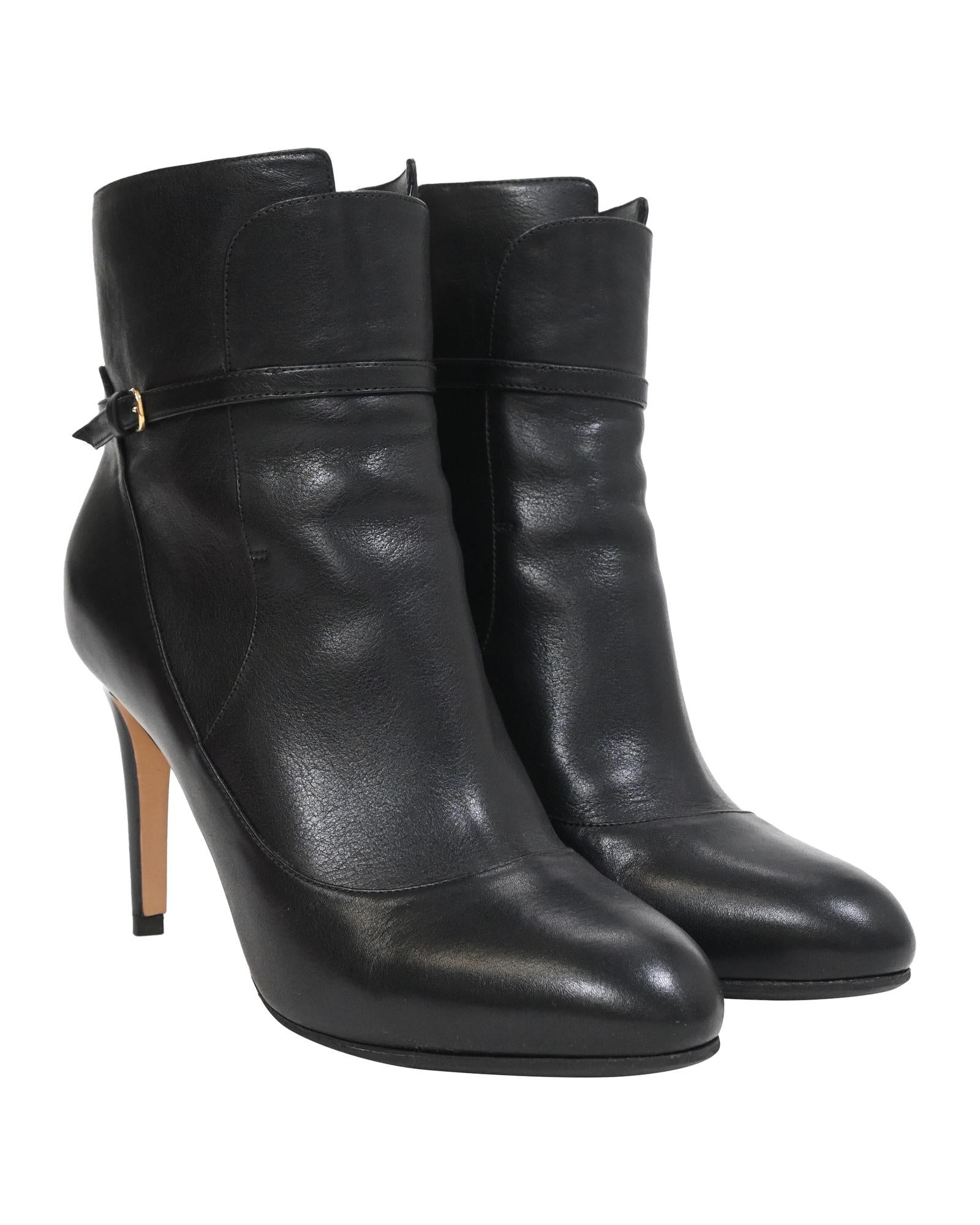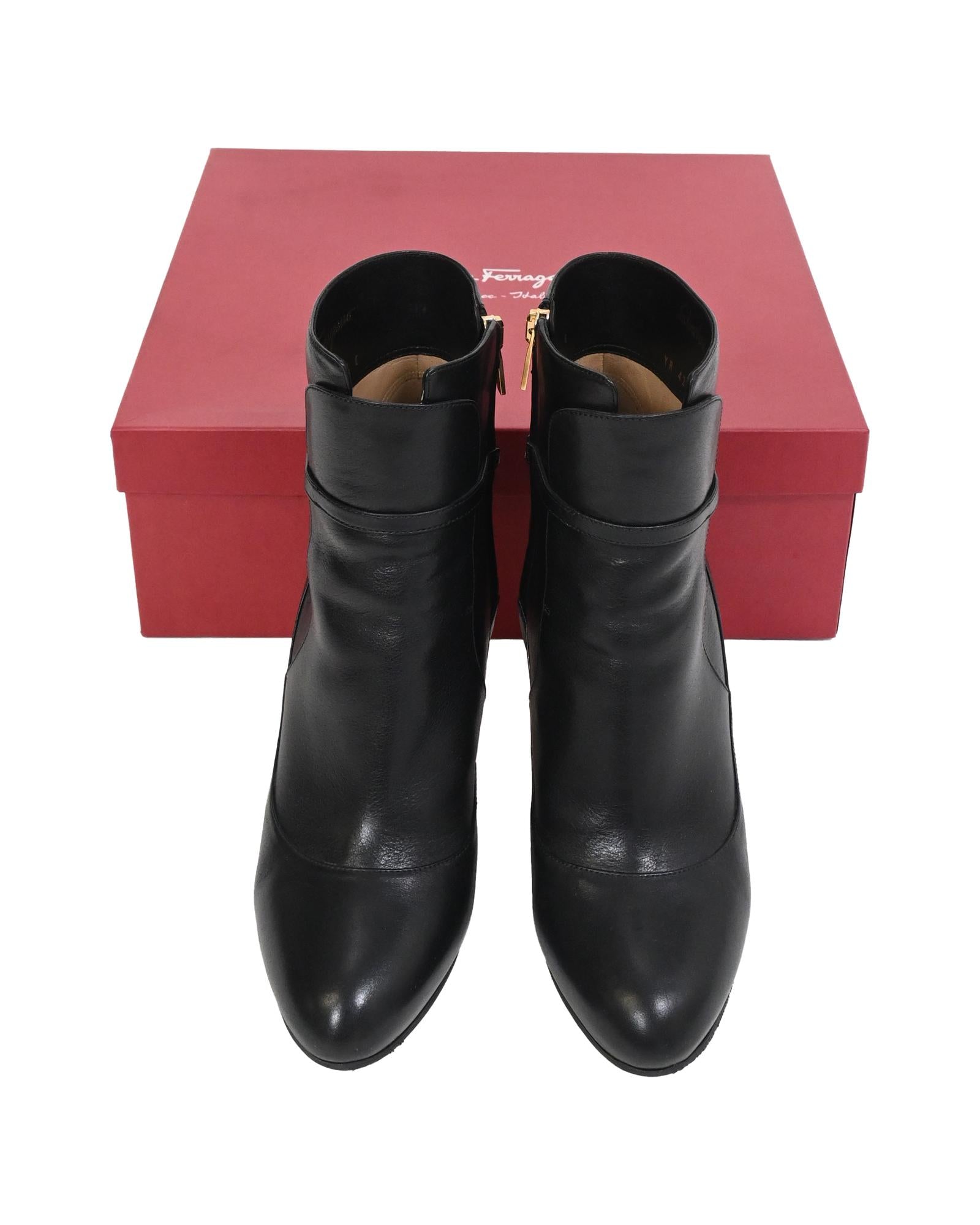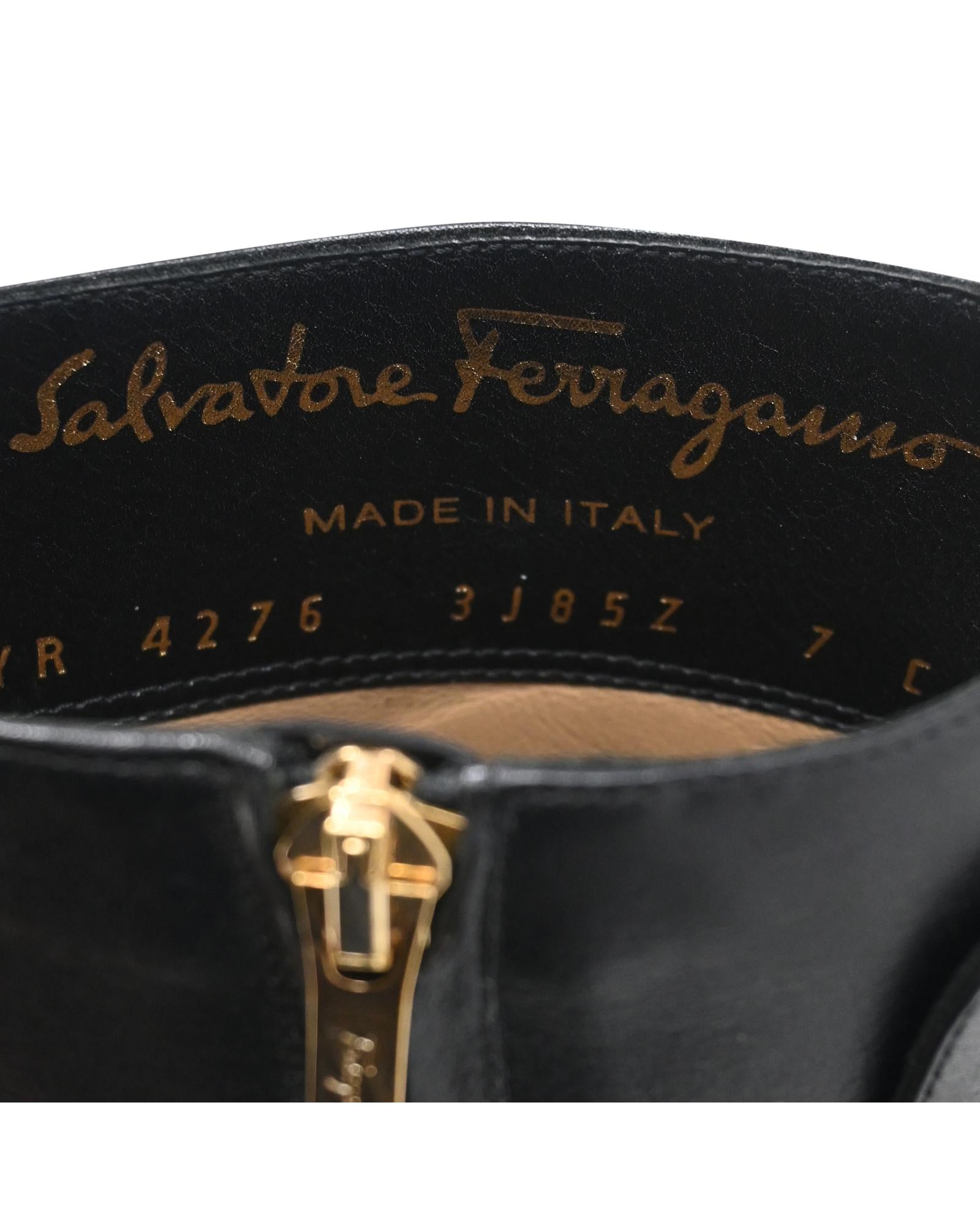 • Salvatore Ferragamo Buckle Detail Heeled ankle Boots in Black Leather