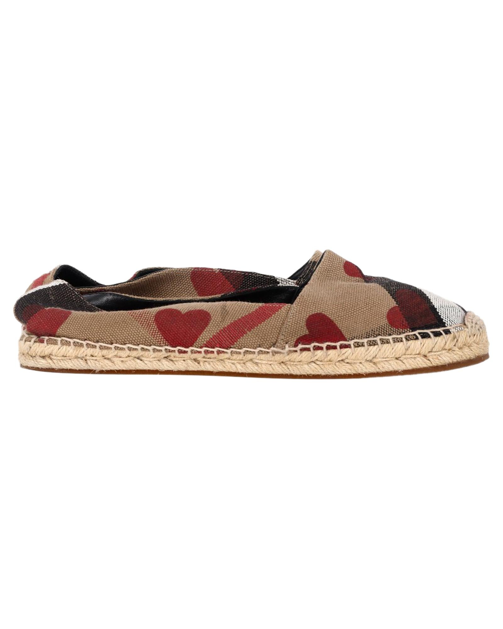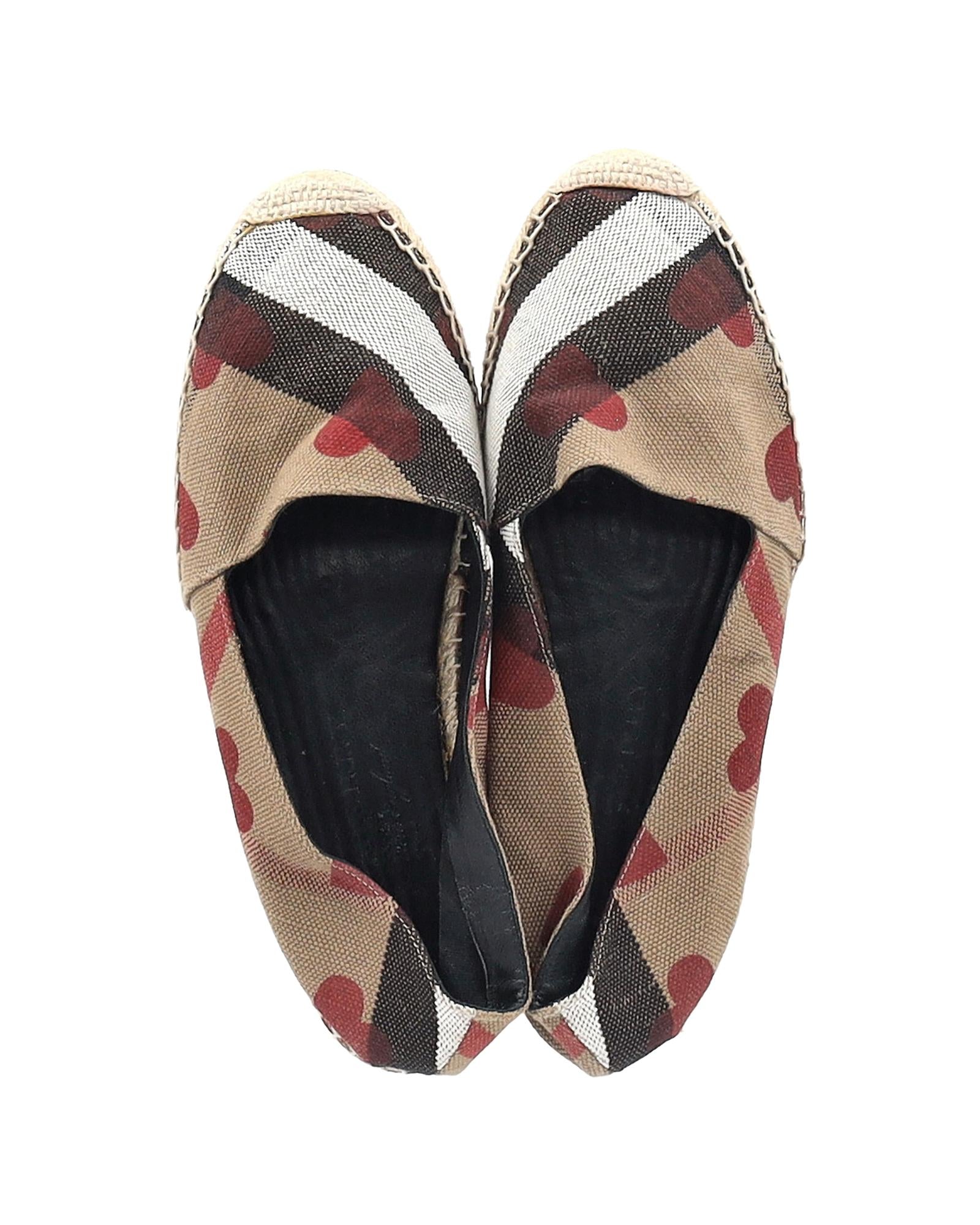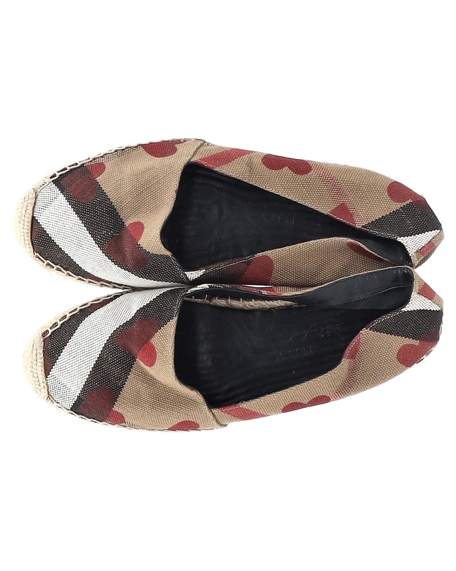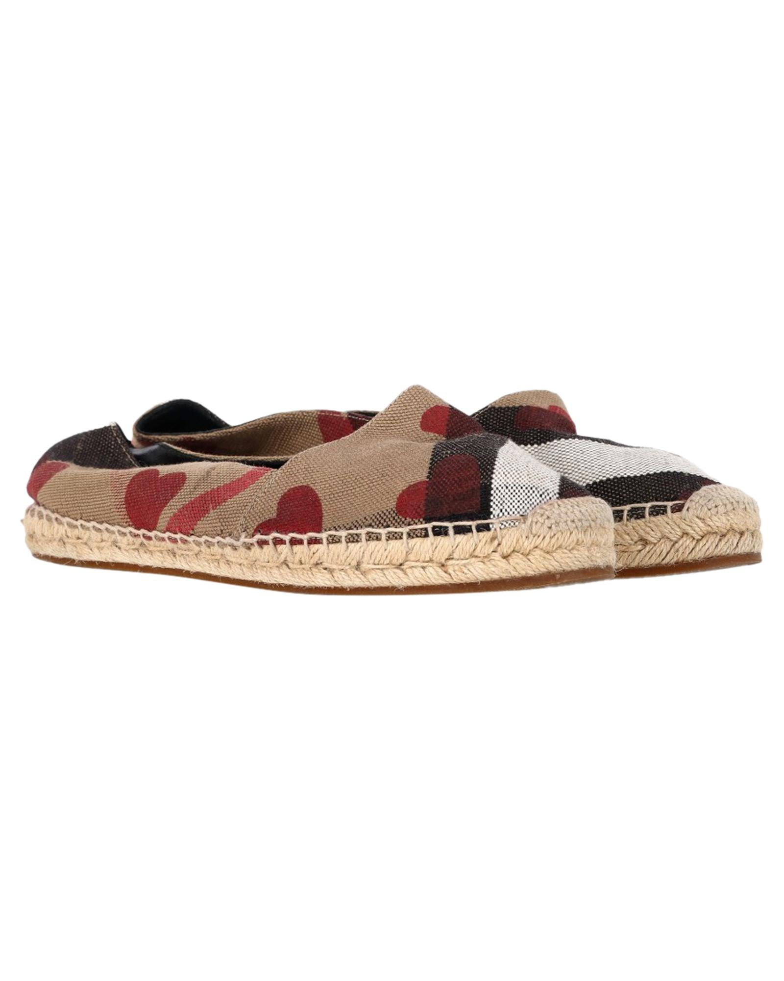 - Burberry Heart and Check Print Espadrille Flats in Brown Canvas