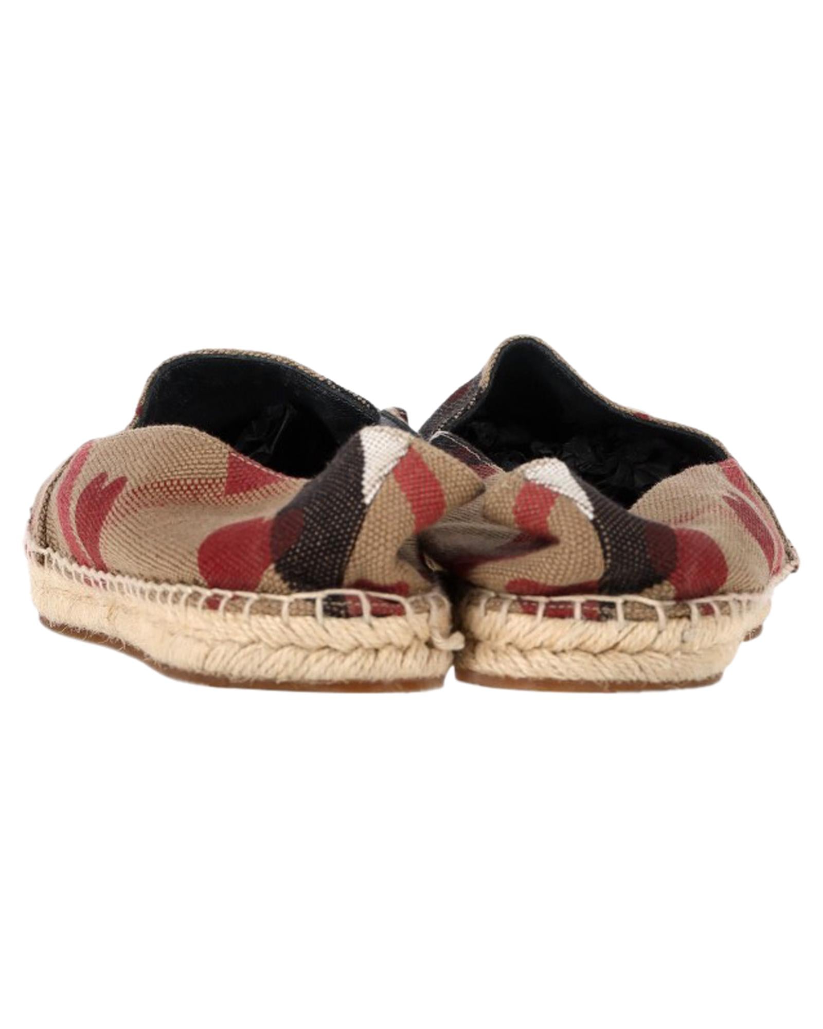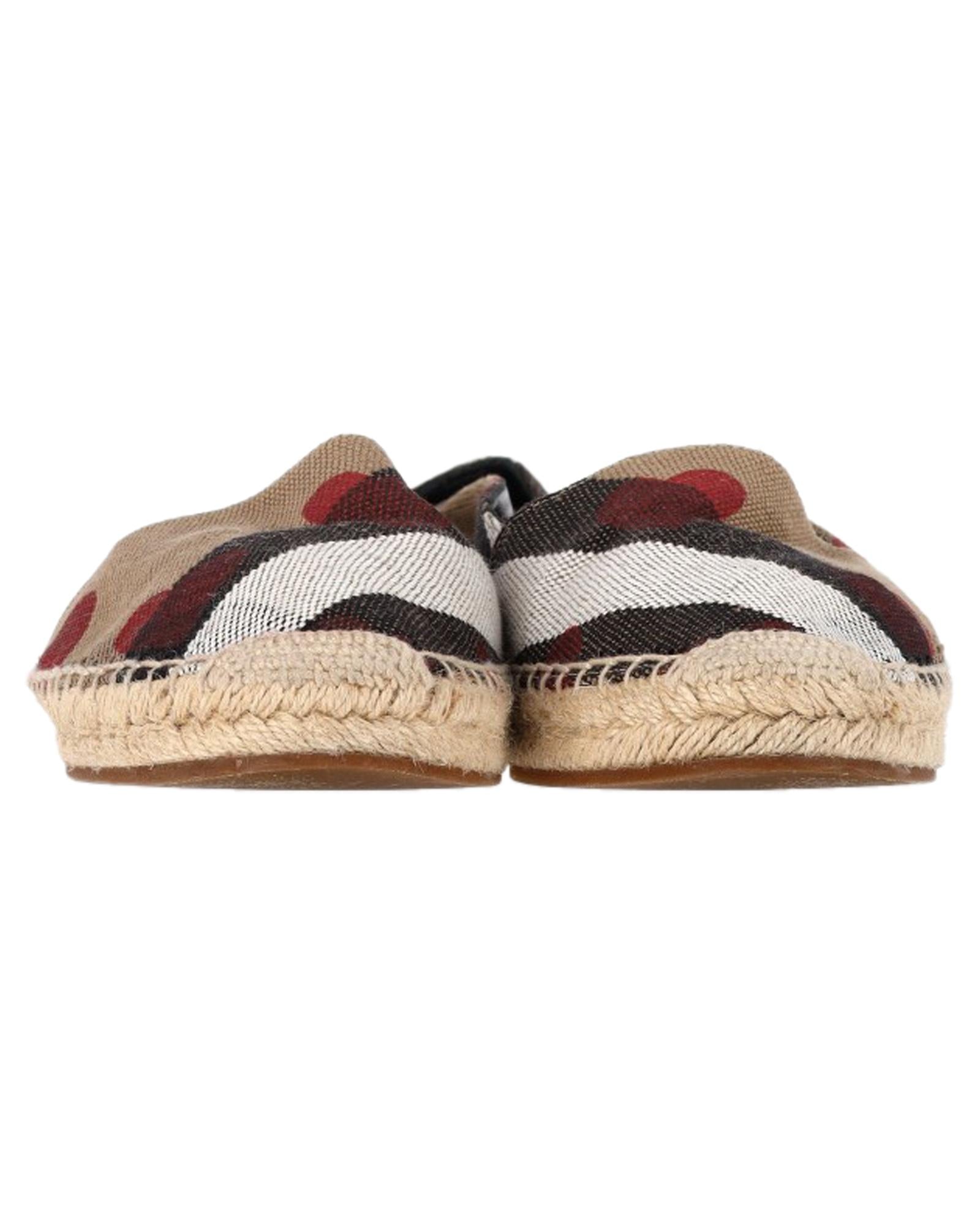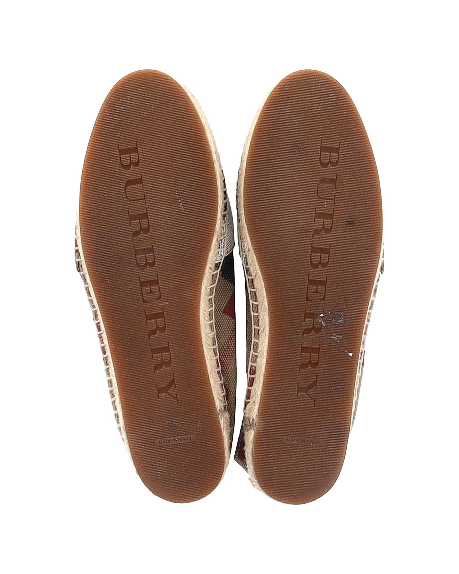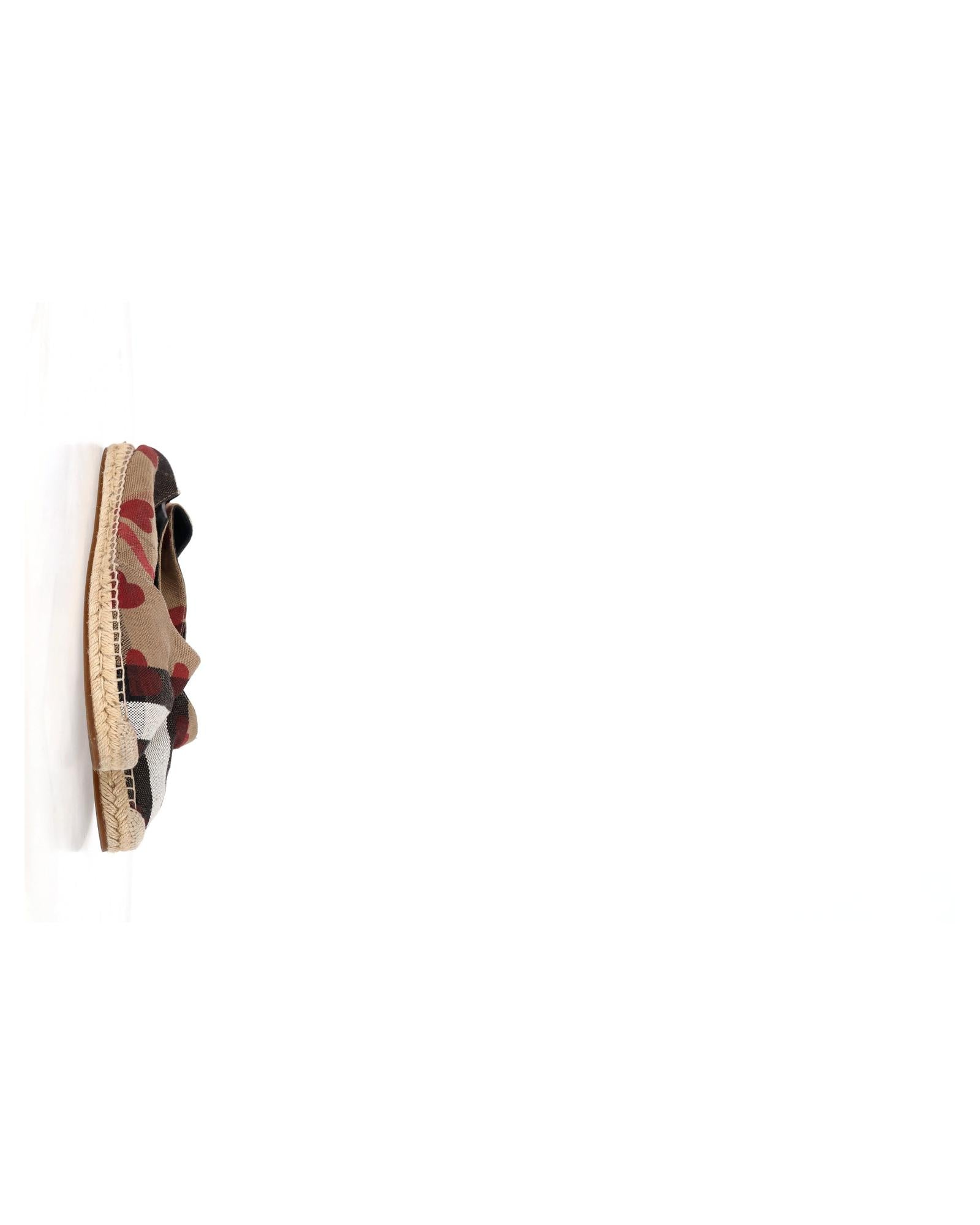 - Burberry Heart and Check Print Espadrille Flats in Brown Canvas