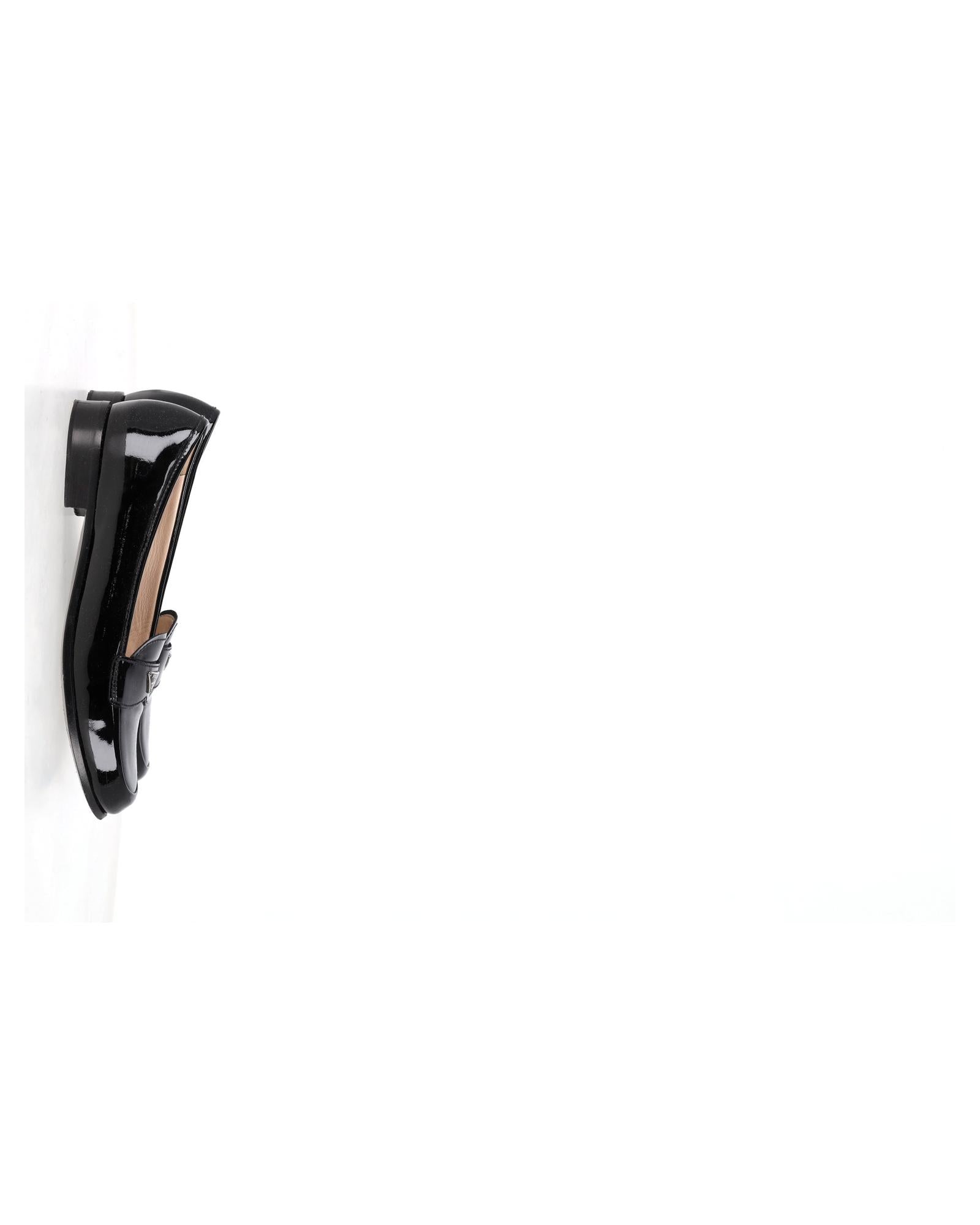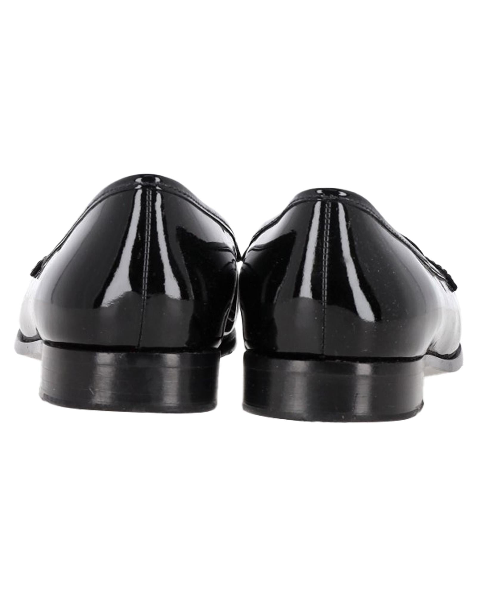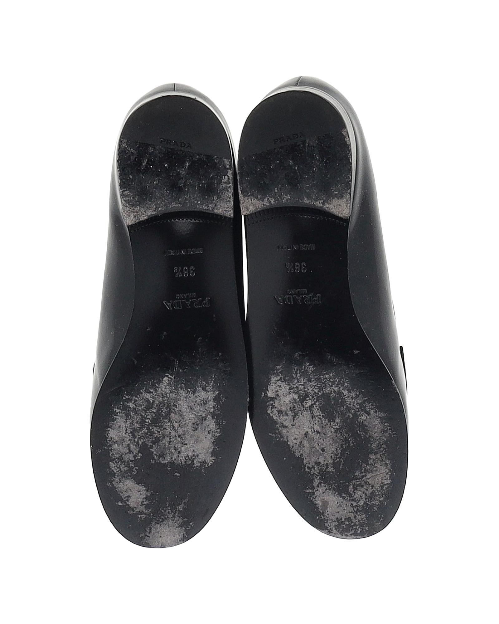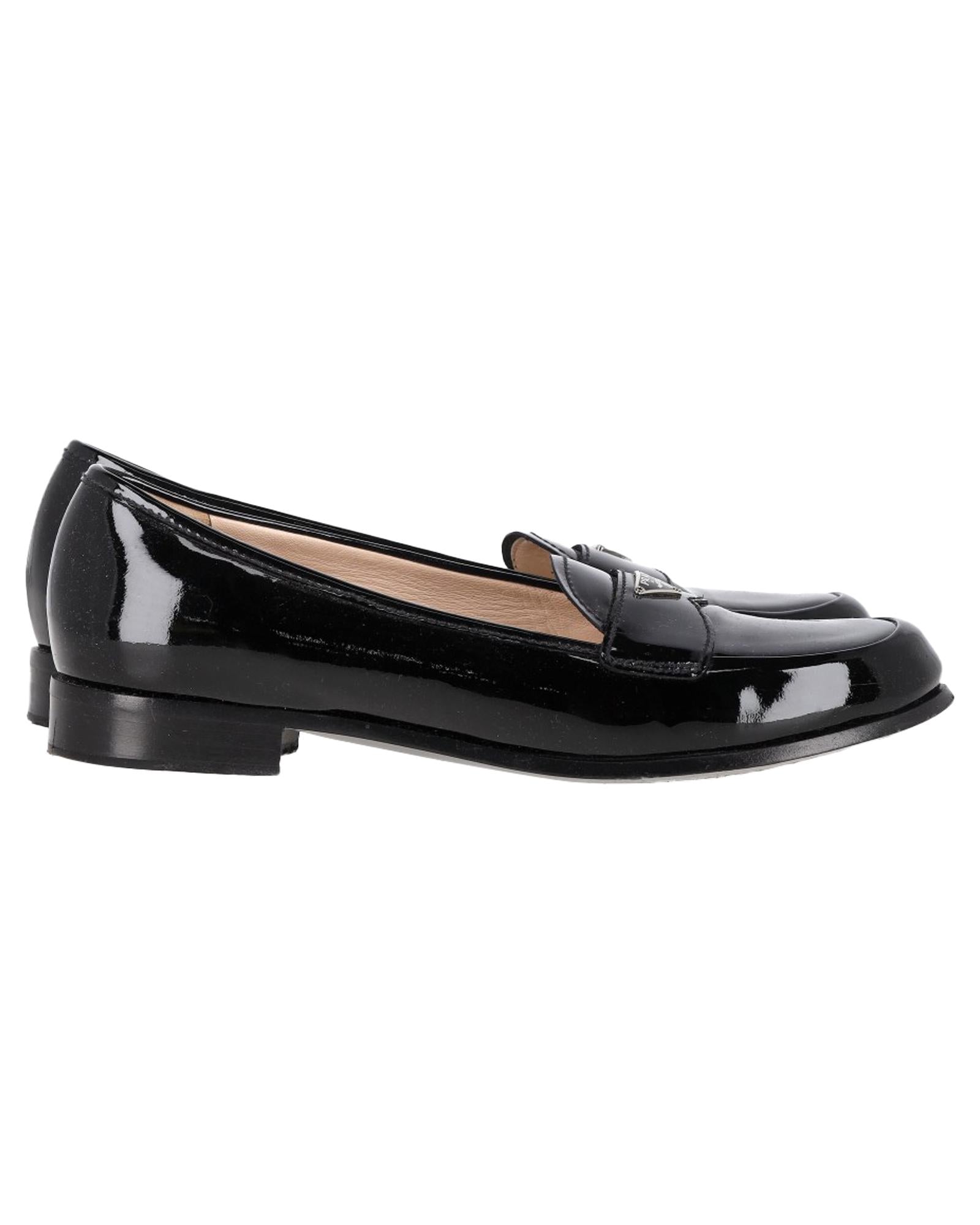- Prada Logo Plaque Loafers in Black Patent Leather