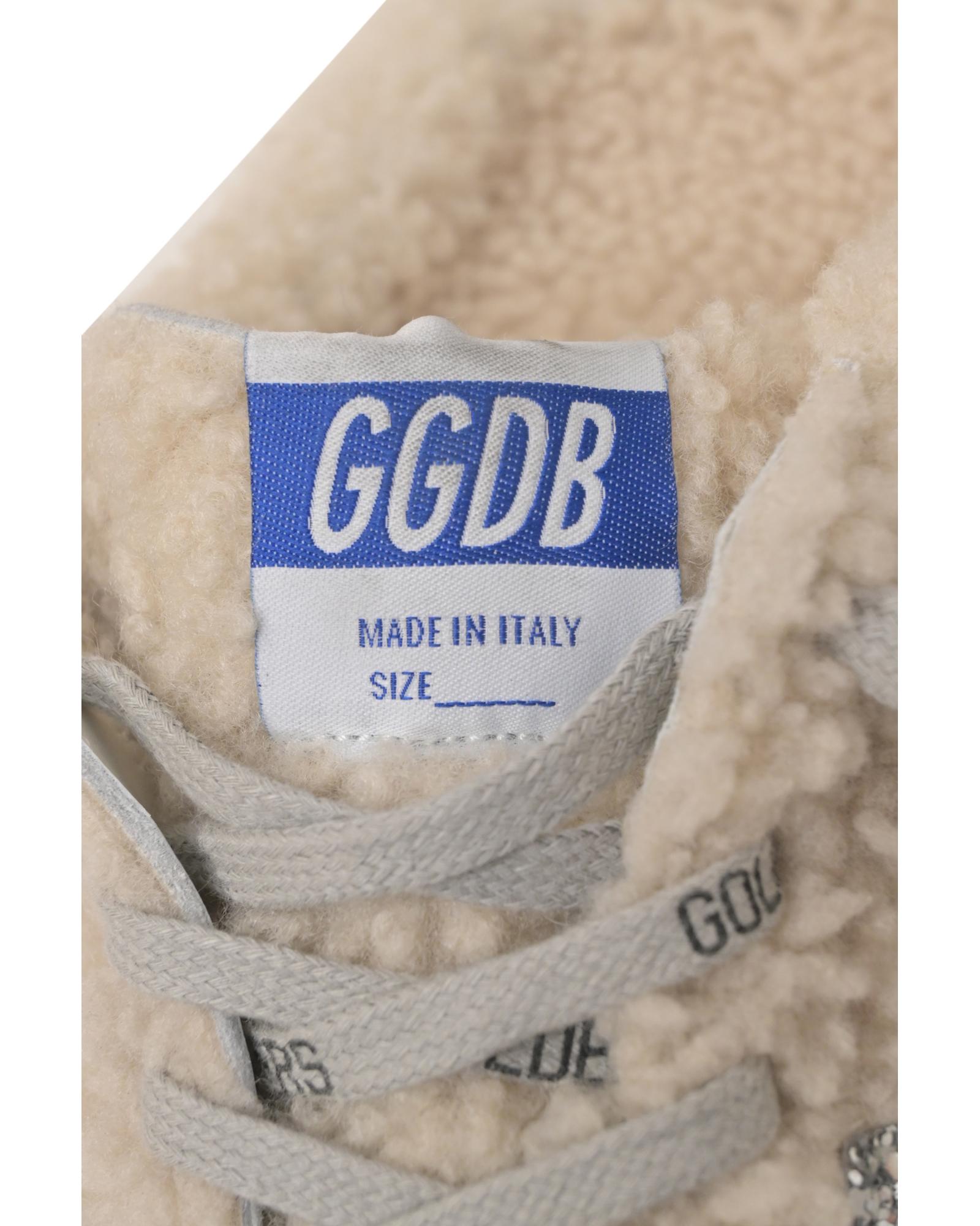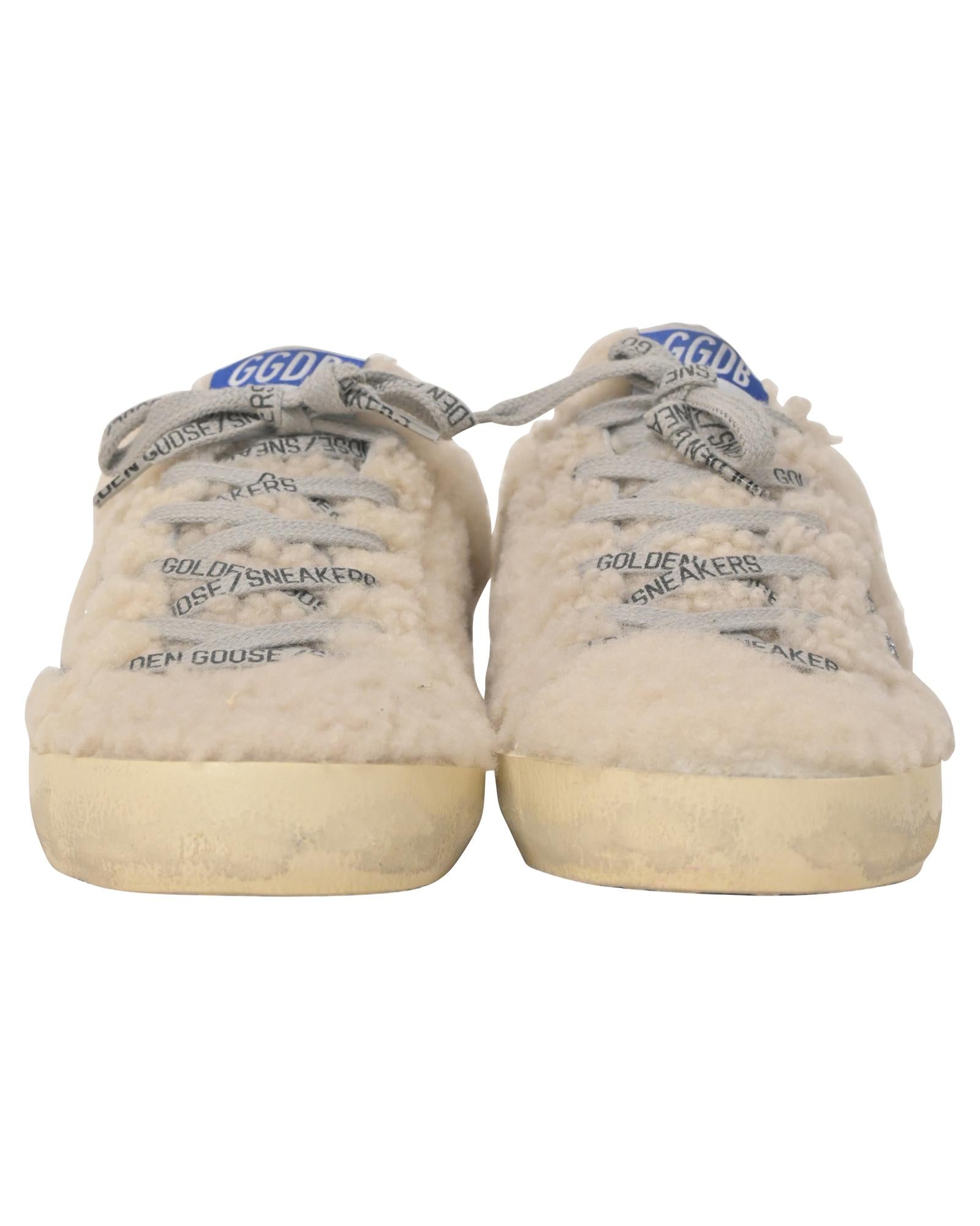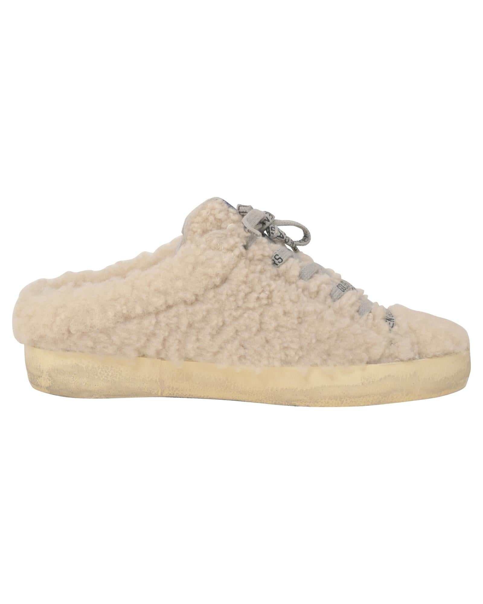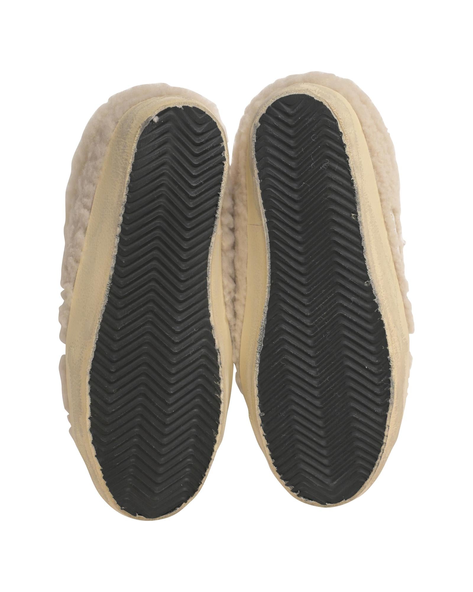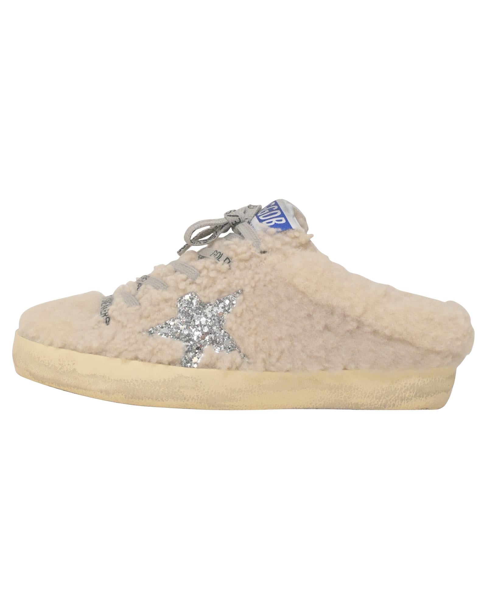 • Golden Goose Superstar Sabot Distressed Glittered Shearling Slip