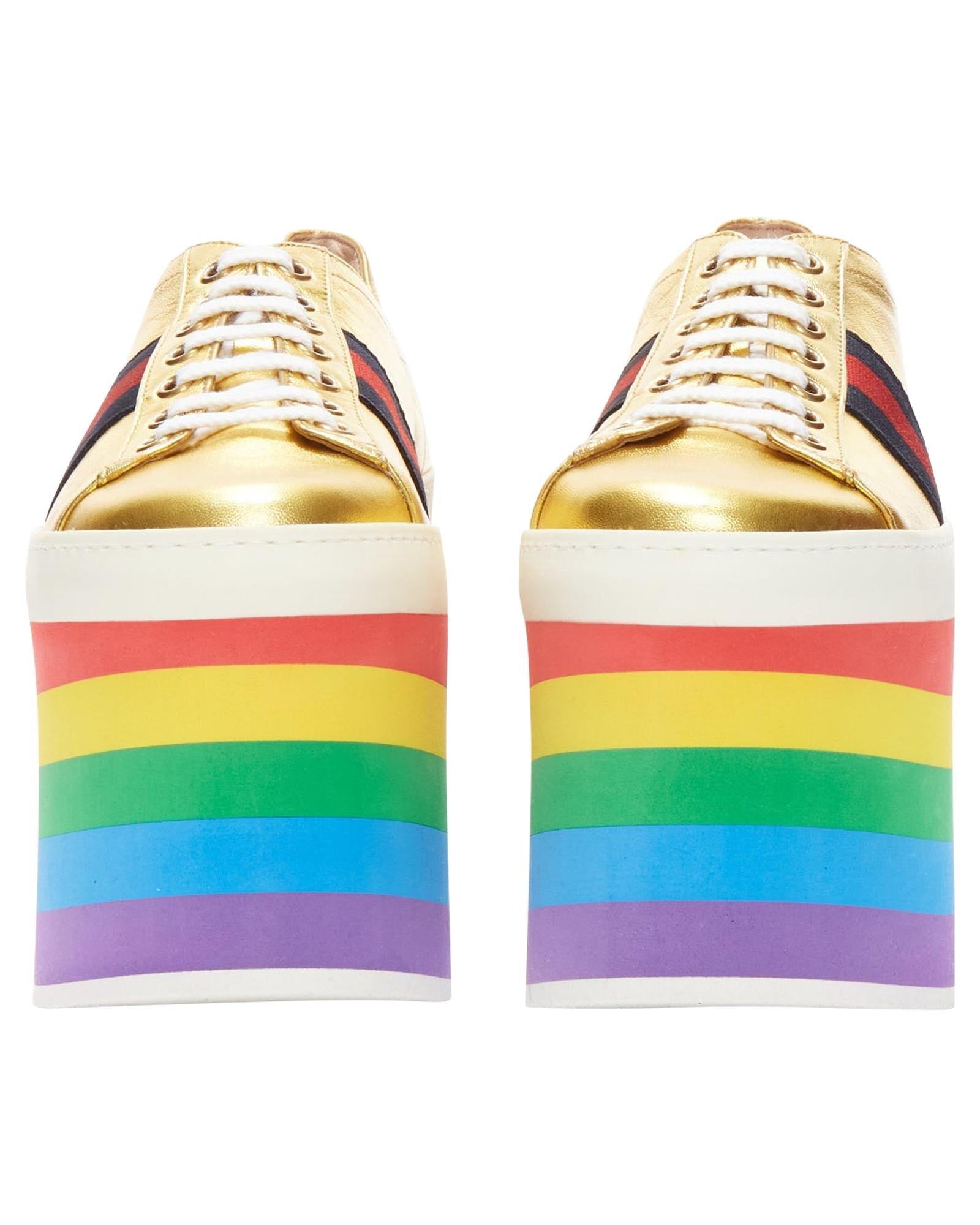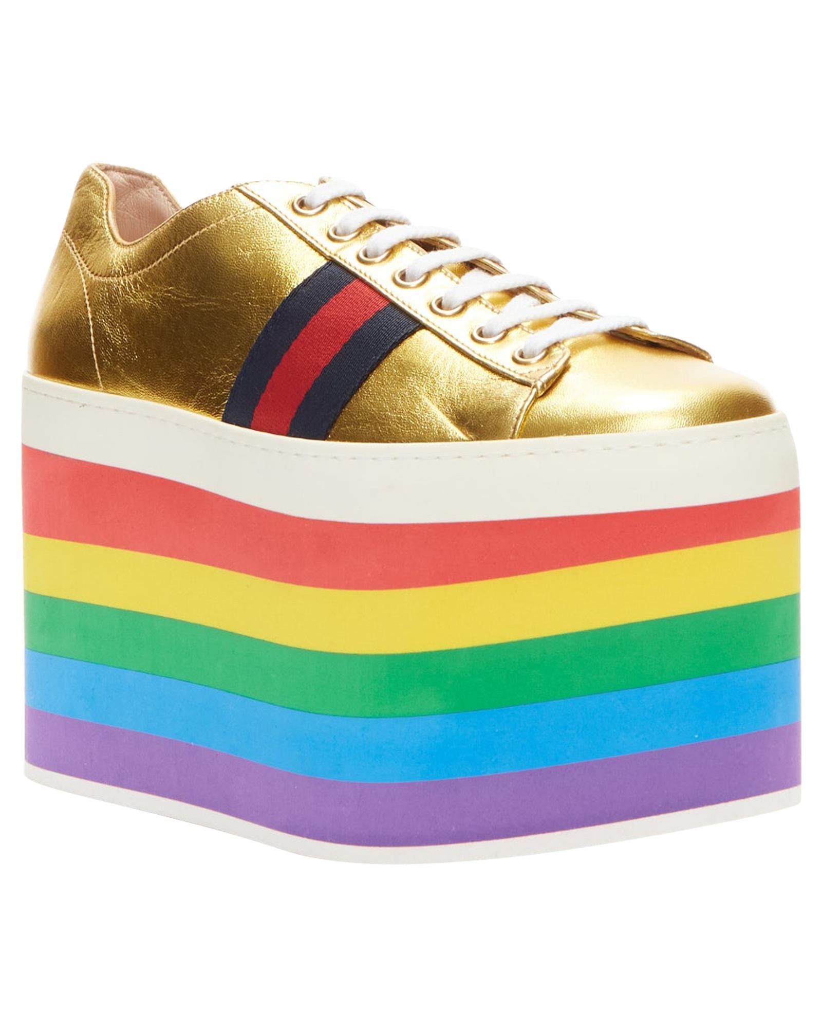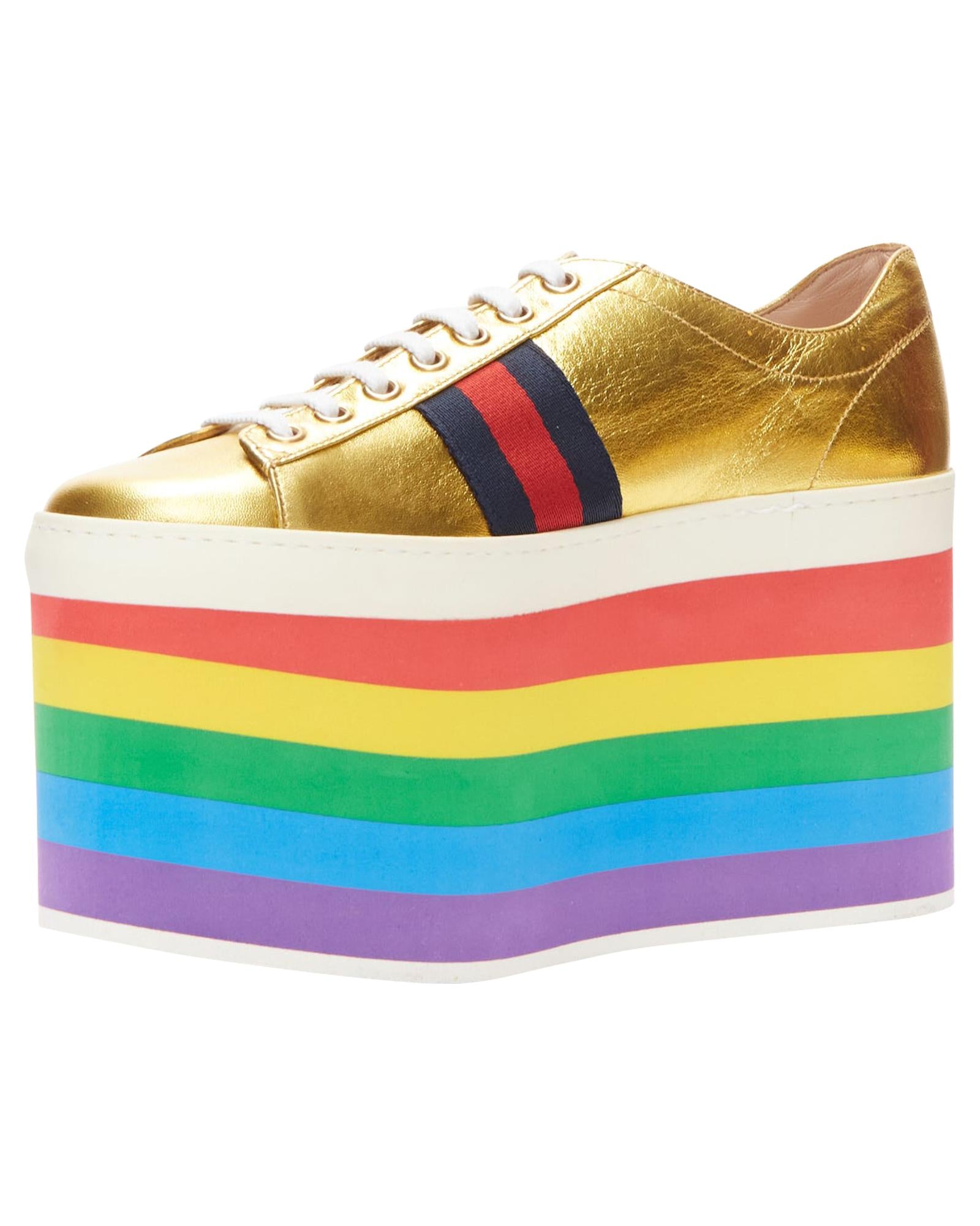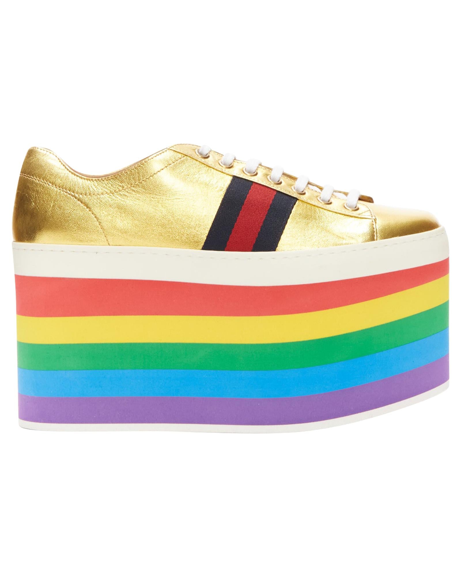 Pre-owned Leather Platform Sneakers with Lace-Up Closure and Rubber Sole