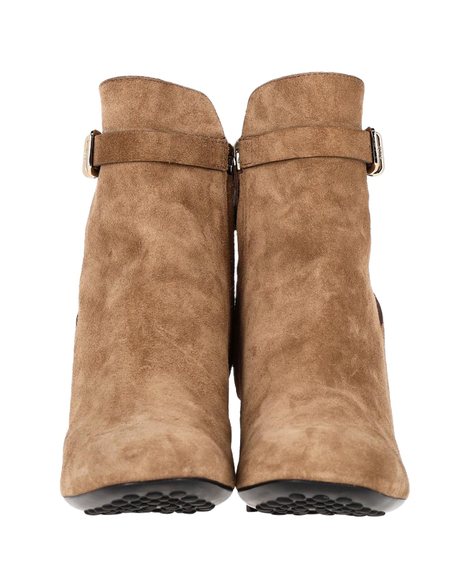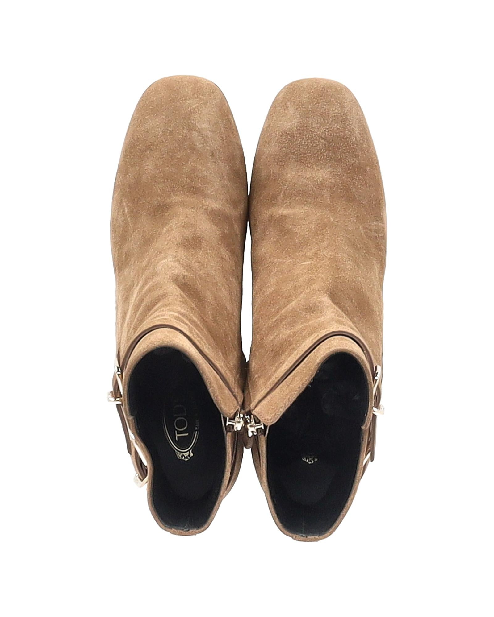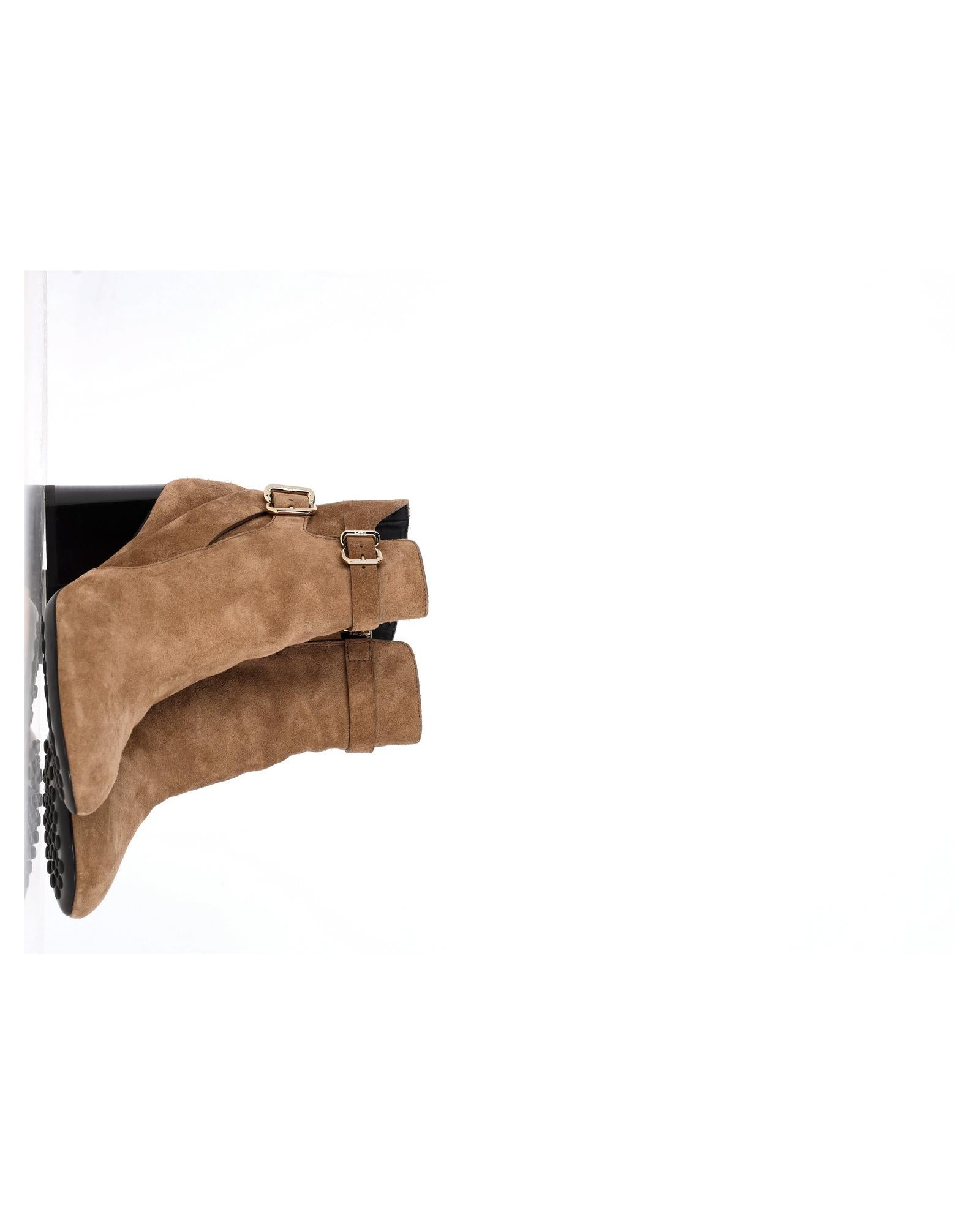 - Tods Buckled Ankle Boots in Brown Suede