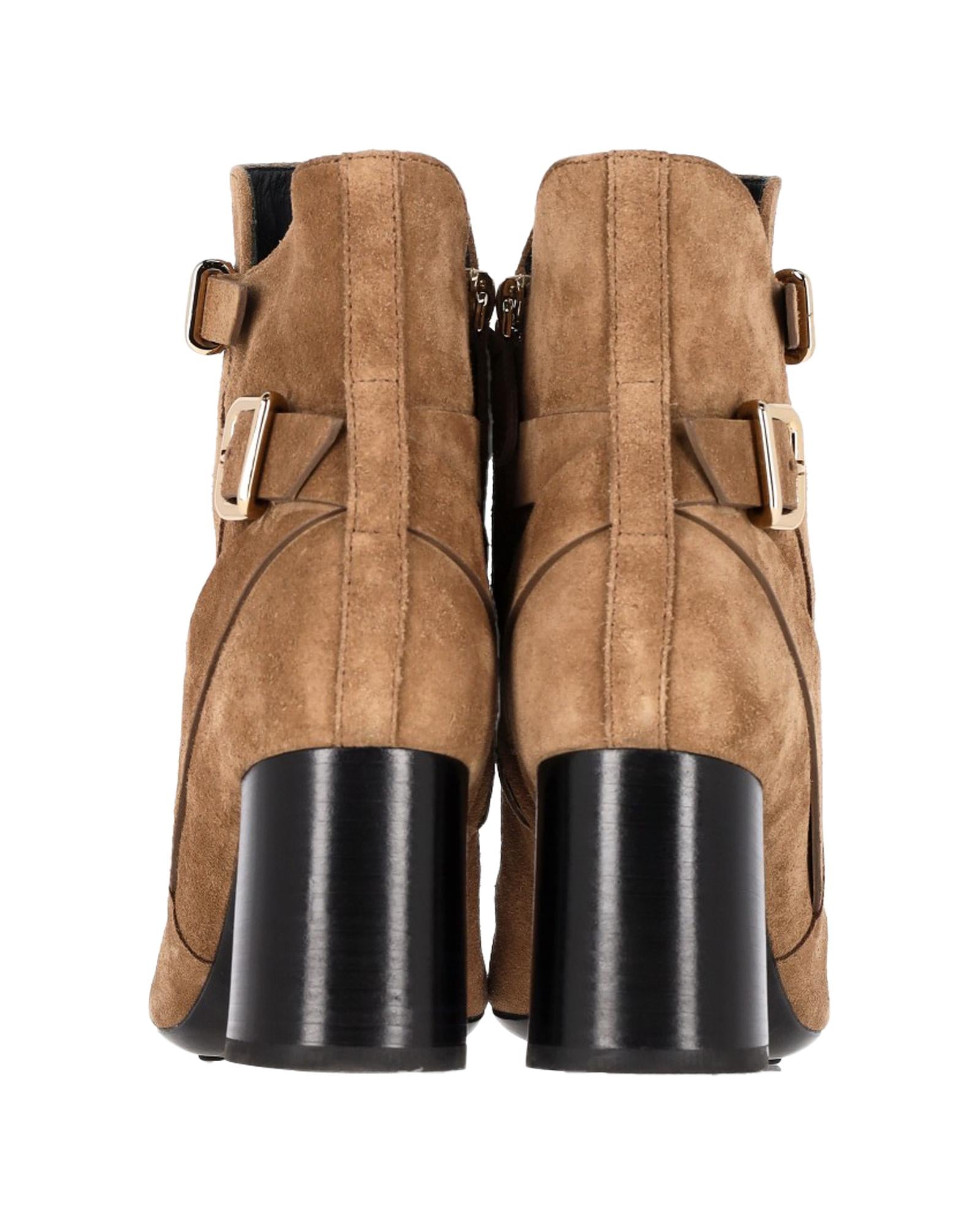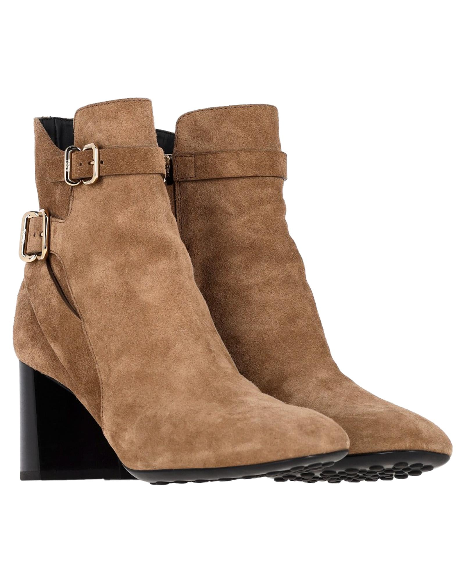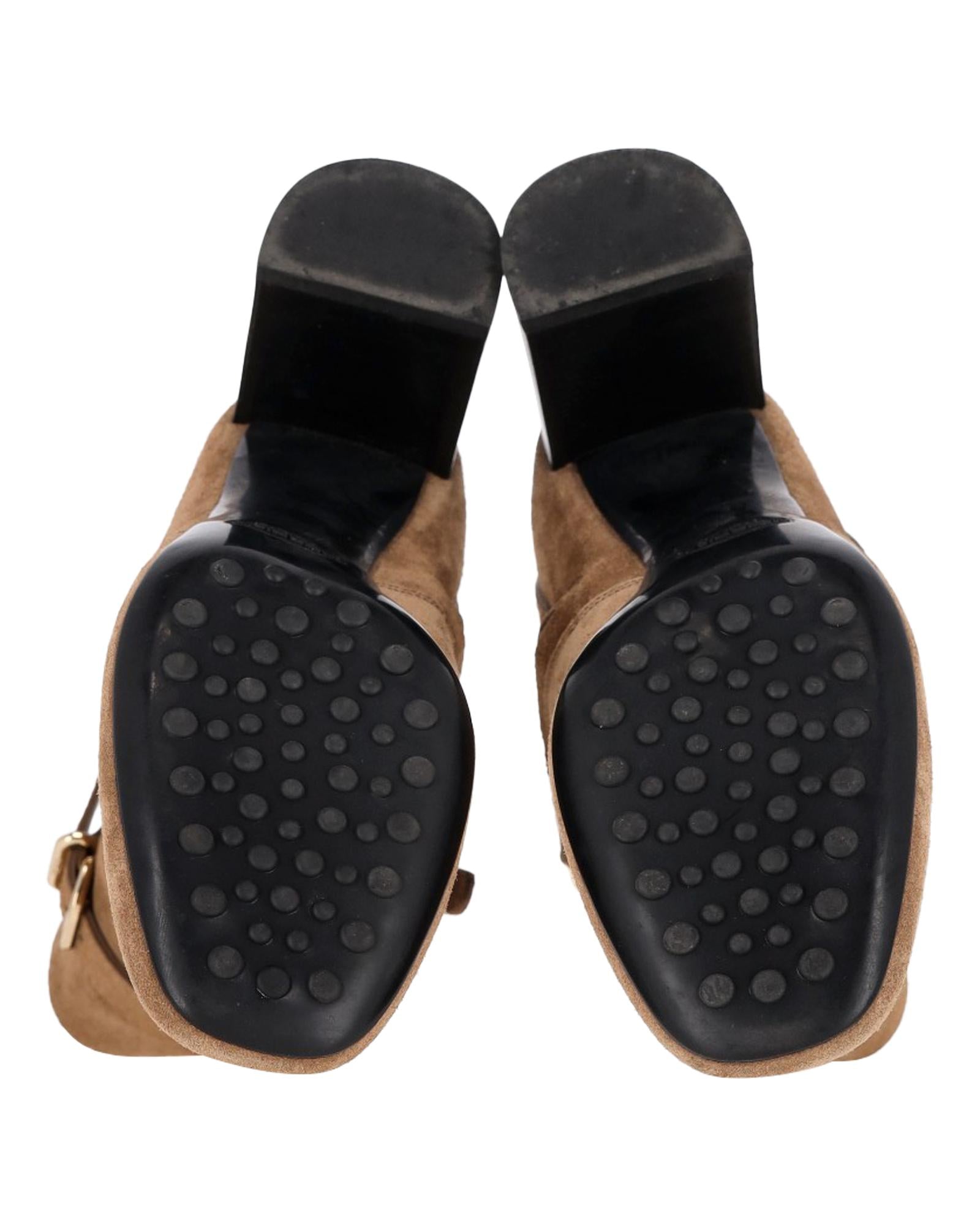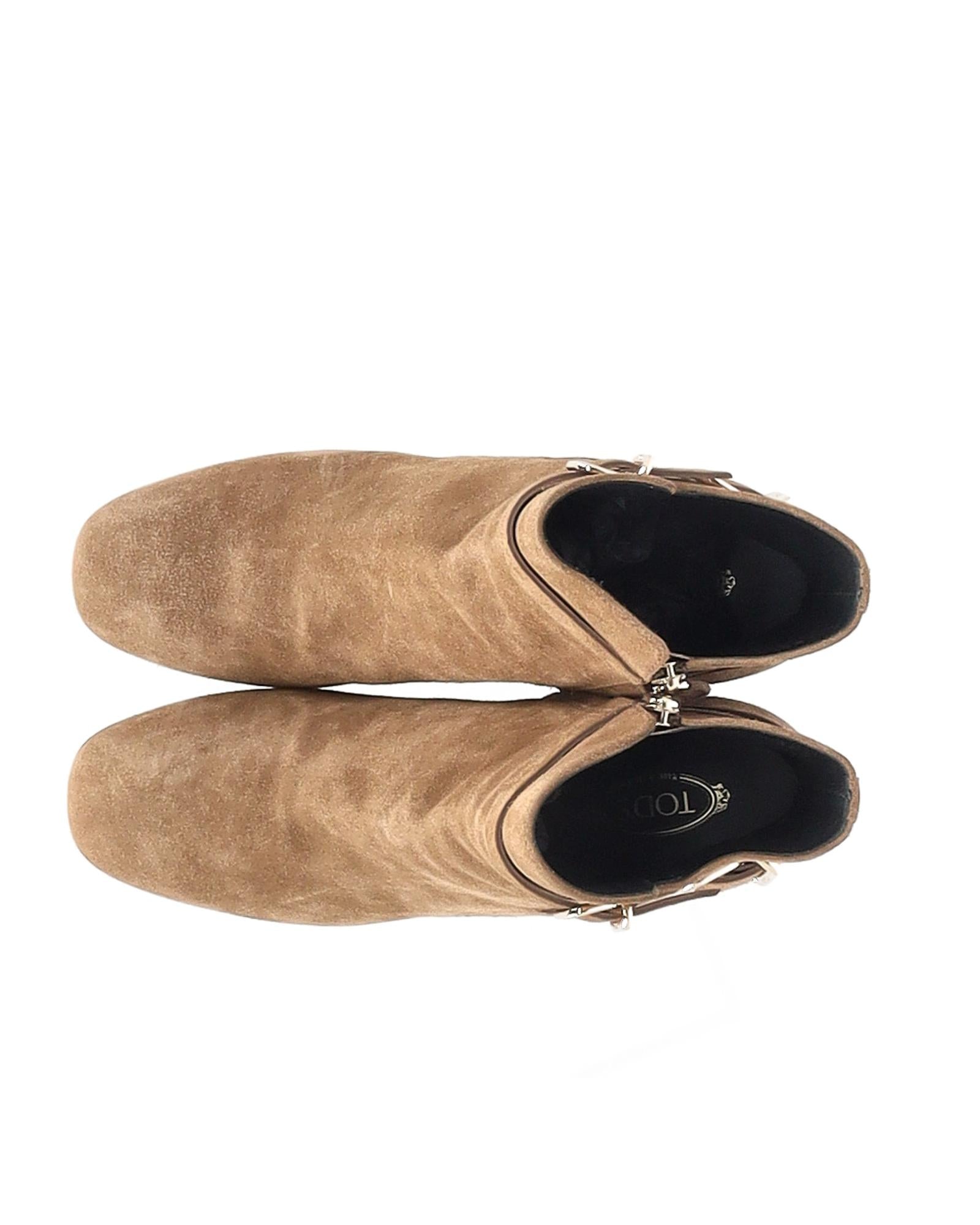 - Tods Buckled Ankle Boots in Brown Suede
