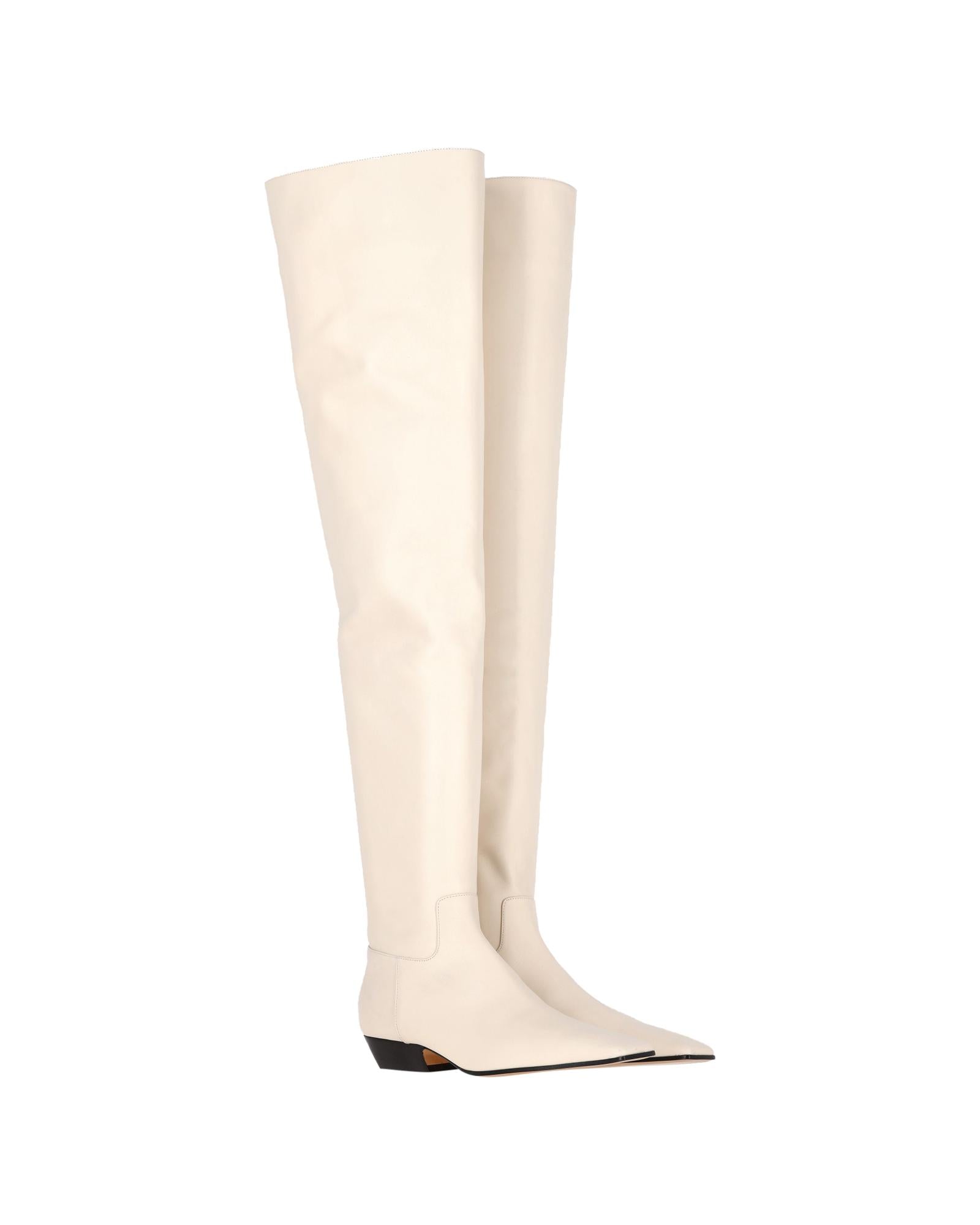• Khaite Marfa Over The Knee Boots in Cream Leather