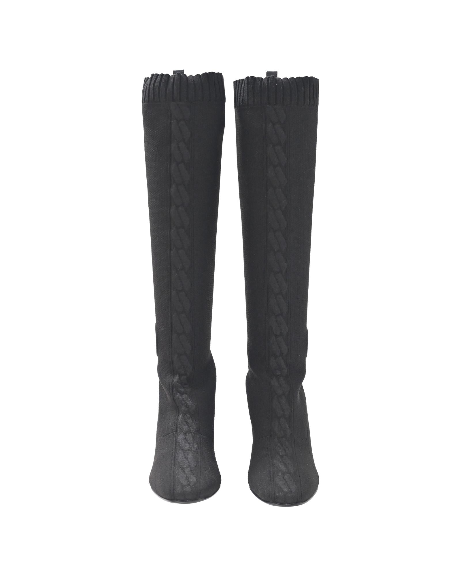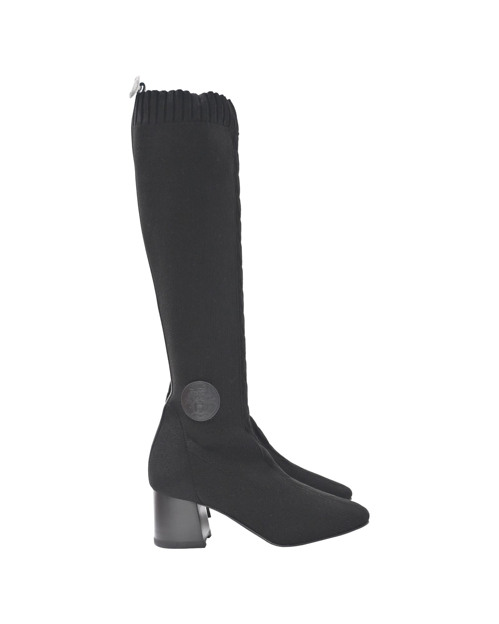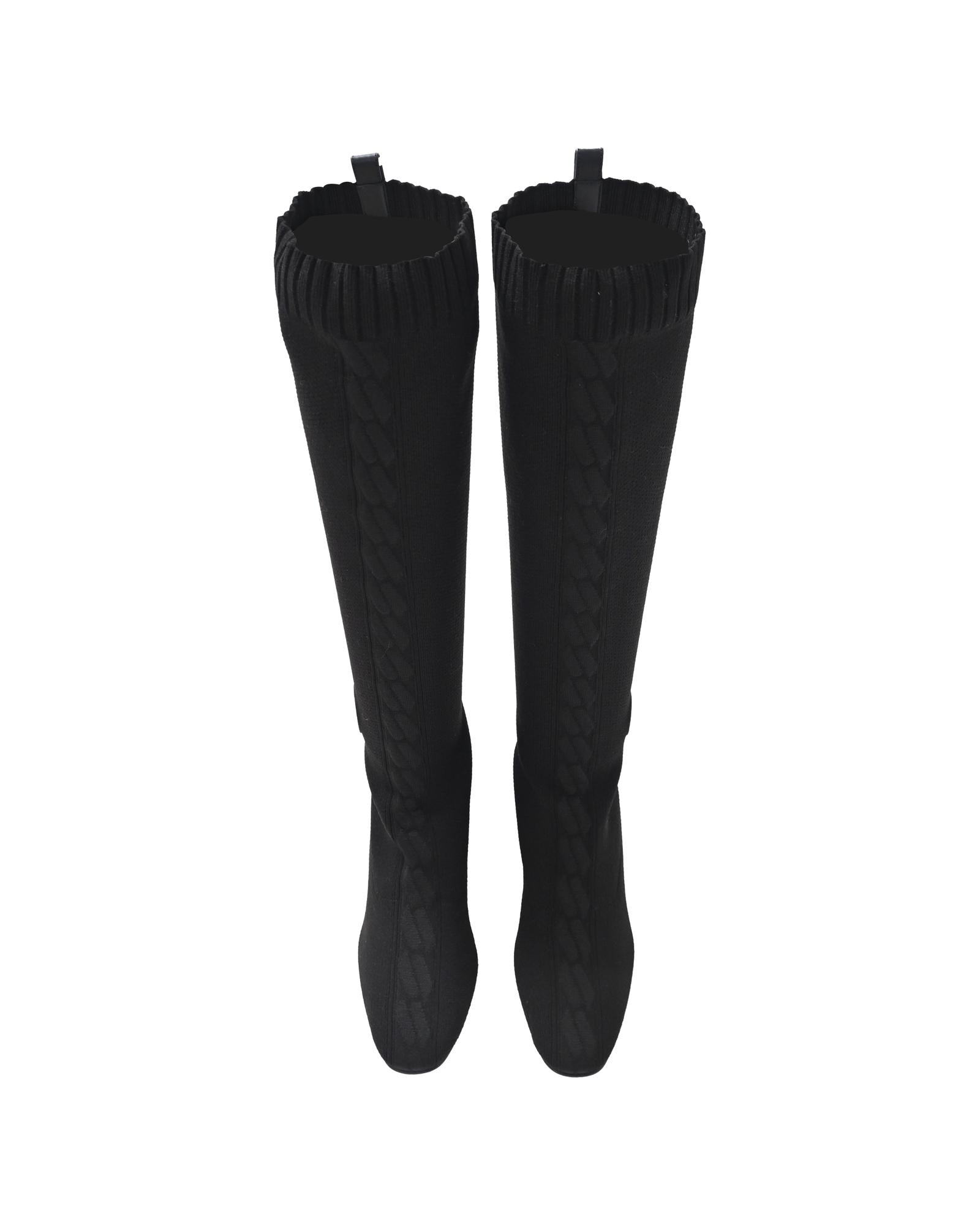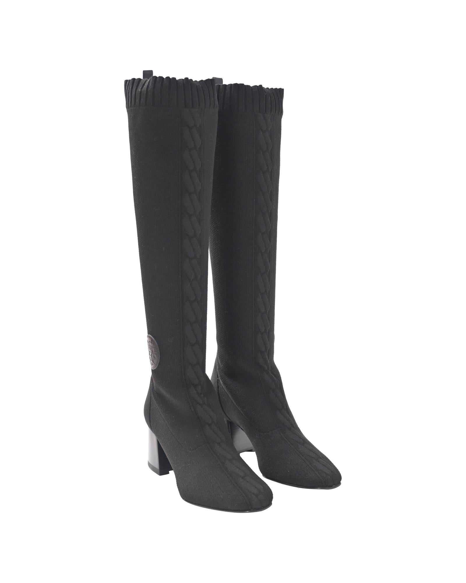 Pre-owned Elegant Heeled Tall Boots with Comfortable Sock Fit