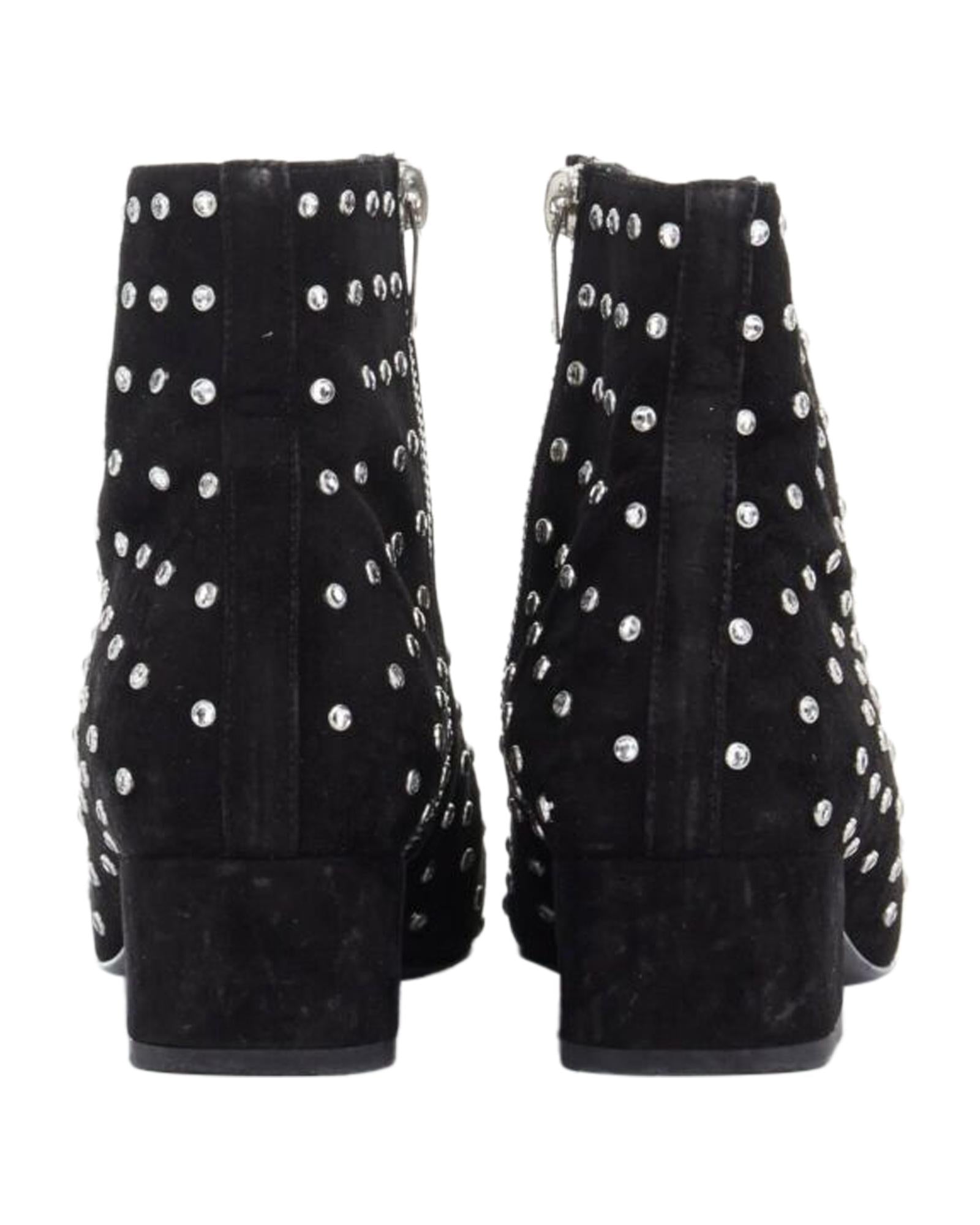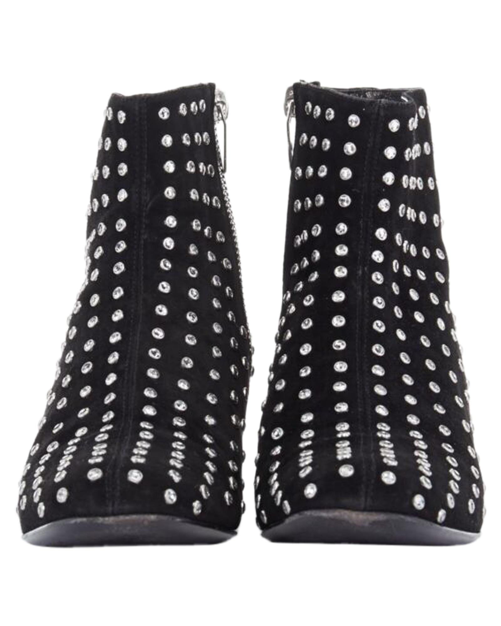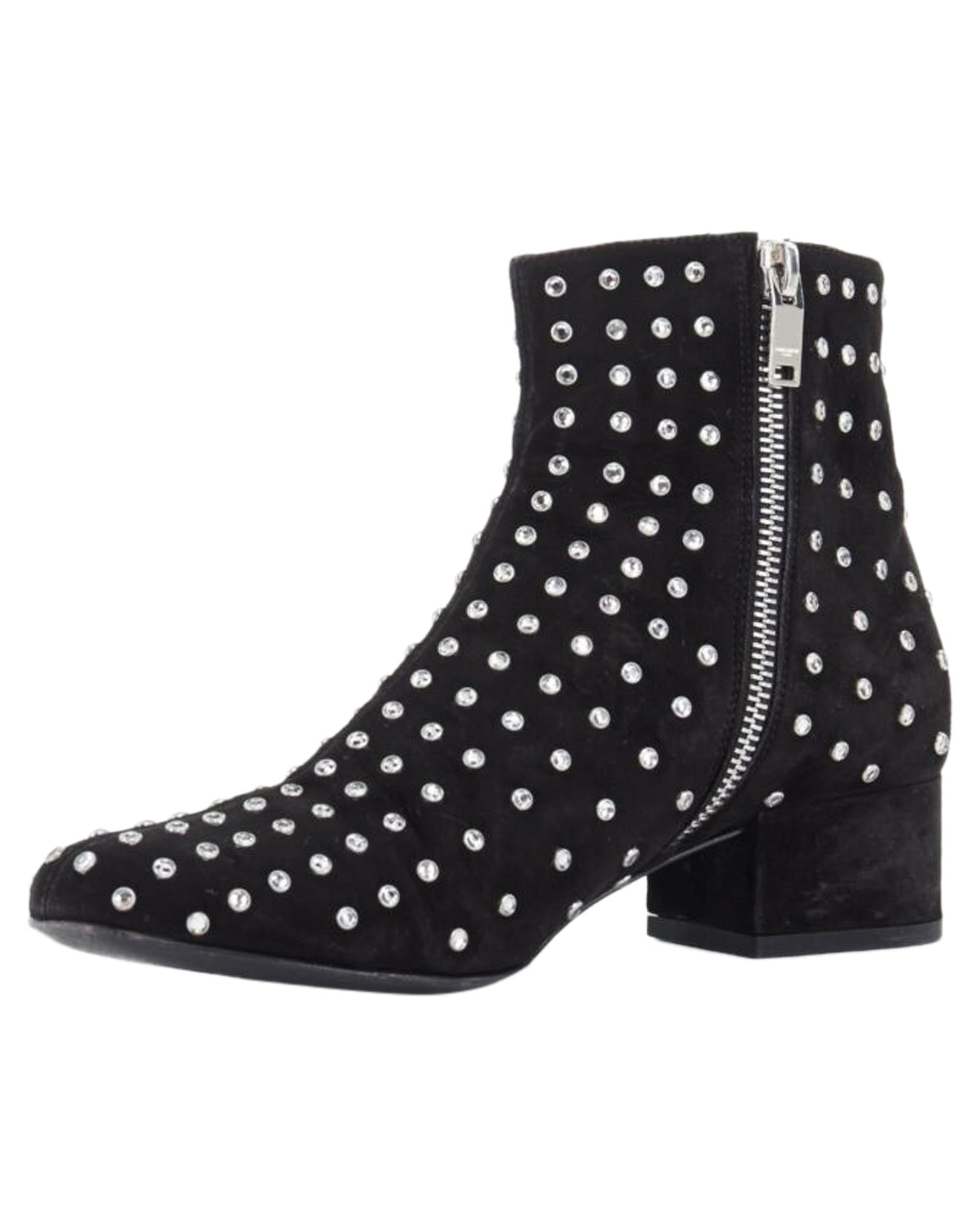 Pre-owned Embellished Ankle Boots with Block Heel and Convenient Side Zip Closure