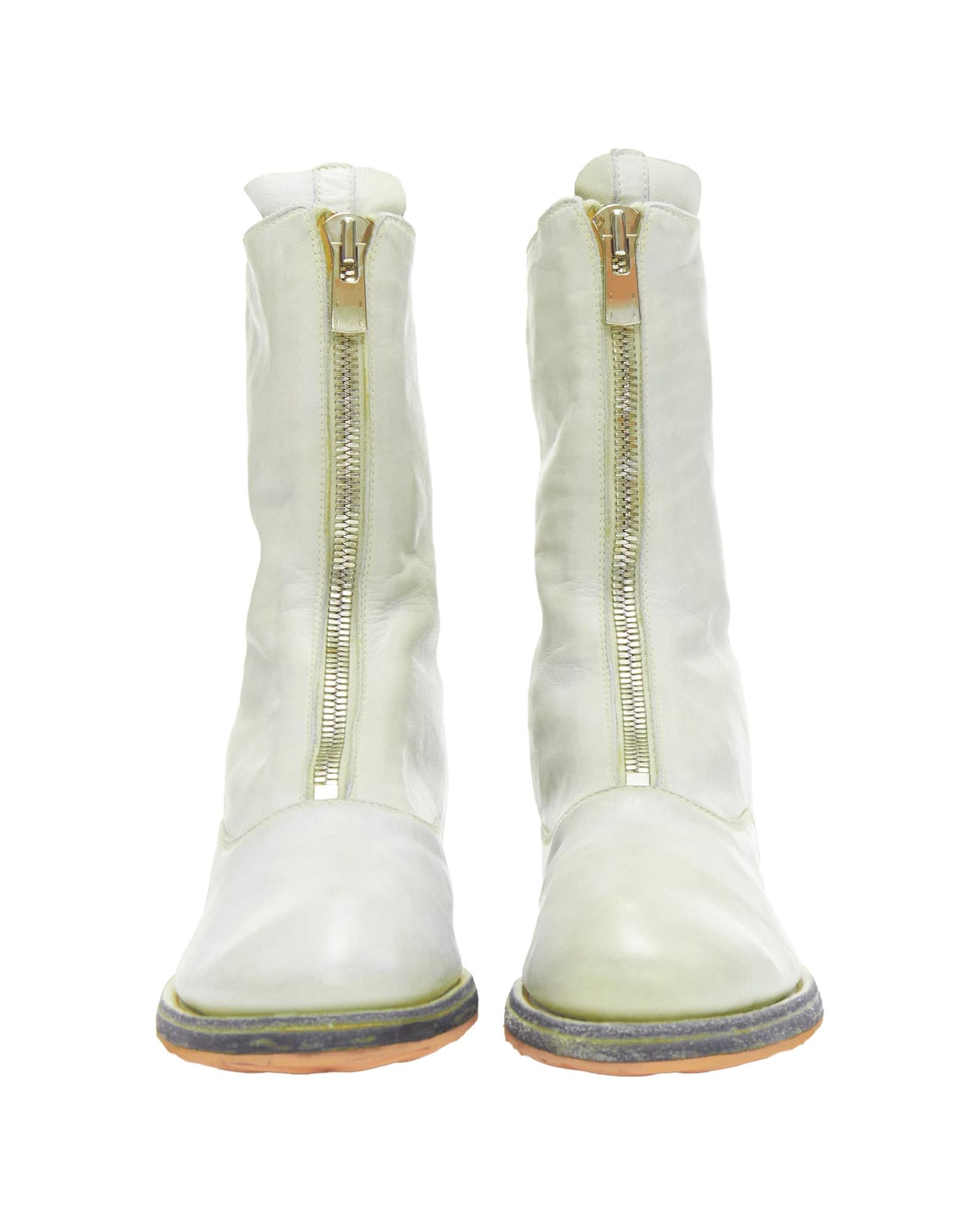 Pre-owned Leather Ankle Boots with Zipper Closure and Stacked Heel