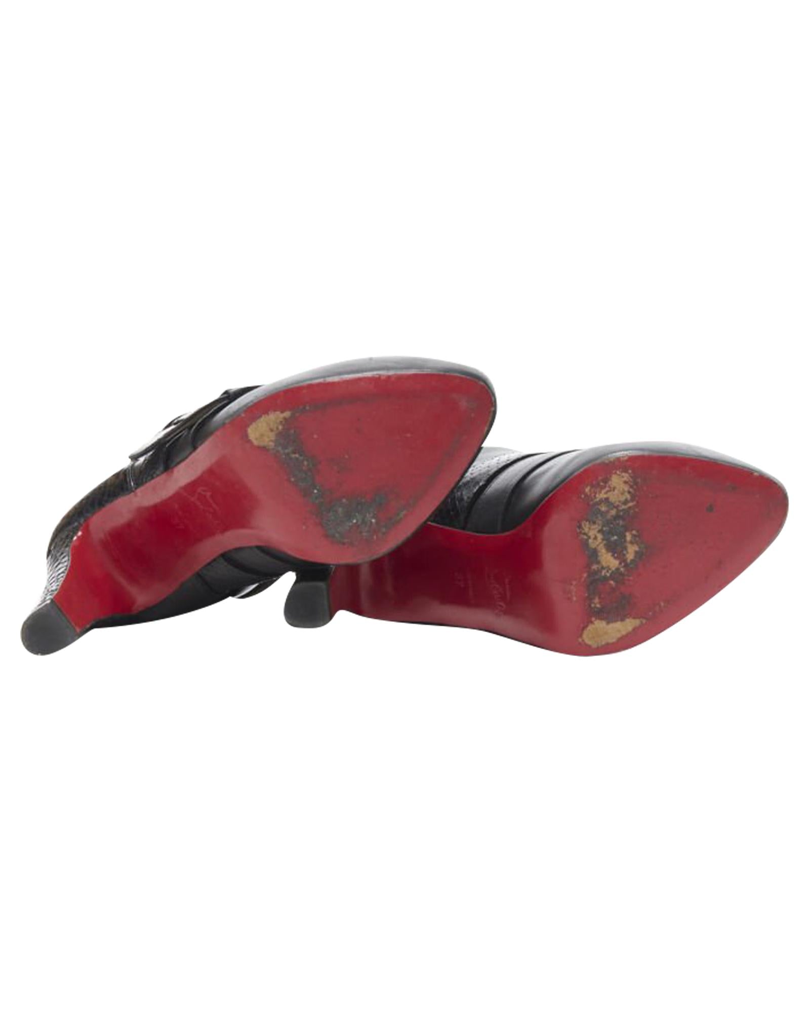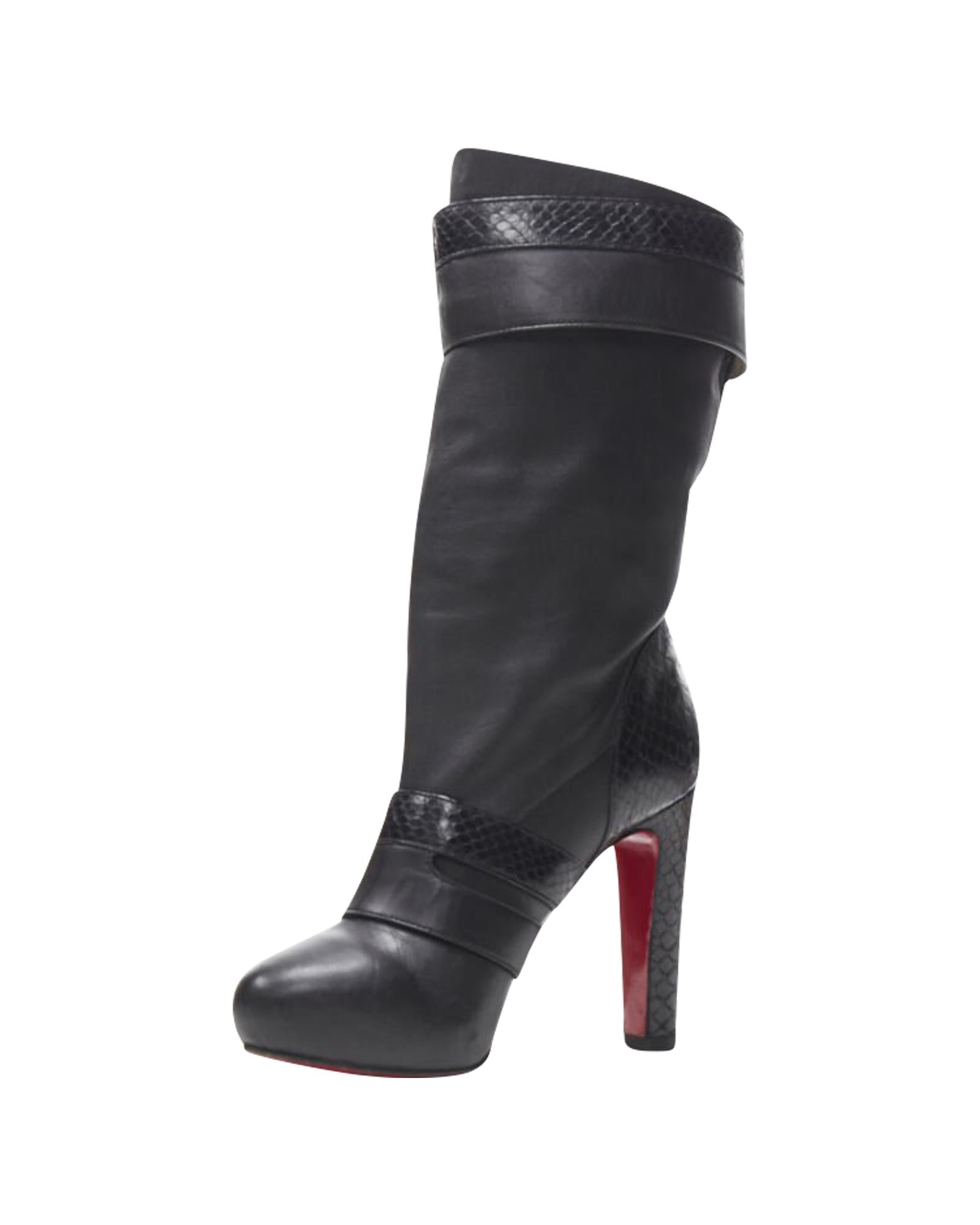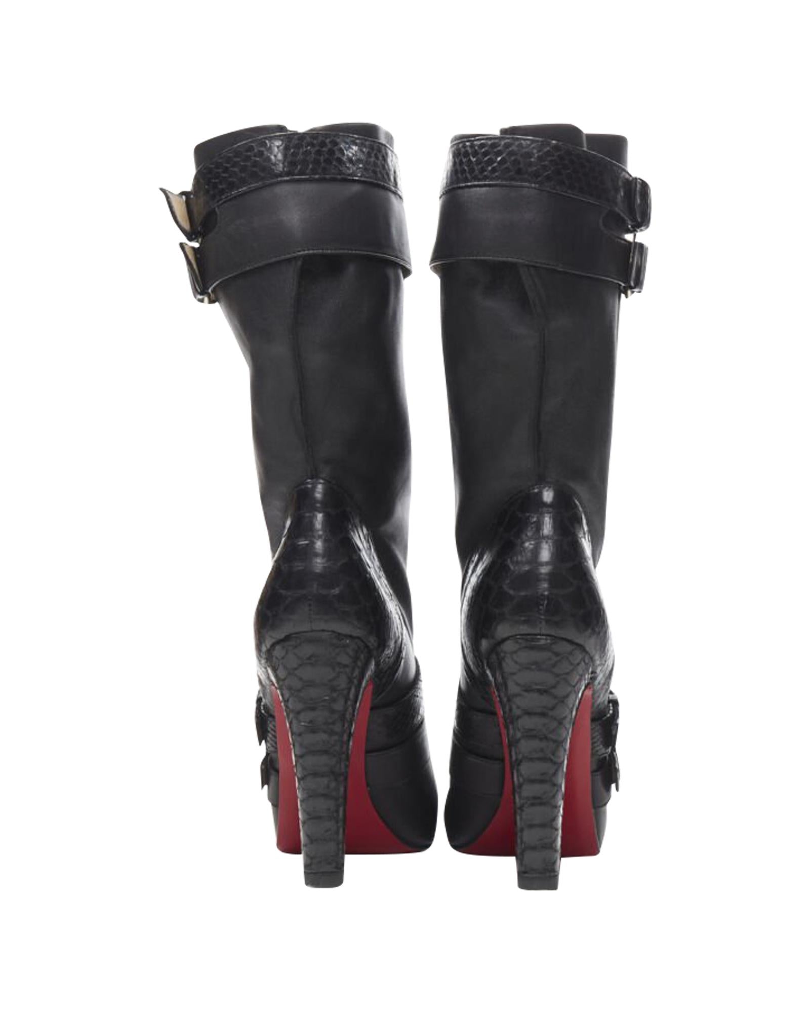 Pre-owned High Heel Boots with Buckle Detail and Textured Accents