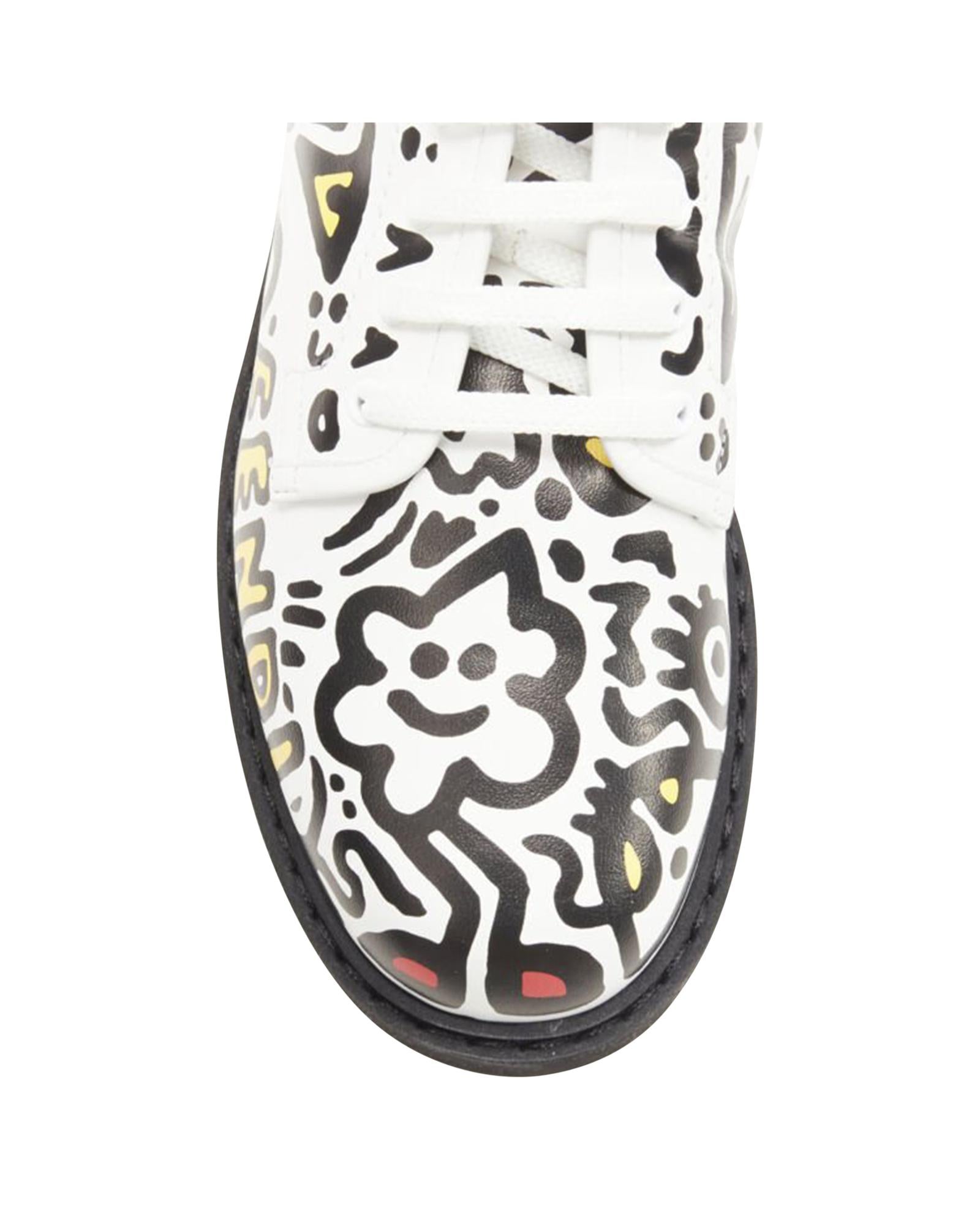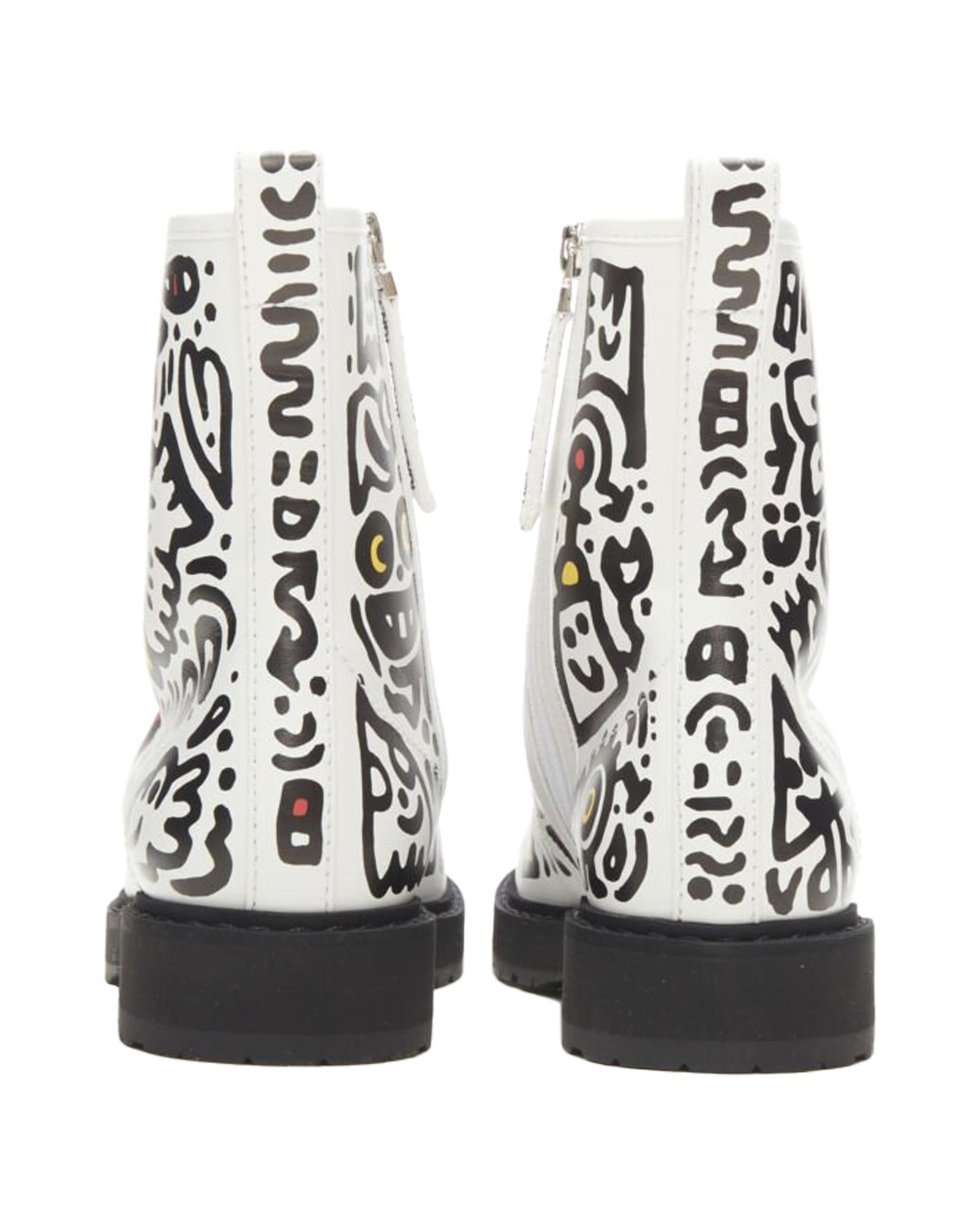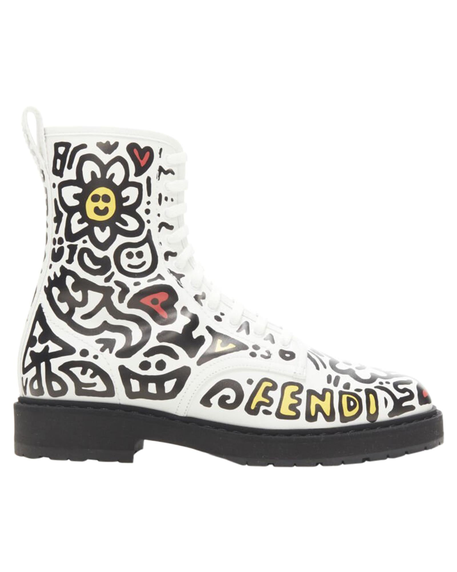 Pre-owned Lace-Up Leather Ankle Boots with Graphic Design