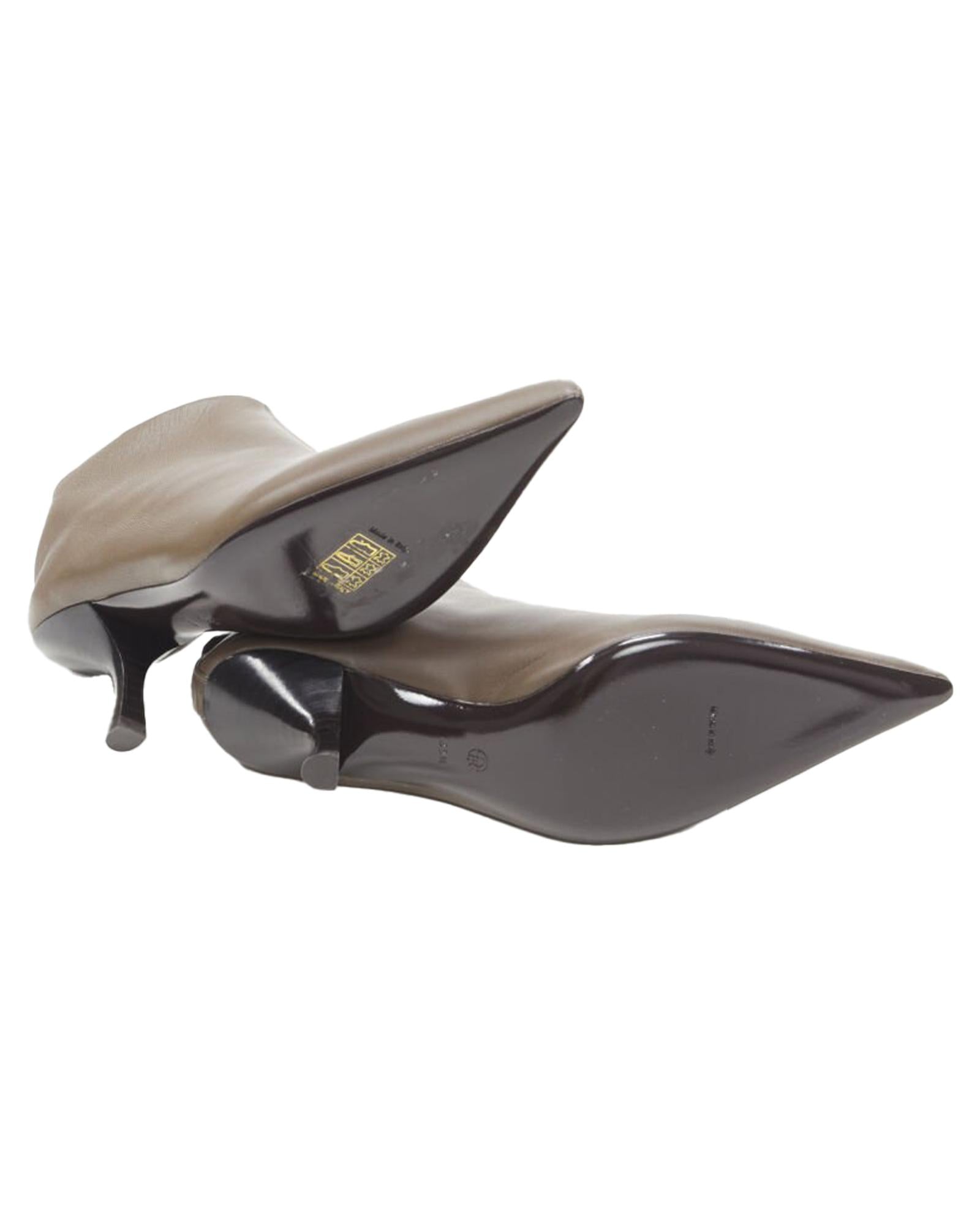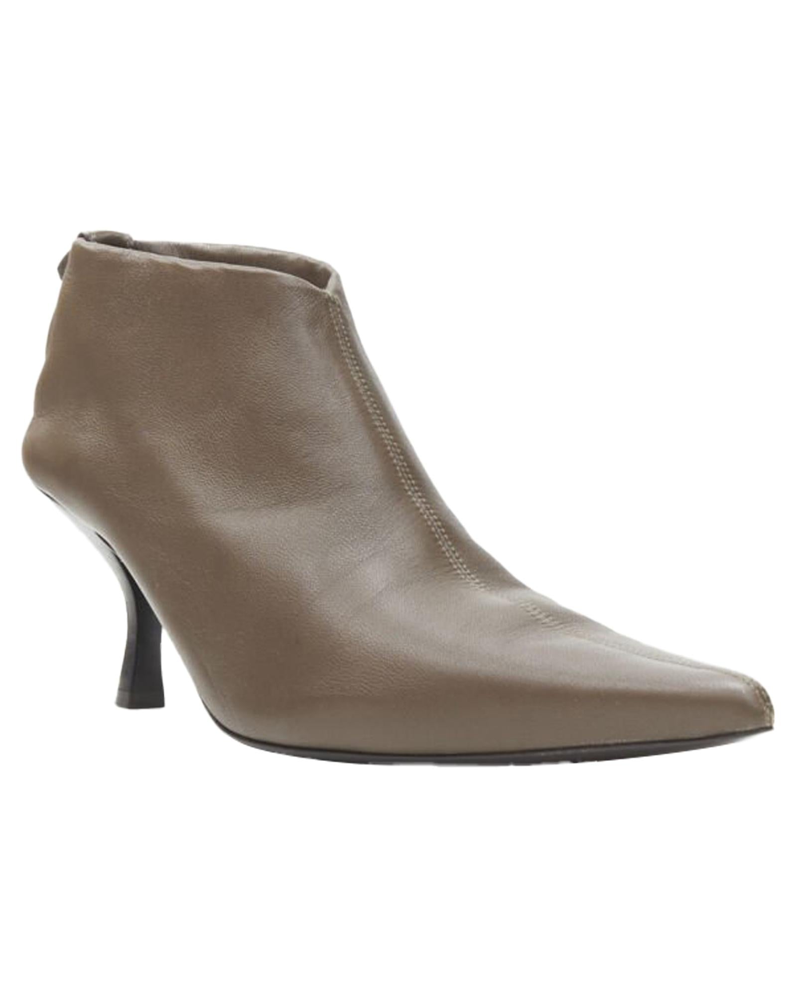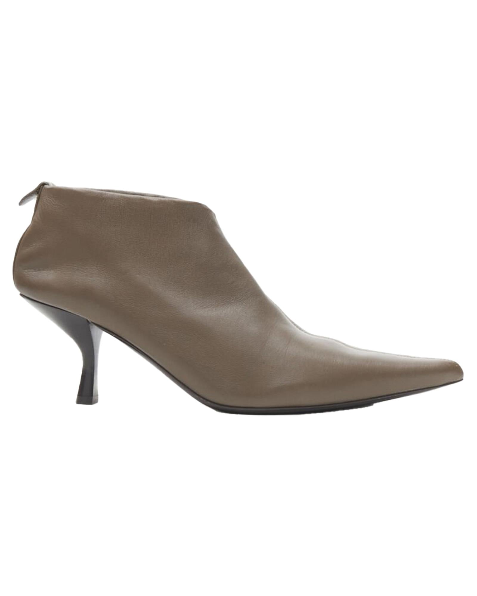 Pre-owned Pointed Toe Ankle Boots with Leather Upper and Heel