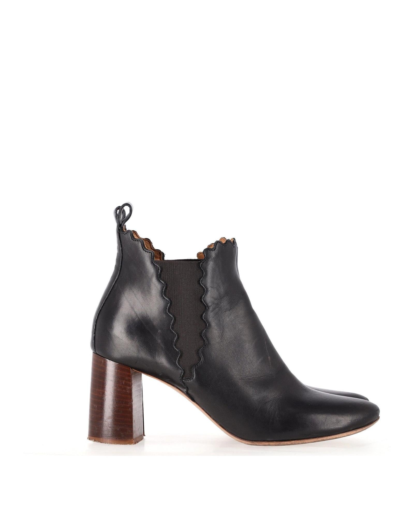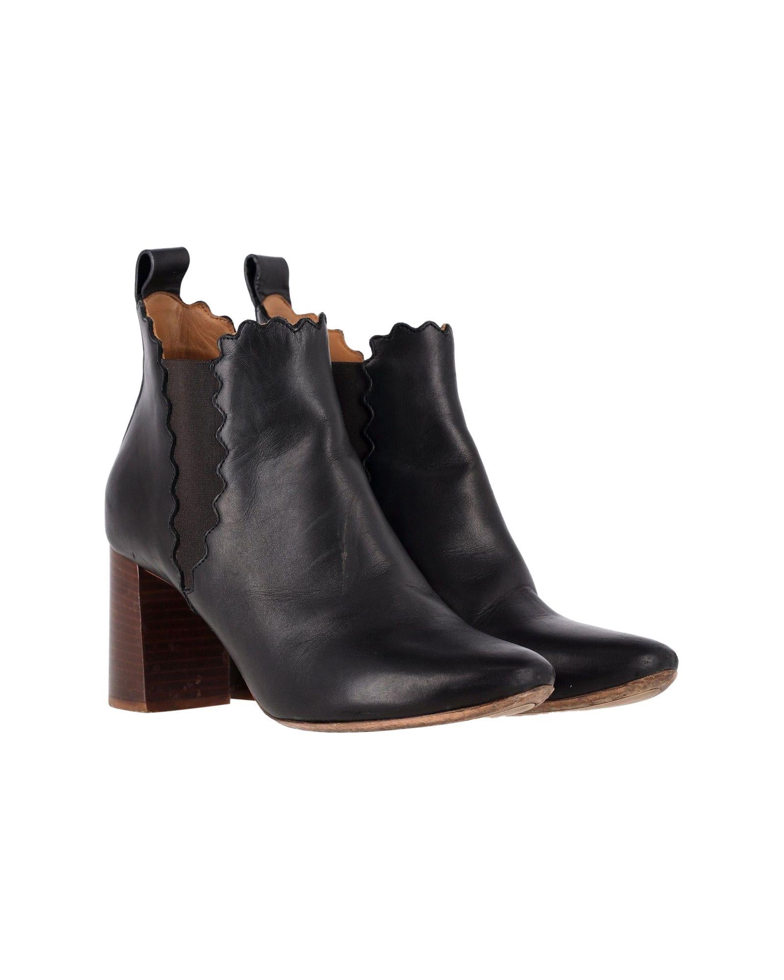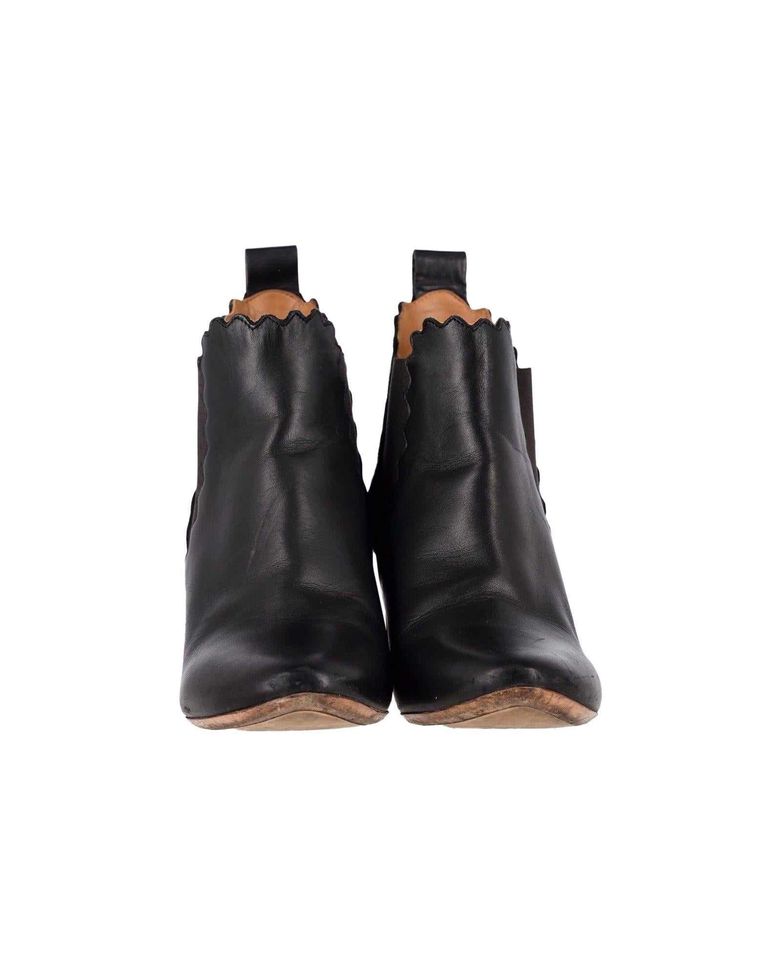 - Chloe Scalloped Chelsea Boots in Black Leather