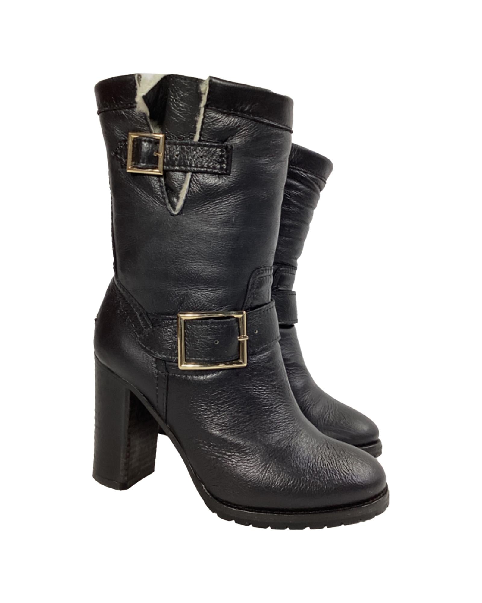 Pre-owned Leather Ankle Boots with Buckle Detail