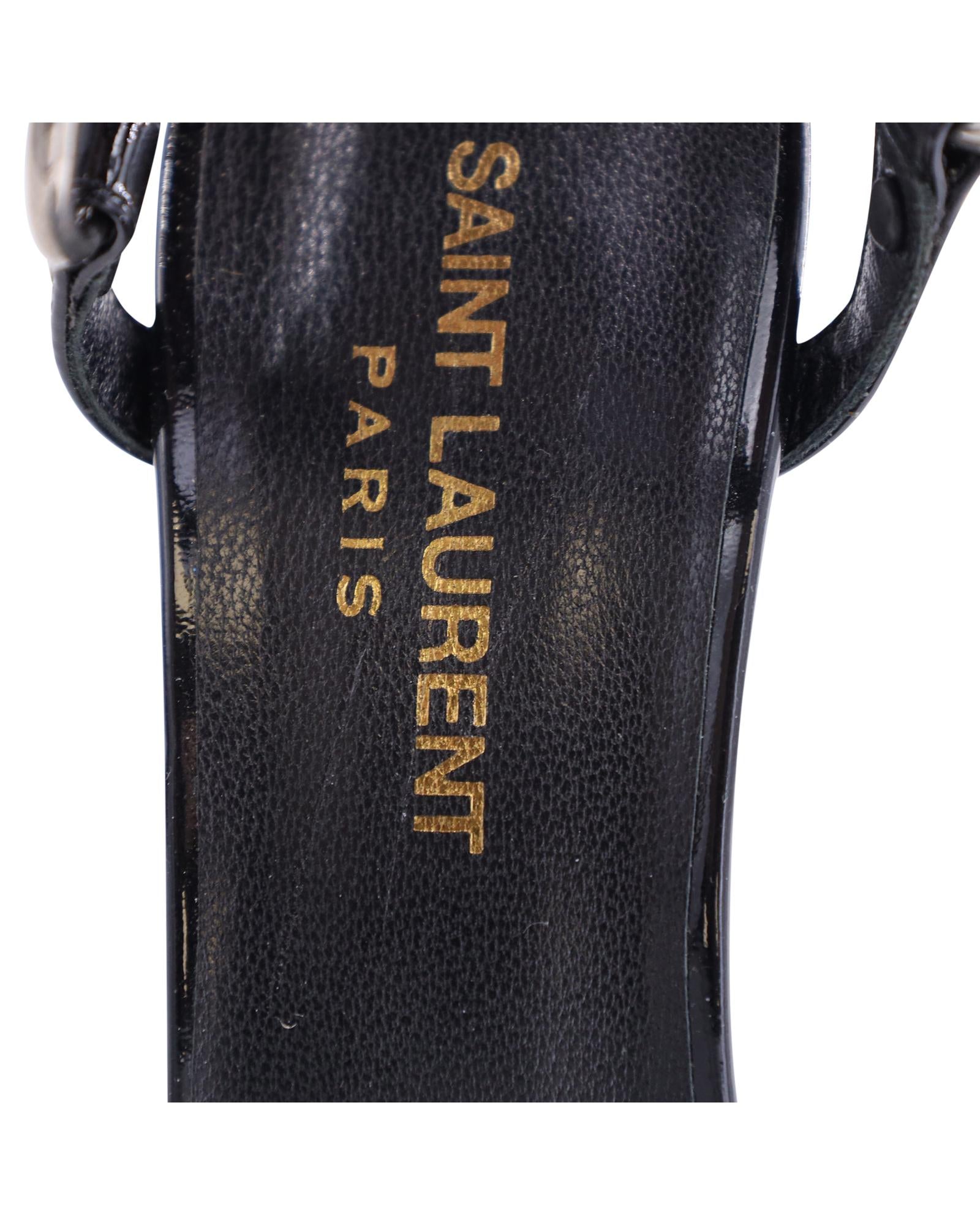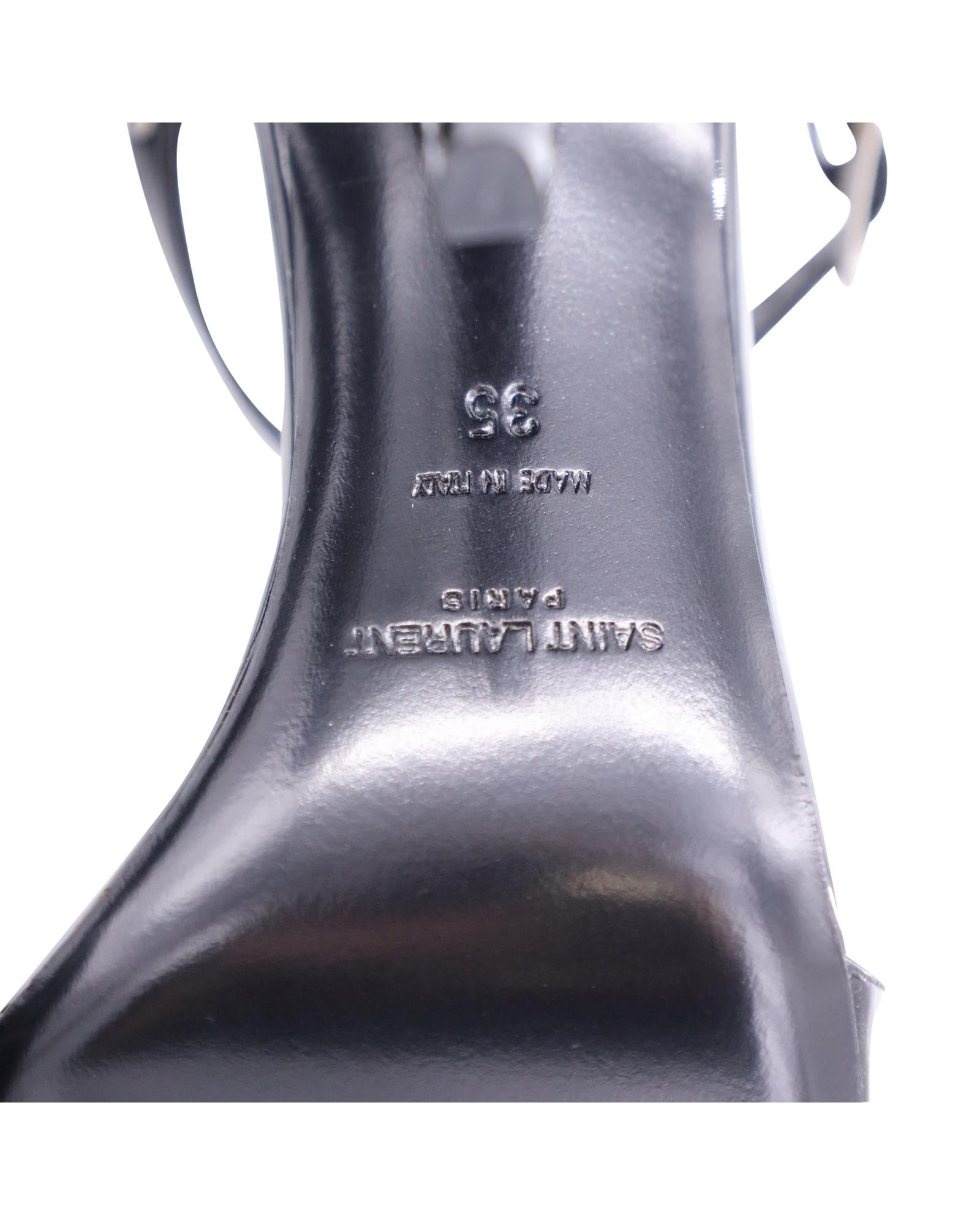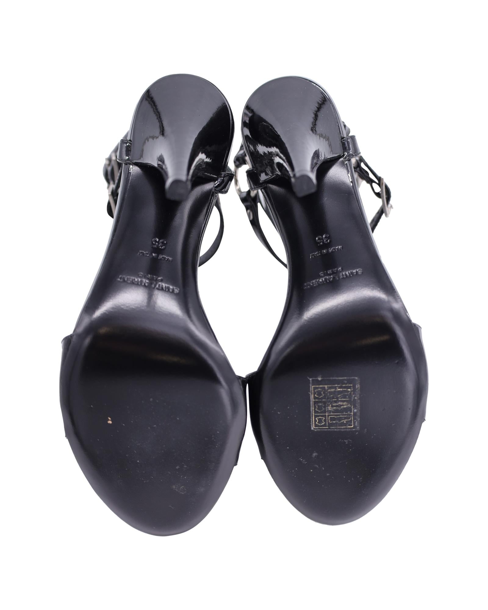• Saint Laurent Ankle Cage Strap Heels in Black Patent Leather