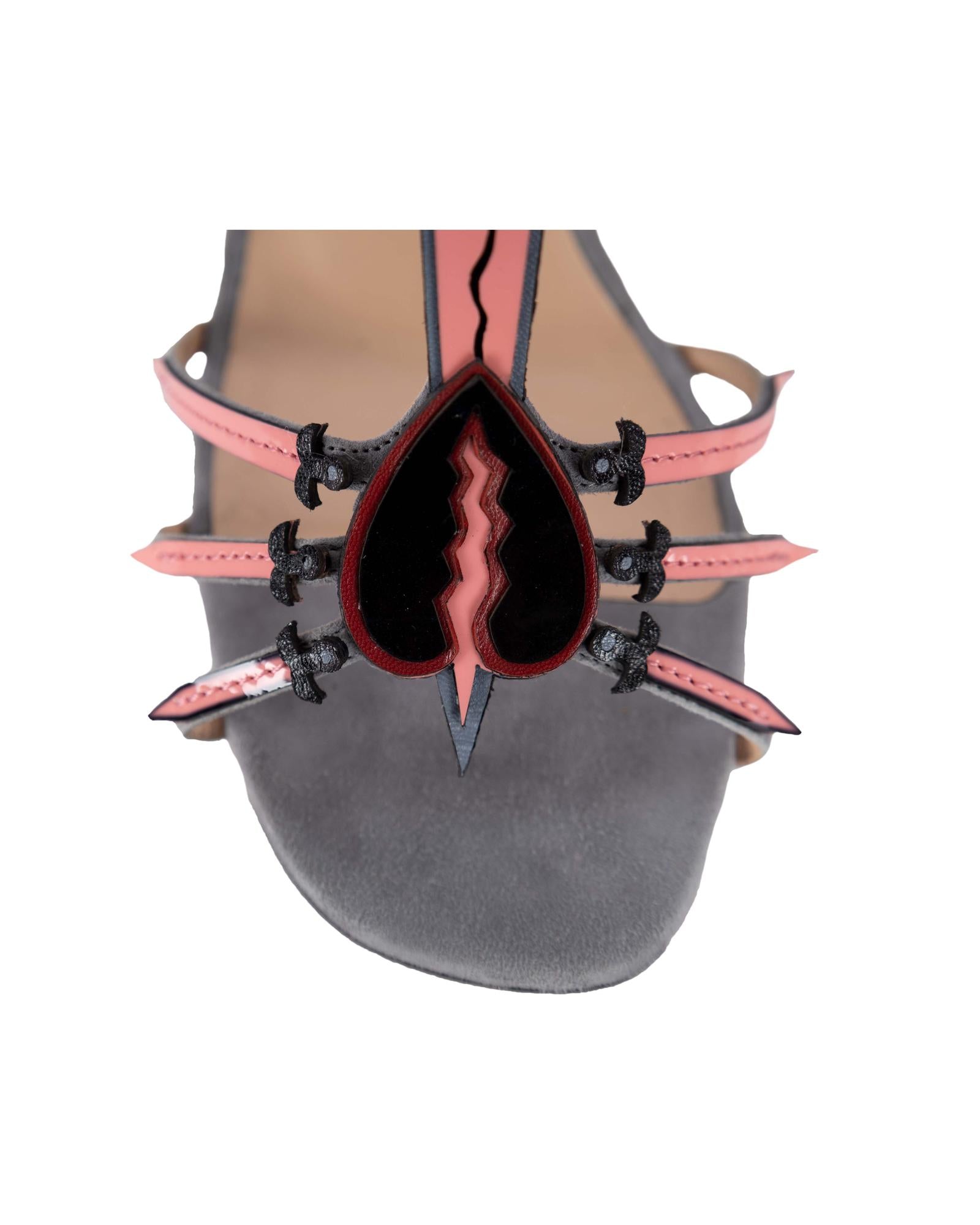 Love Blade T-Strap Suede Sandals with Heart Motif