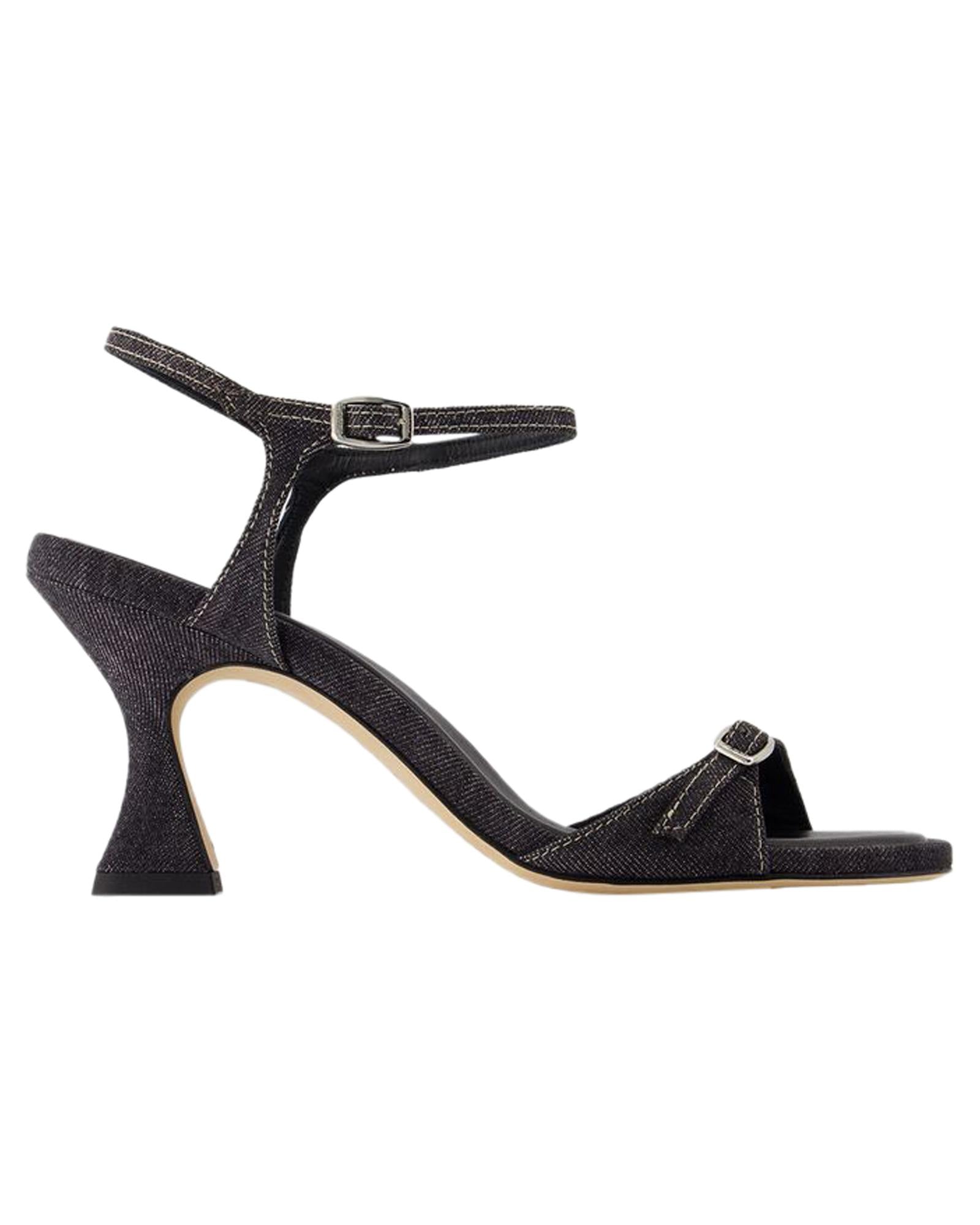 Denim Stiletto Sandals Buckle Closure