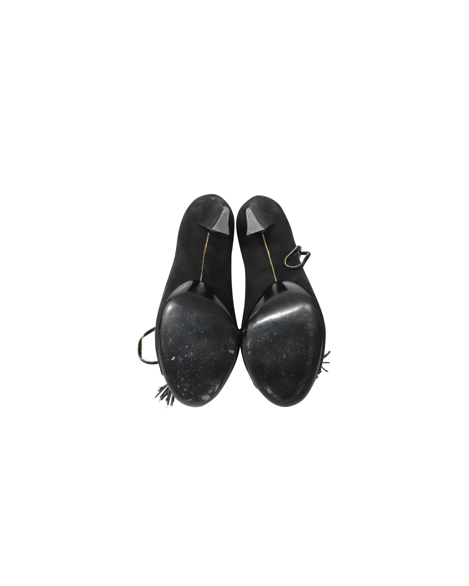 Elegant Lace-Up Heels in Black Suede