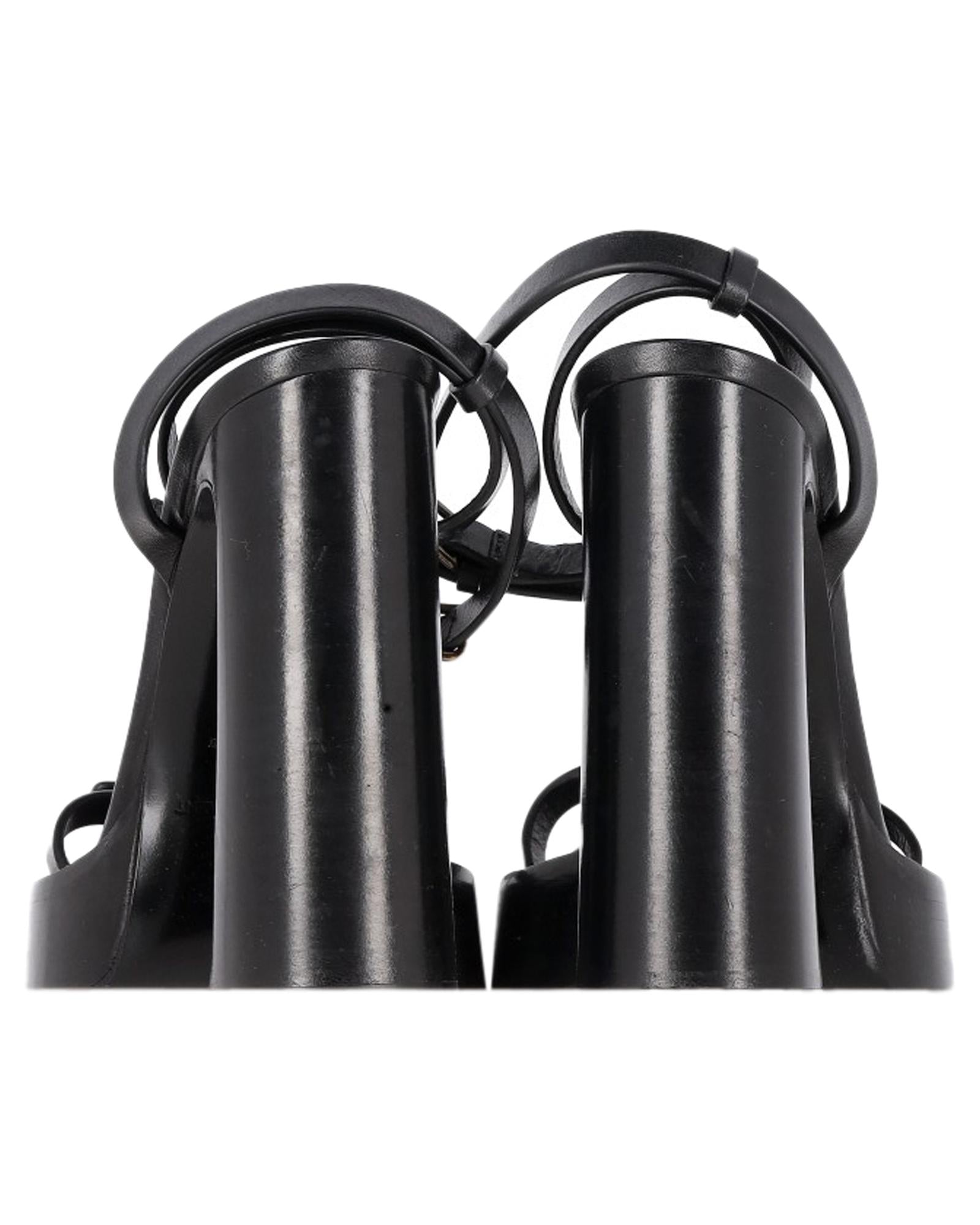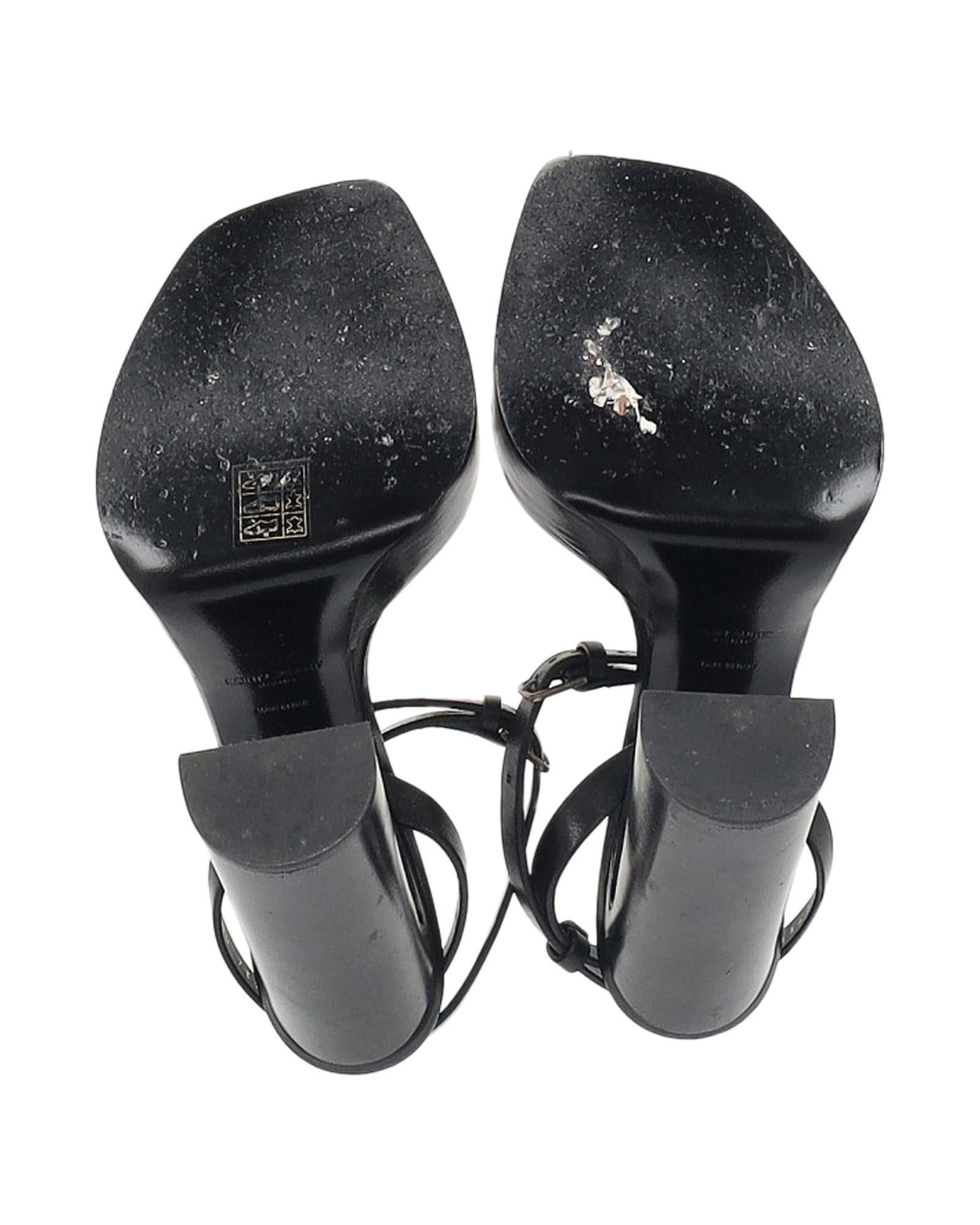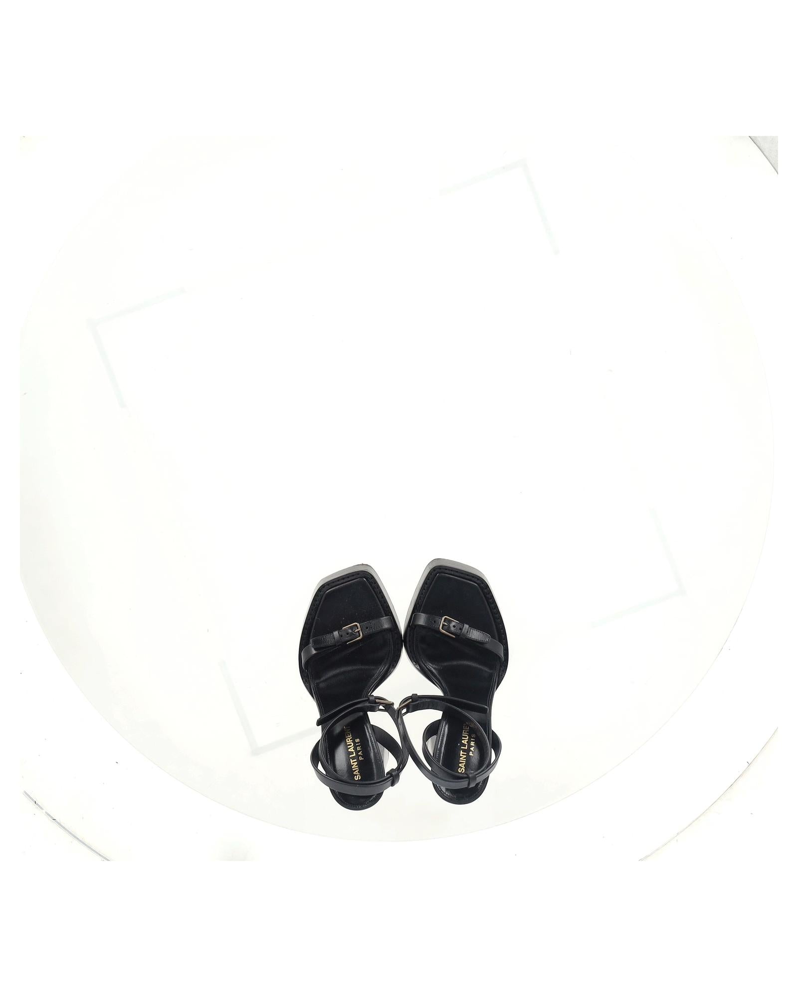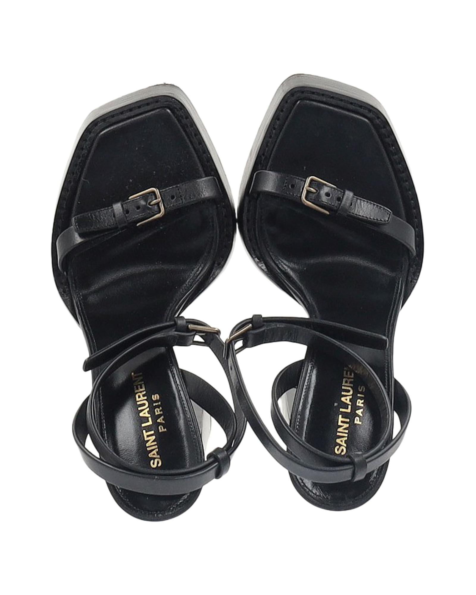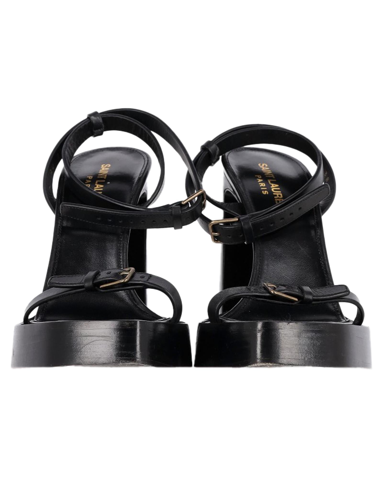 - Saint Laurent Buckled Strap Platform Sandals in Black Leather