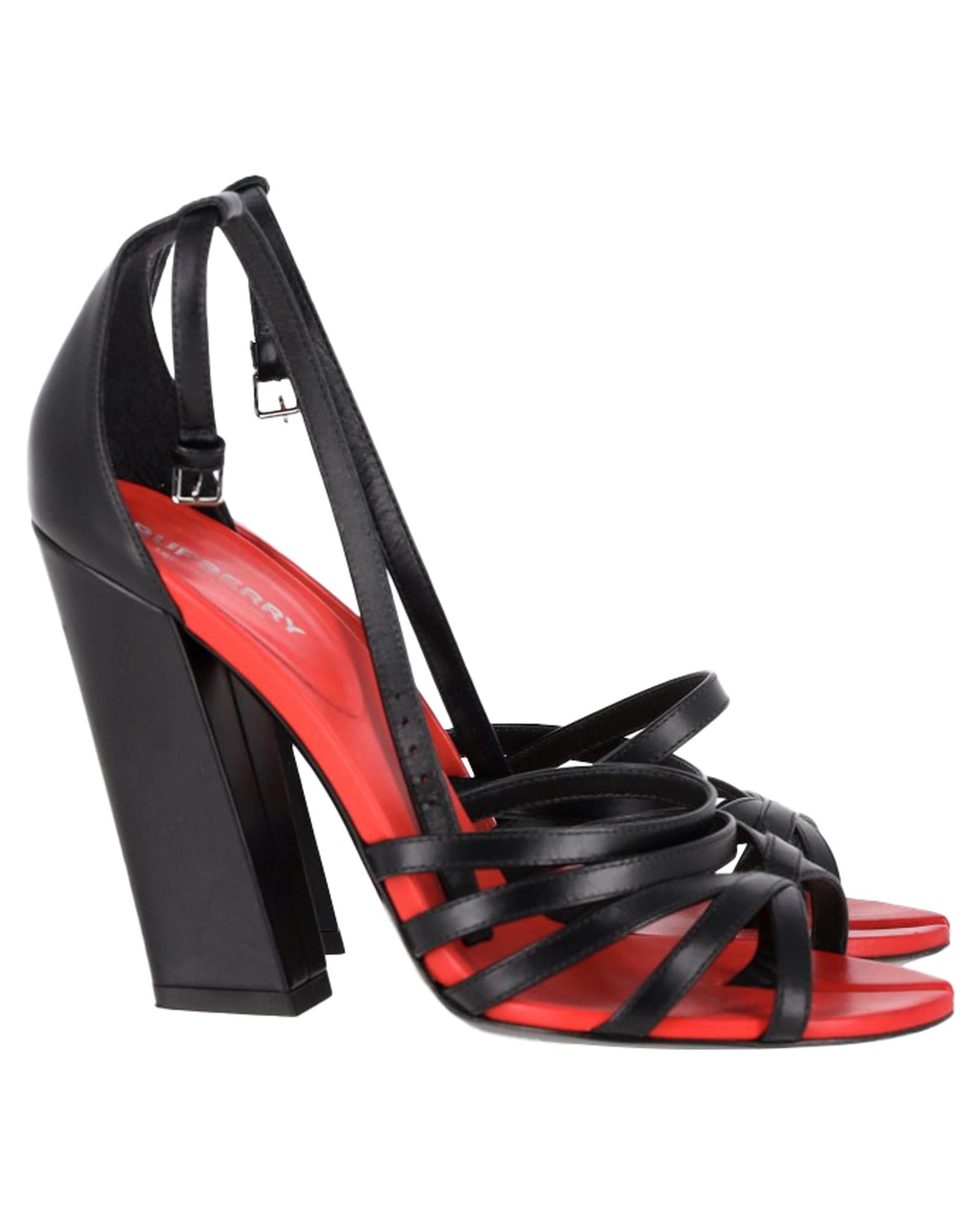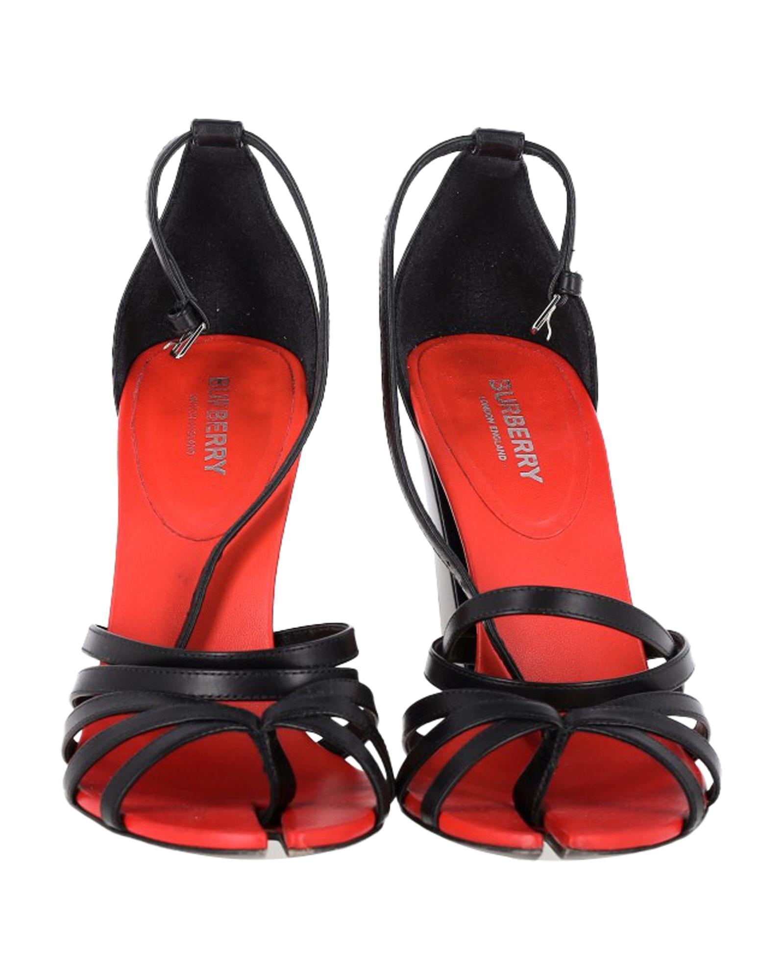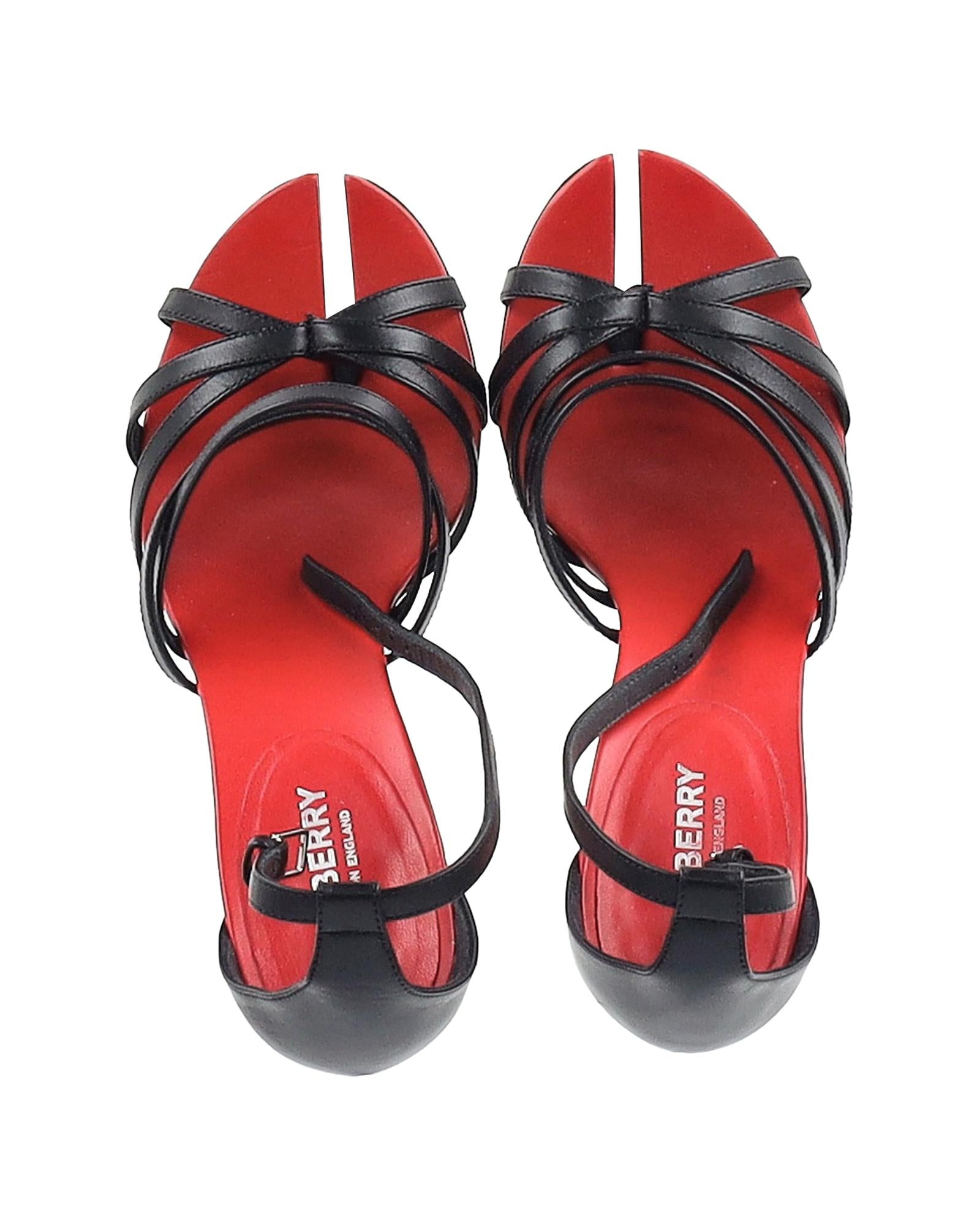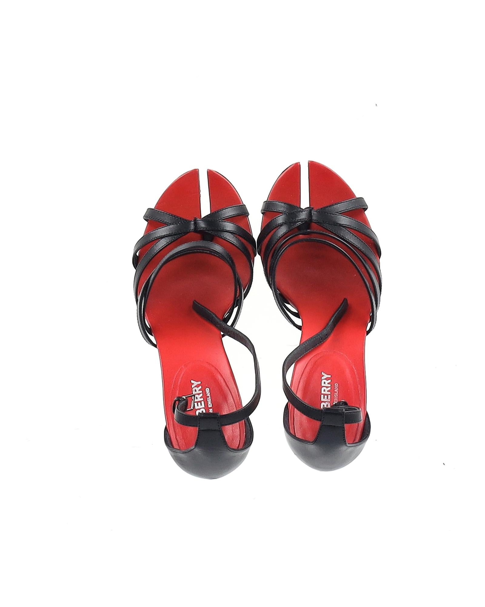 • Burberry Hove Chunky Heel Thong Sandals in Black Cow Leather