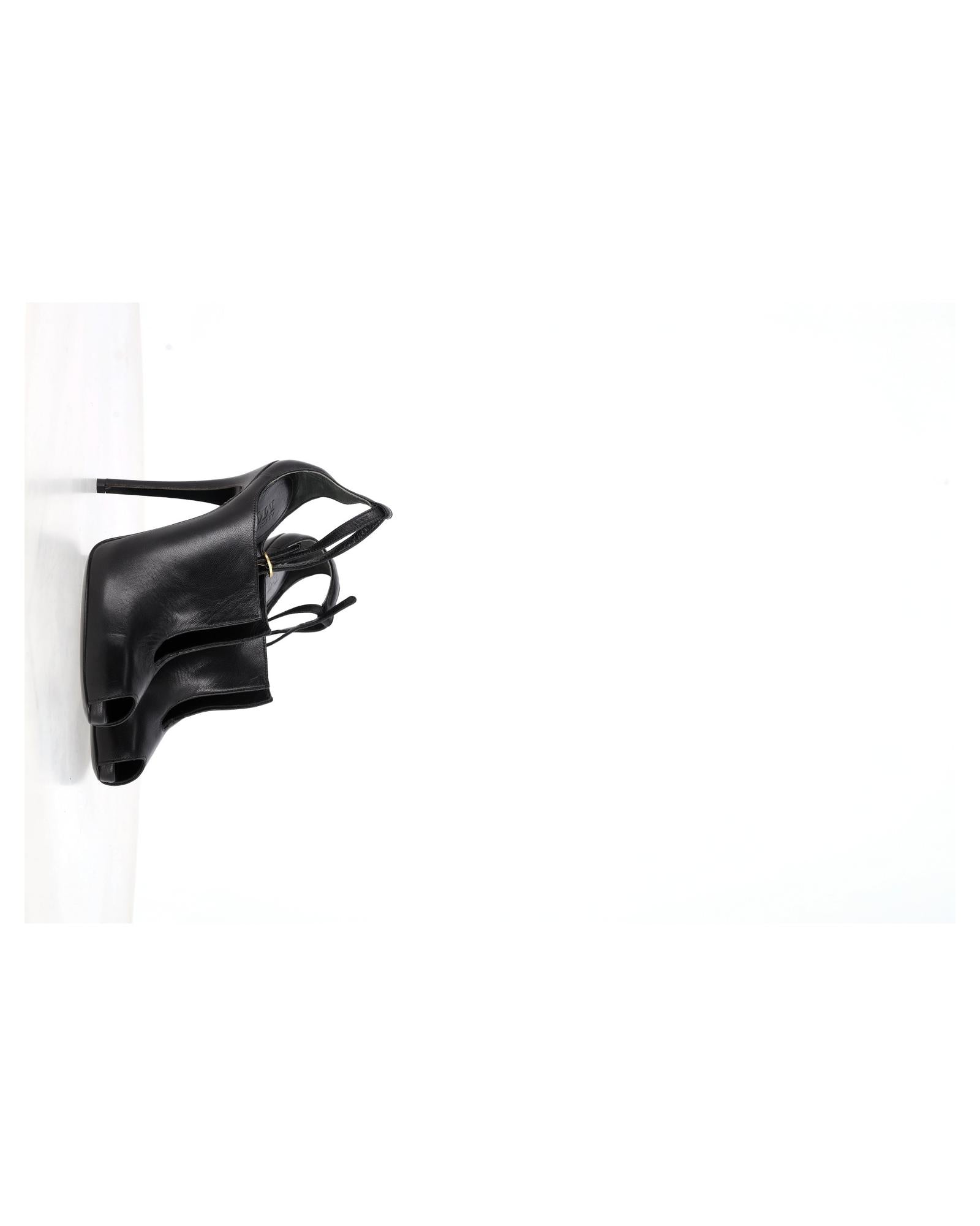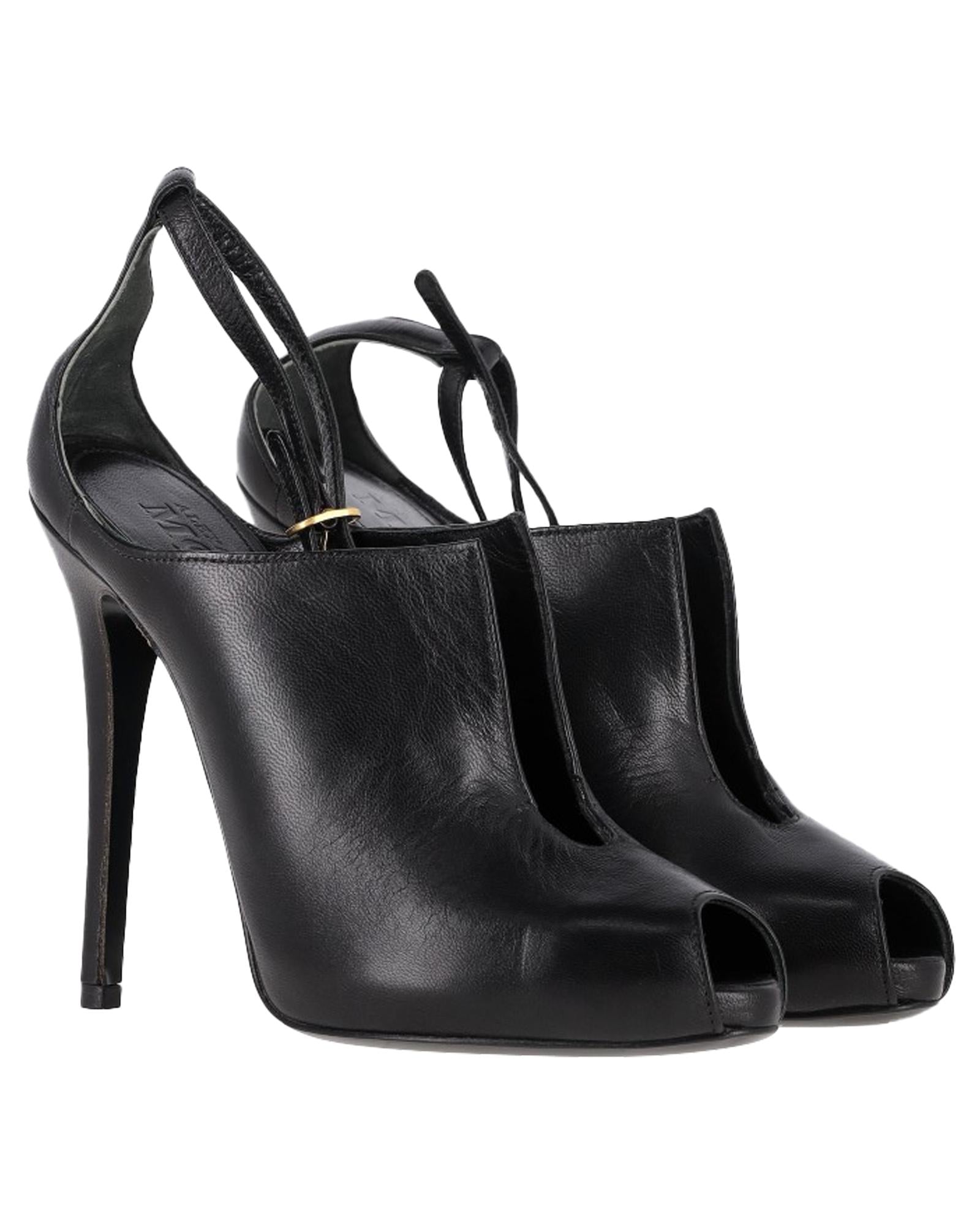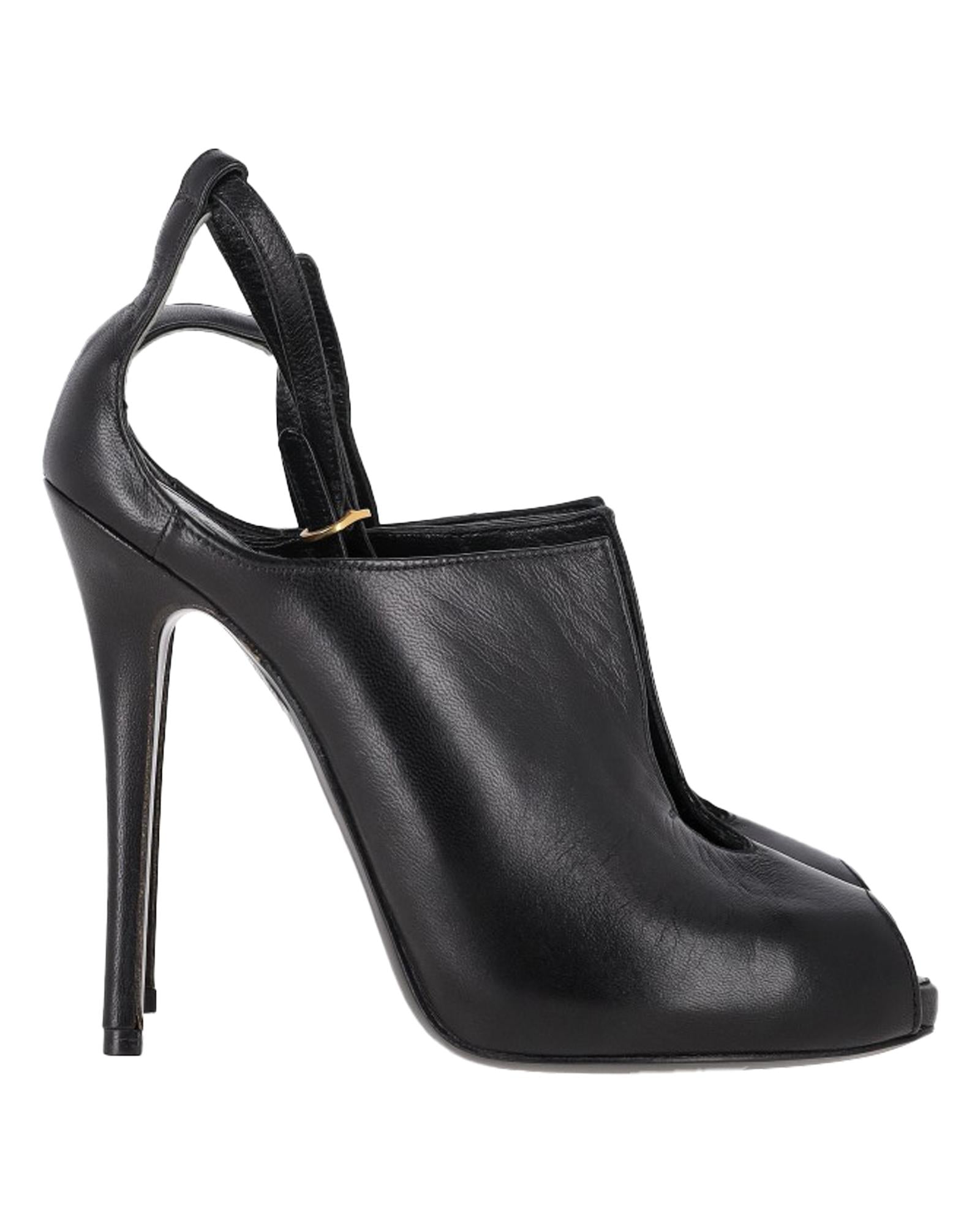 - Alexander McQueen Cutout Ankle Strap Boots in Black Leather