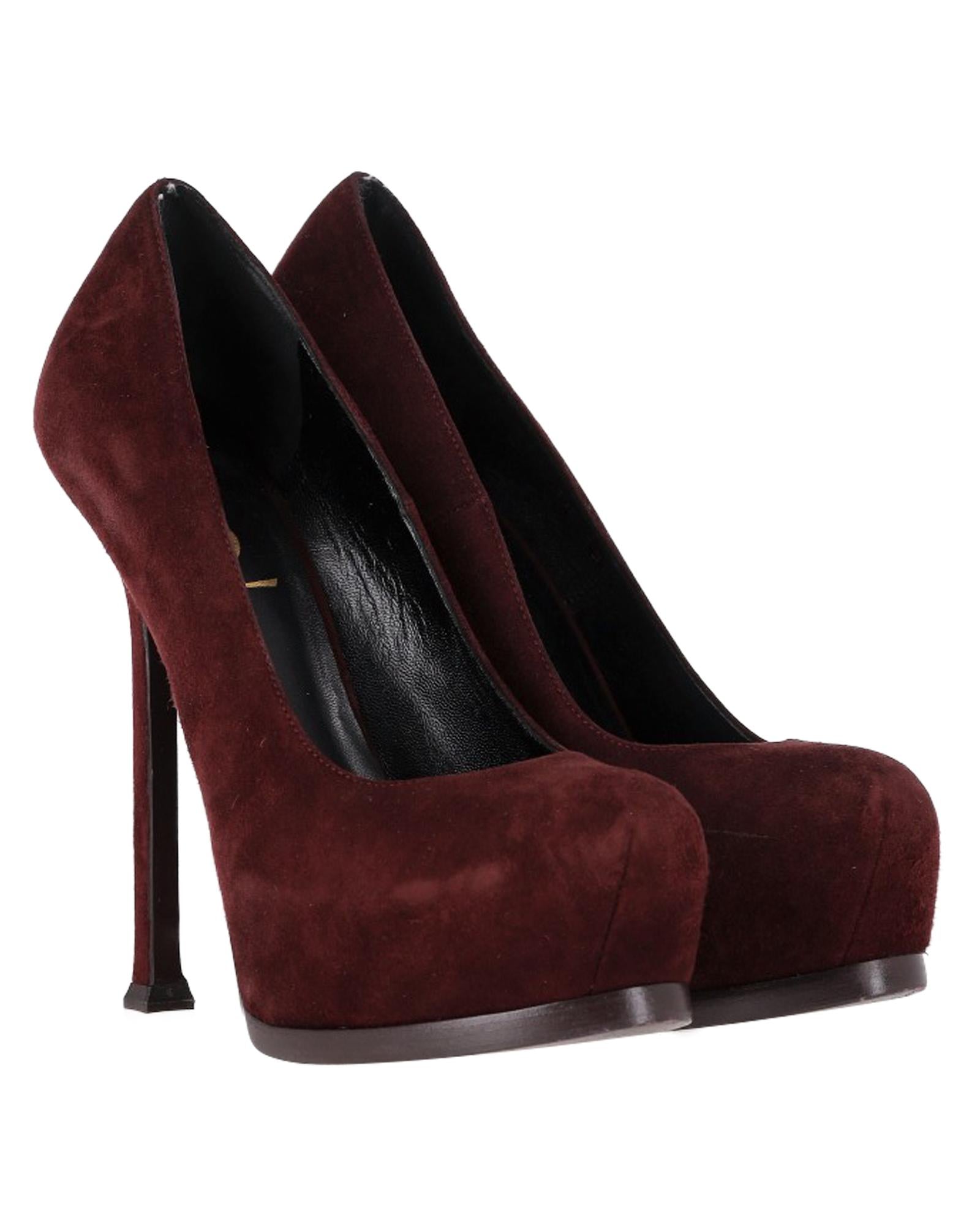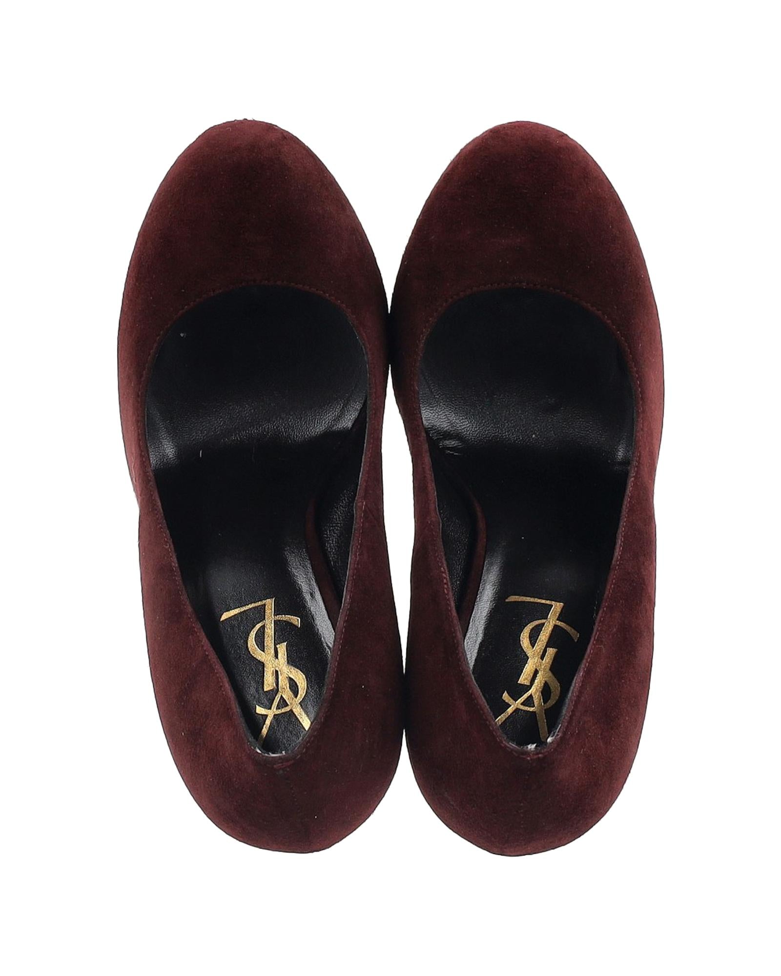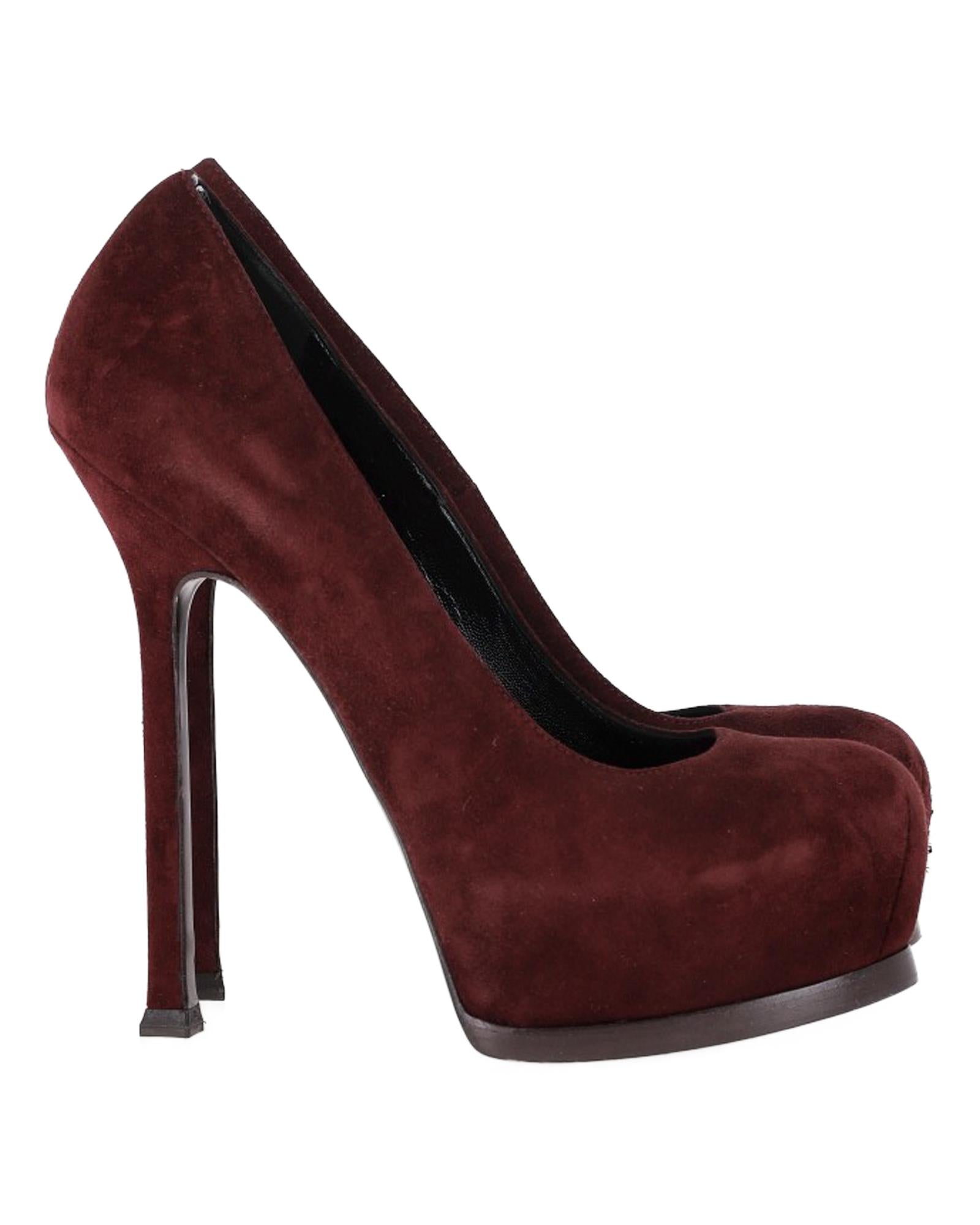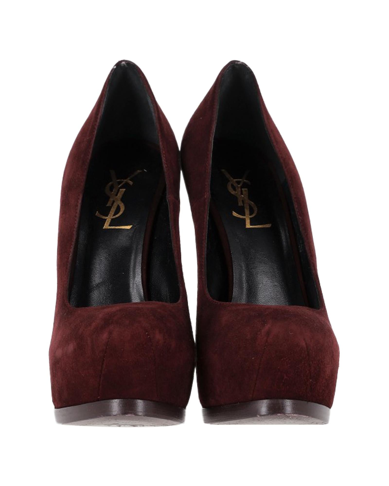 • Saint Laurent Tribtoo Platform Pumps in Burgundy Suede