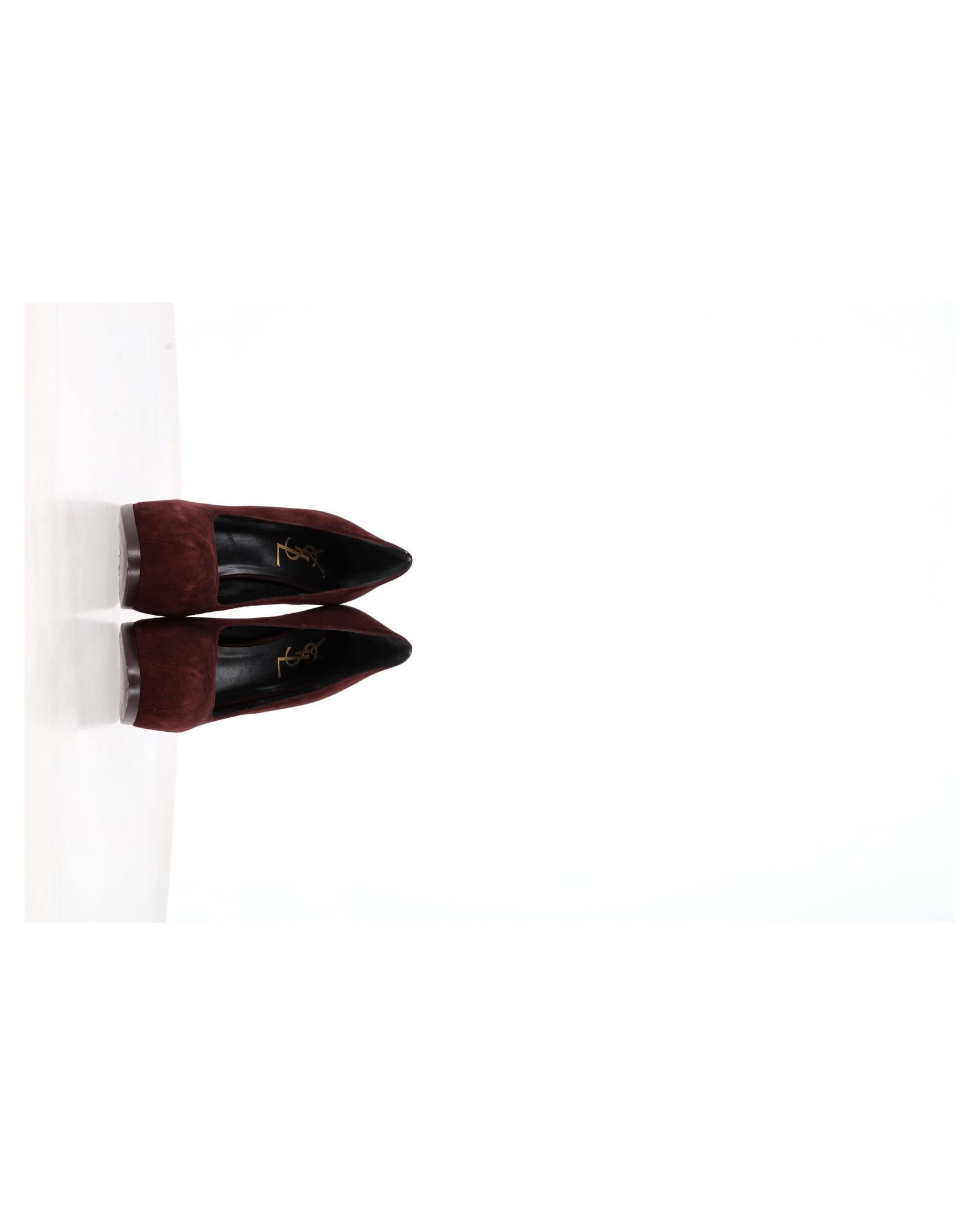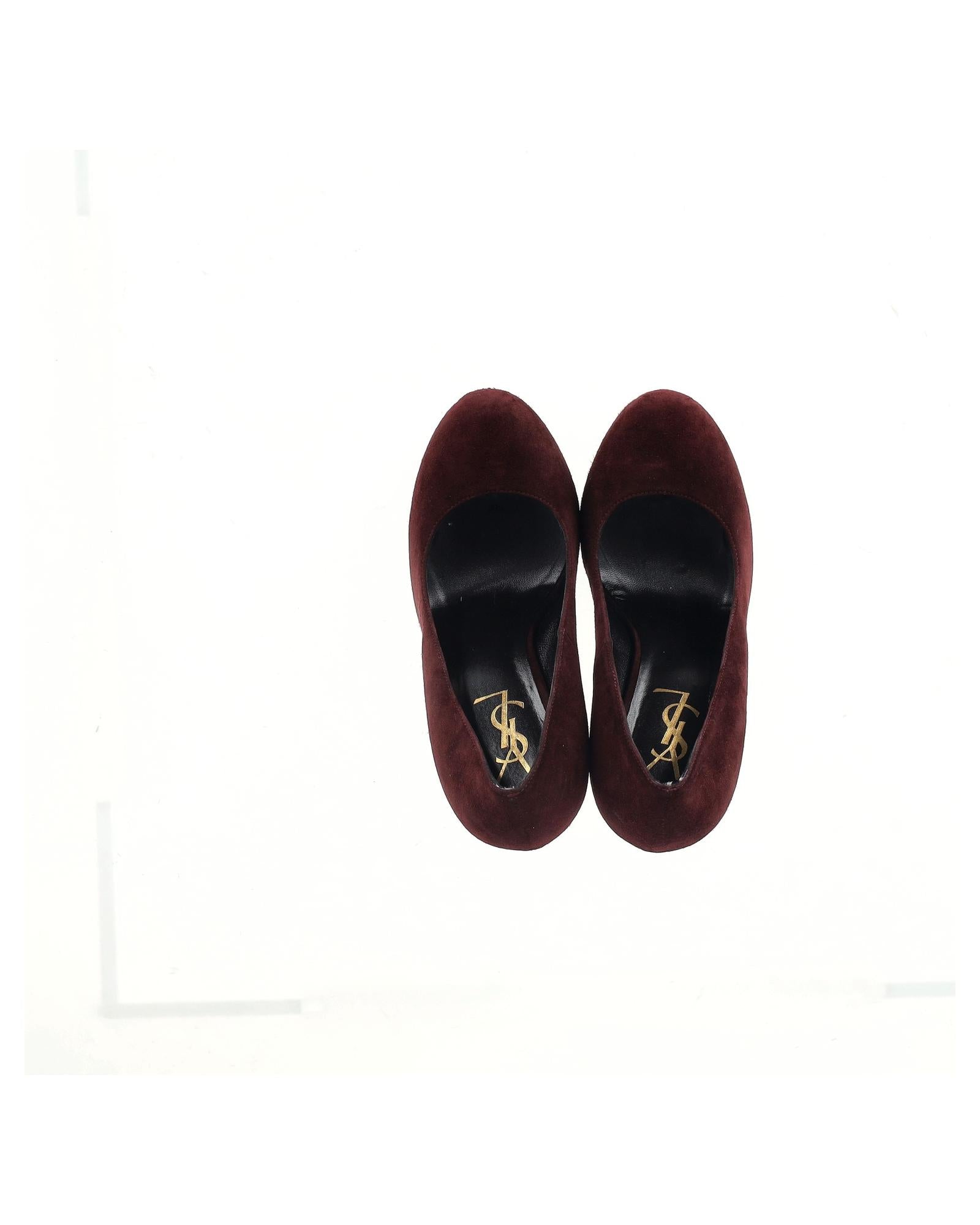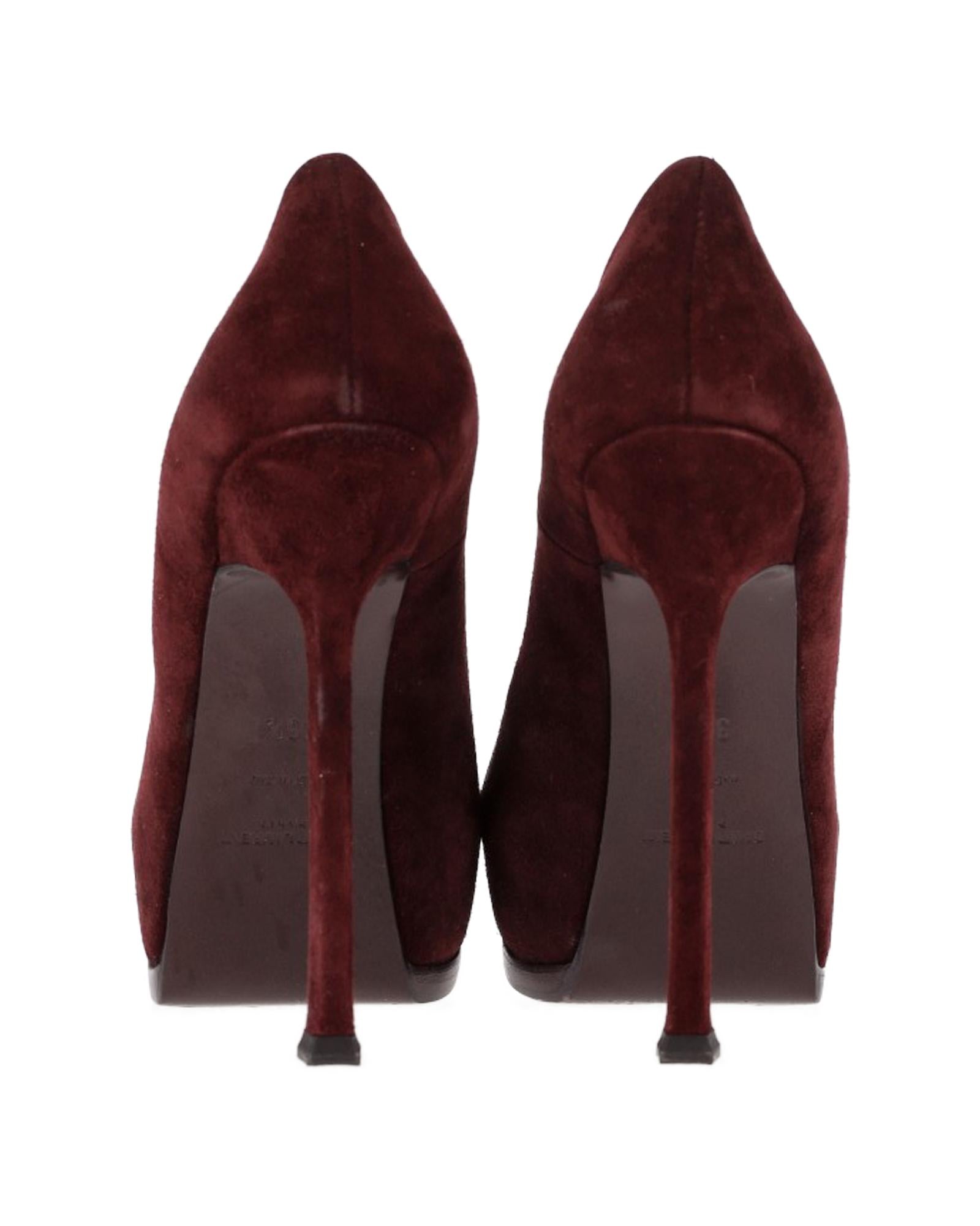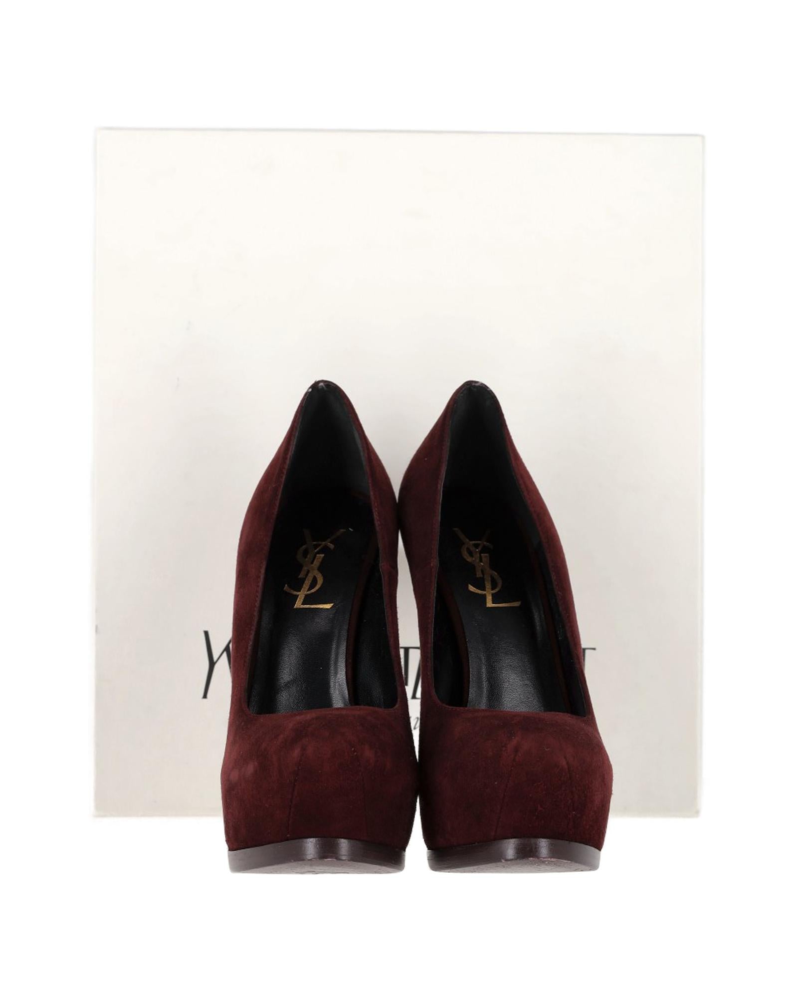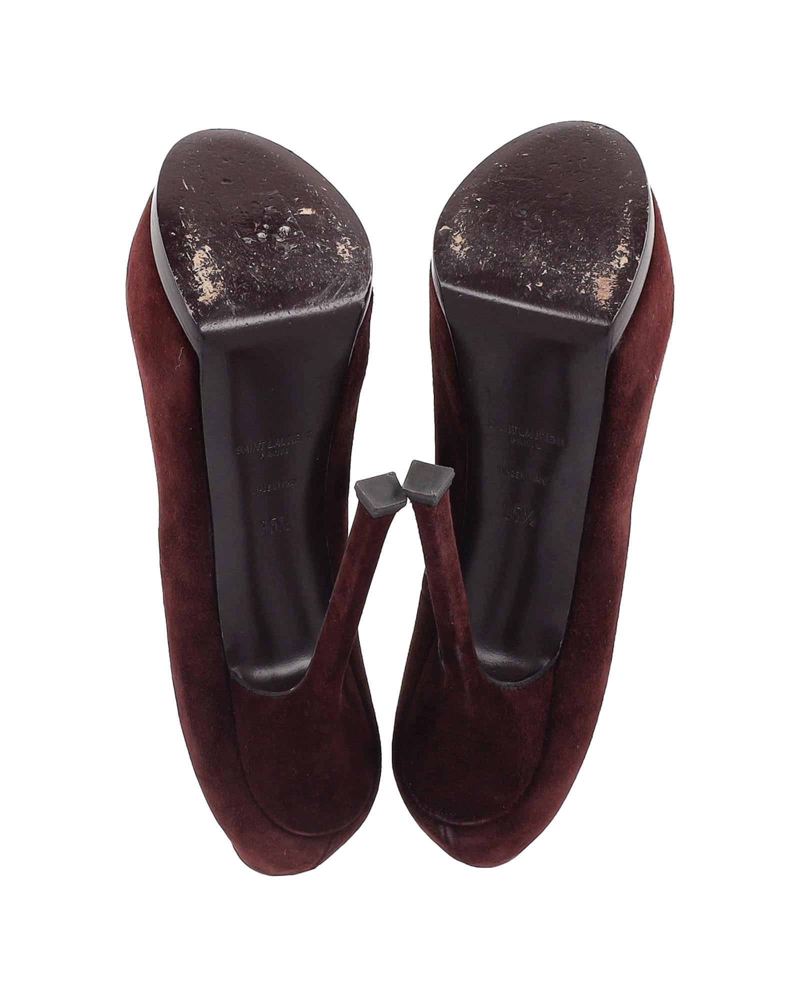 • Saint Laurent Tribtoo Platform Pumps in Burgundy Suede