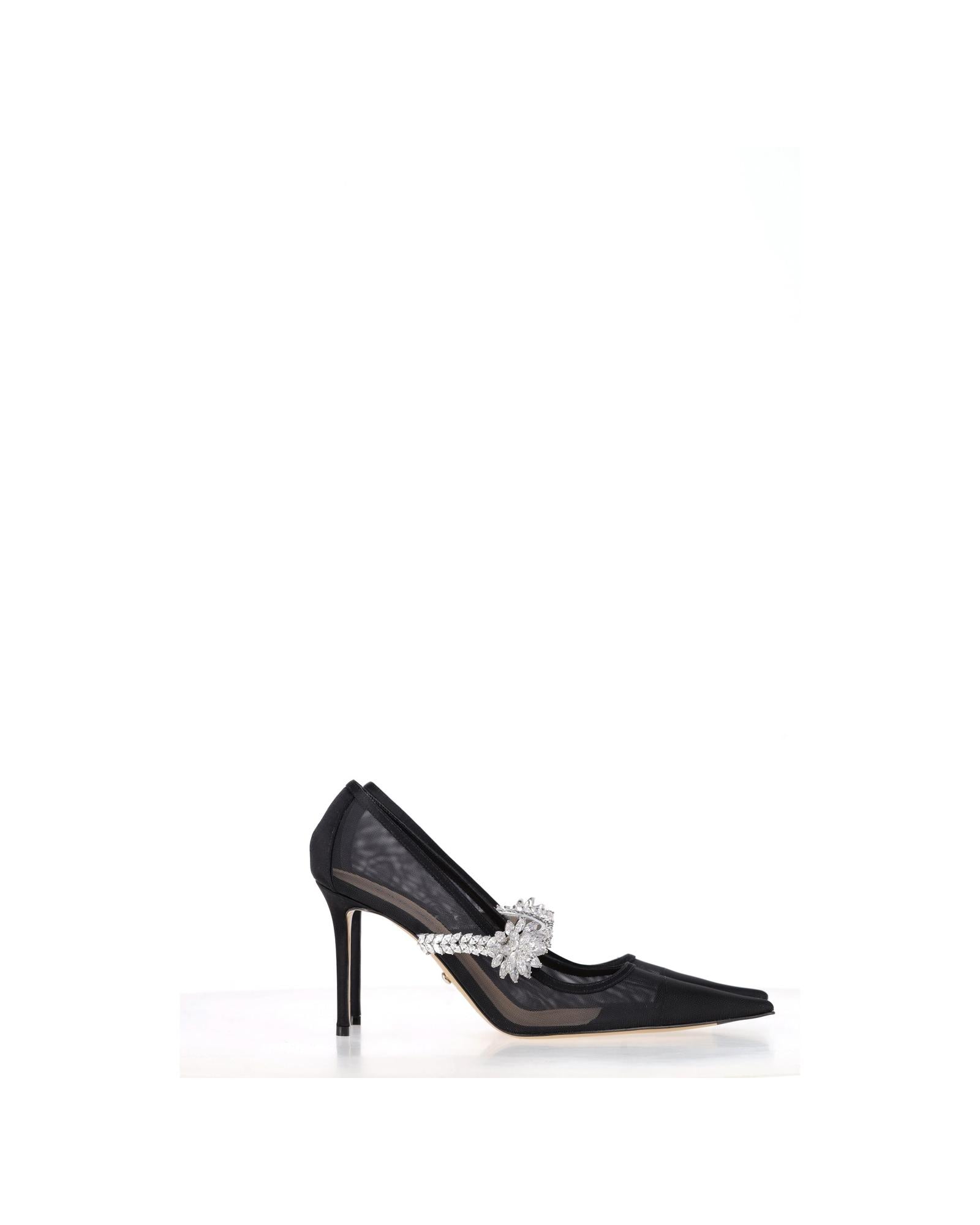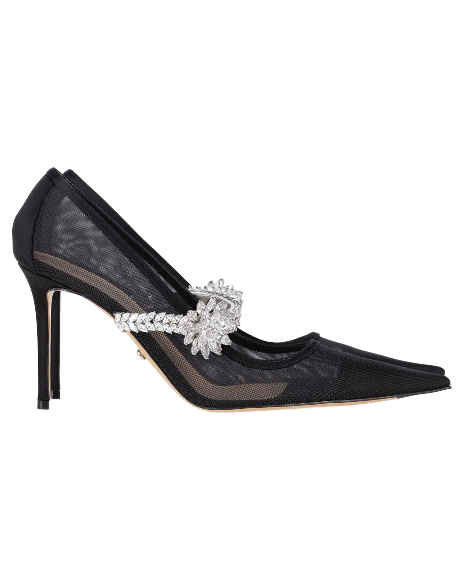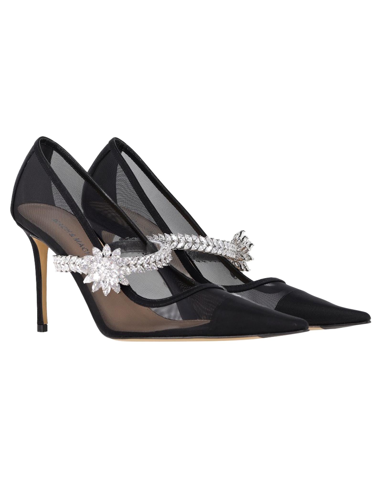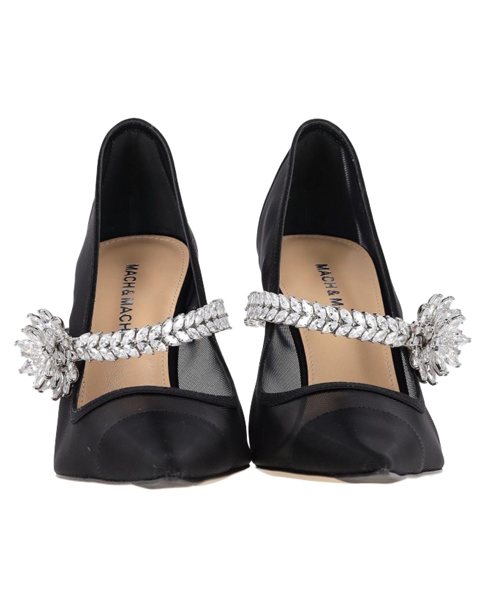 • Product: Mach & Mach Lotus Flower Heels in Black Mesh