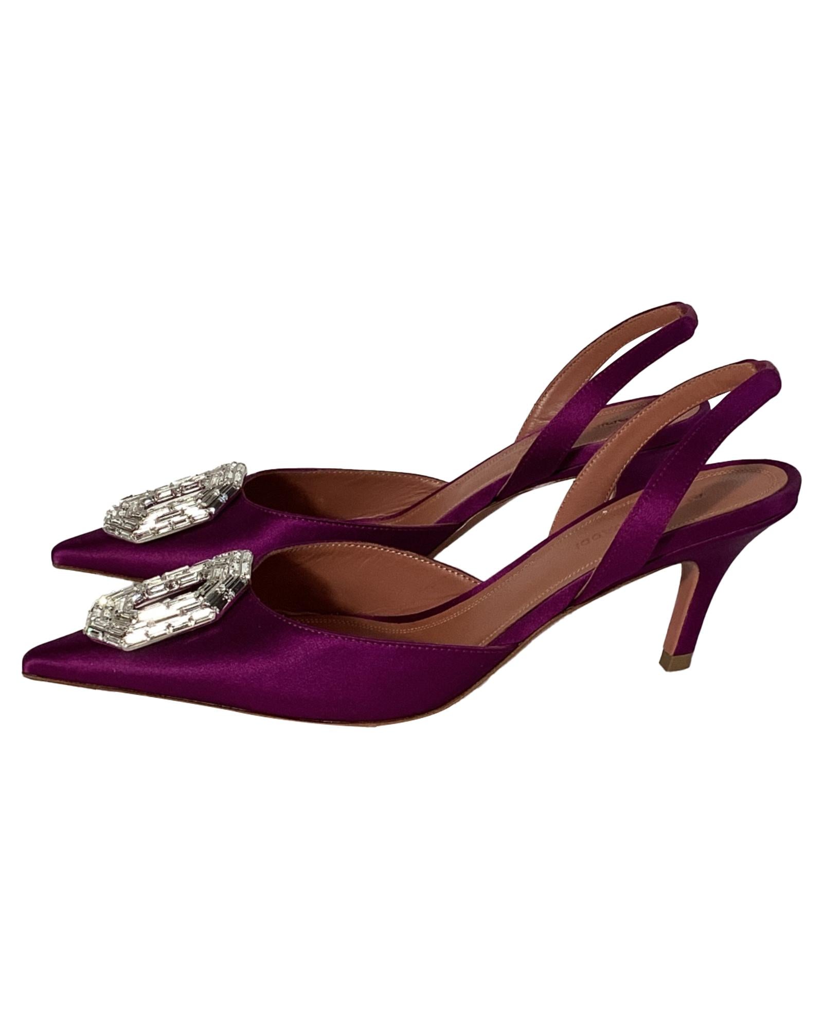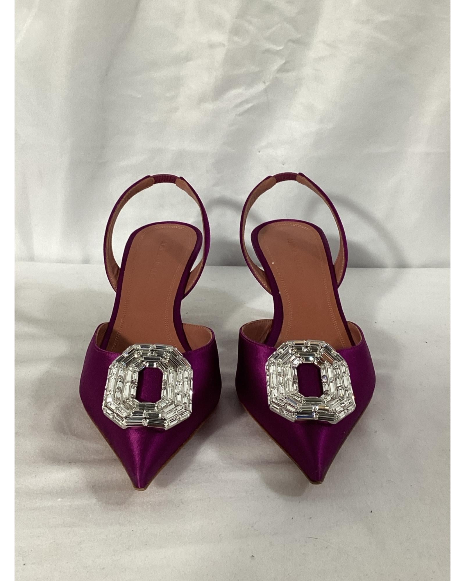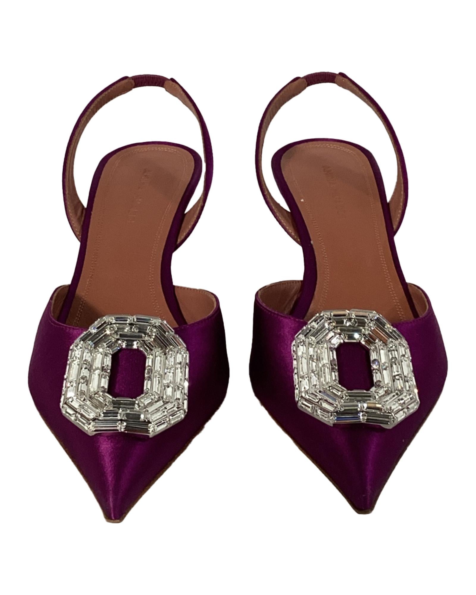 - Amina Muaddi Camelia Slingback Pumps in Purple Satin